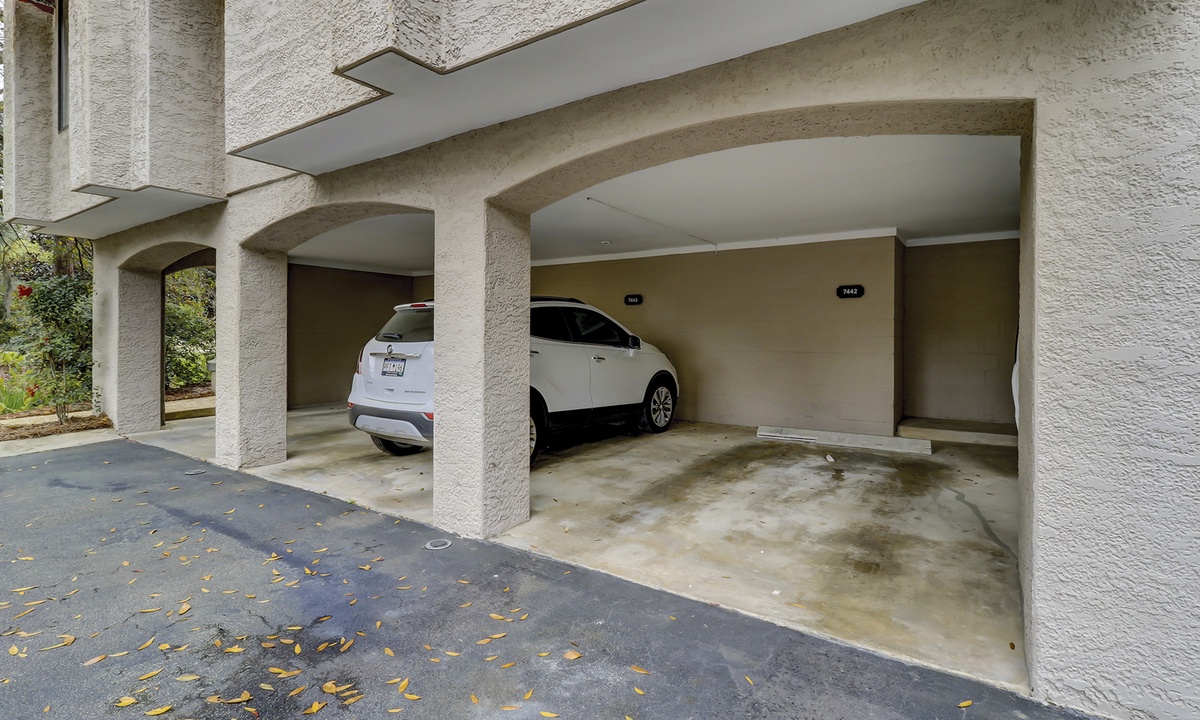 Palmetto Dunes is a secured community, please specify the number of security gate passes that are needed at the time of booking your reservation. Passes are charged per car per week. Parking is limited to two vehicles. There is one assigned covered parking spot. Additional parking can be found throughout the complex.