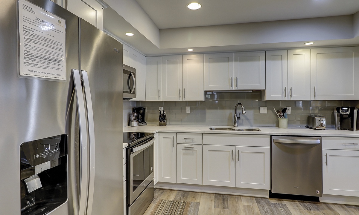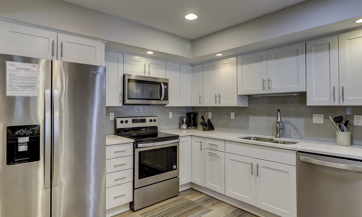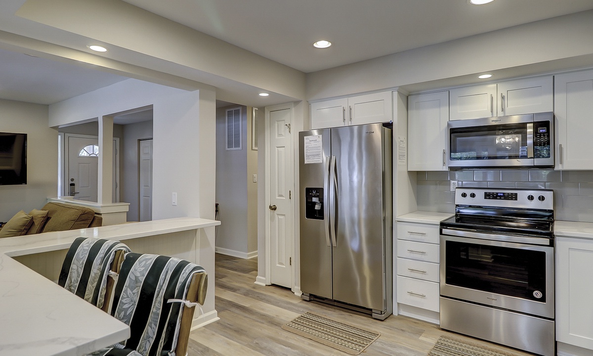 - Well-equipped kitchen with new quartz countertops, soft close cabinets, and stainless-steel appliances.
