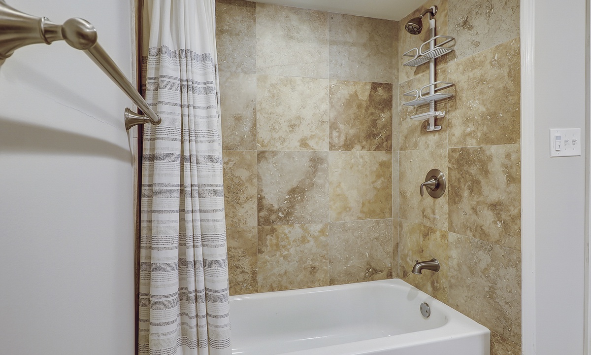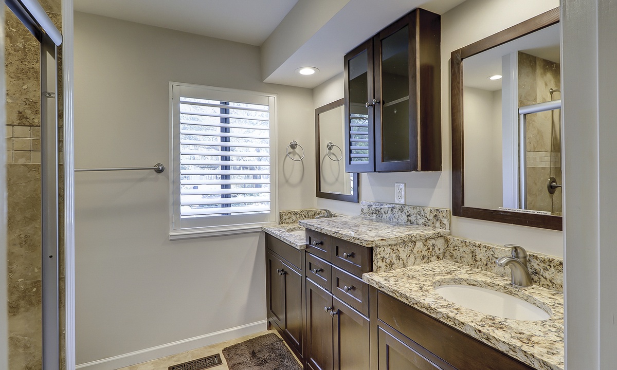The main bedroom features a new, high end, Tempurpedic king size bed, as well as an additional twin bed and a 36” flat screen TV and a DVD player. Adjoined to the main bedroom is a spacious bathroom featuring a double vanity with granite countertops, plenty of drawers and cabinet space to store all your beauty products. Adjacent to the vanity you will find an expansive walk-in shower with a handheld, adjustable, shower head.