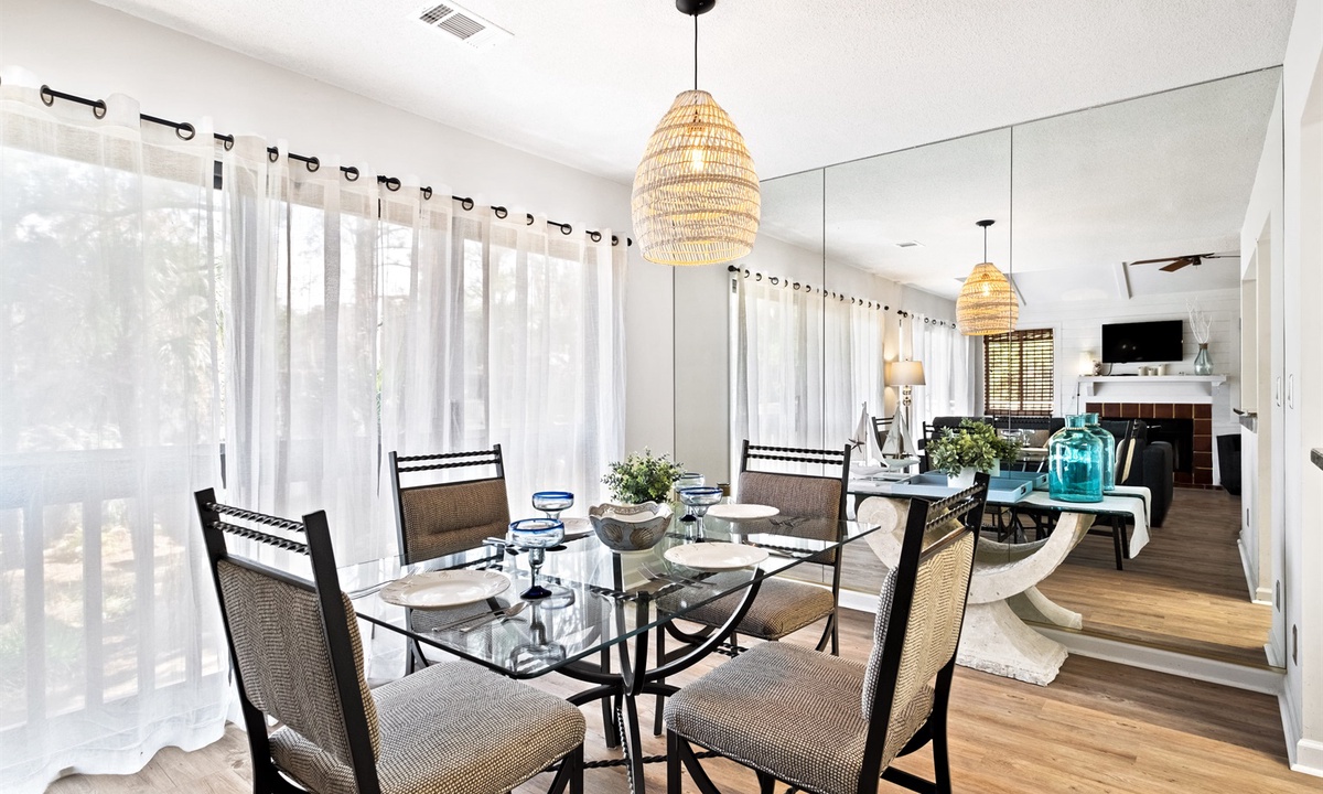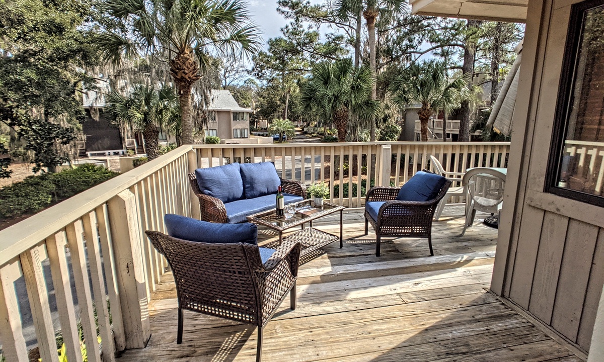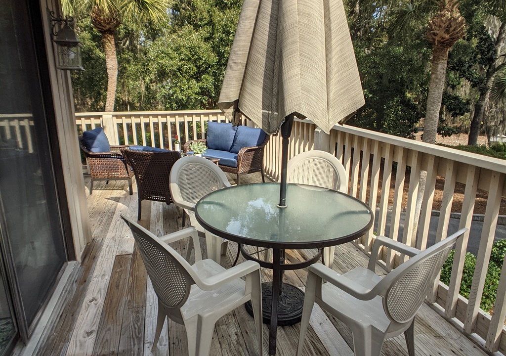 • A “wall of glass” to let the outdoors/sunshine in -- with sliding doors that open to a large wrap-around outdoor deck area with brand new decking. The outdoor area includes a dining table with umbrella and chairs and a 4 person conversation set for lounging.