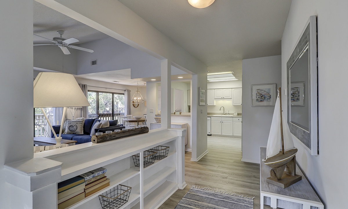 A 5-minute walk from the beach will bring you to this cheerful 2 bedroom, 2 bathroom Hilton Head vacation villa located on the second floor of the Beachwalk complex in Shipyard, Hilton Head Island.