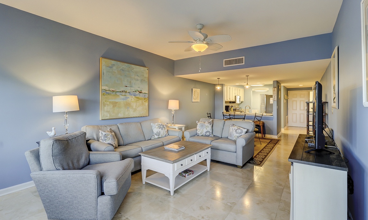 458 Captains Walk is a beautifully updated and decorated 2 bedroom, 2 bathroom first floor condo located in Captains Walk Hilton Head, with partial ocean views!