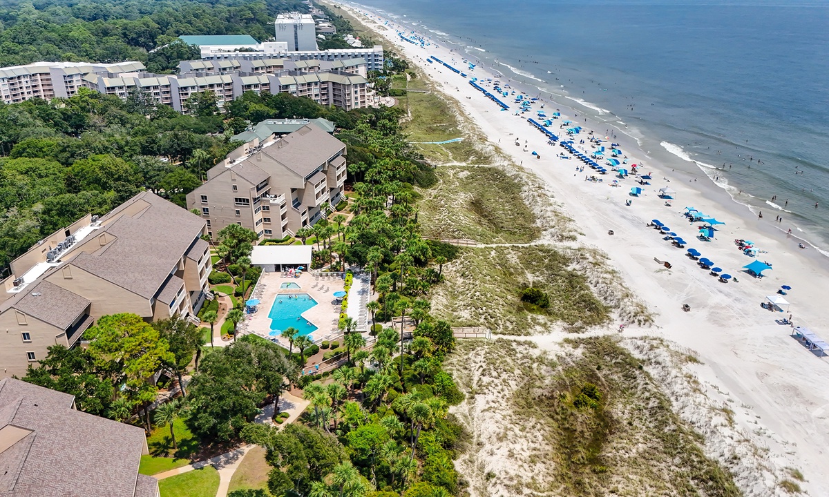 Located mid-island on 2,000 acres of lush island landscapes, Palmetto Dunes boasts one of the East Coast's premiere beaches, championship golf and tennis, and miles of bike and walking trails in a tranquil setting. Discover a plethora of world-class shops and restaurants at Shelter Cove, colorful yachts anchored in the marina and a beachfront bar and restaurant at Dunes House, all easily accessed by the free Dunes Buggy shuttle service in the summer season.