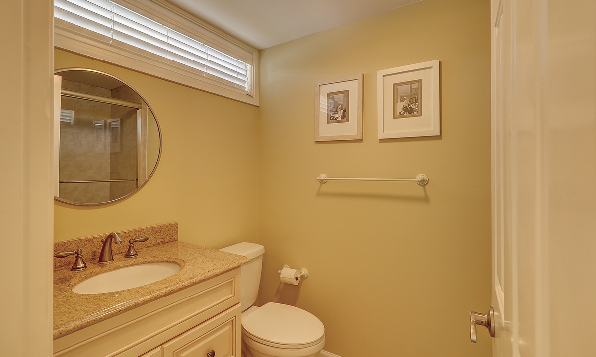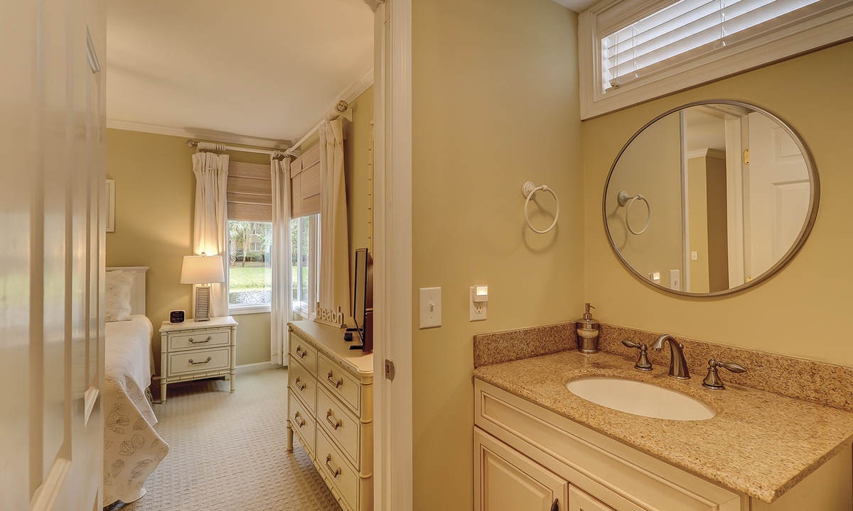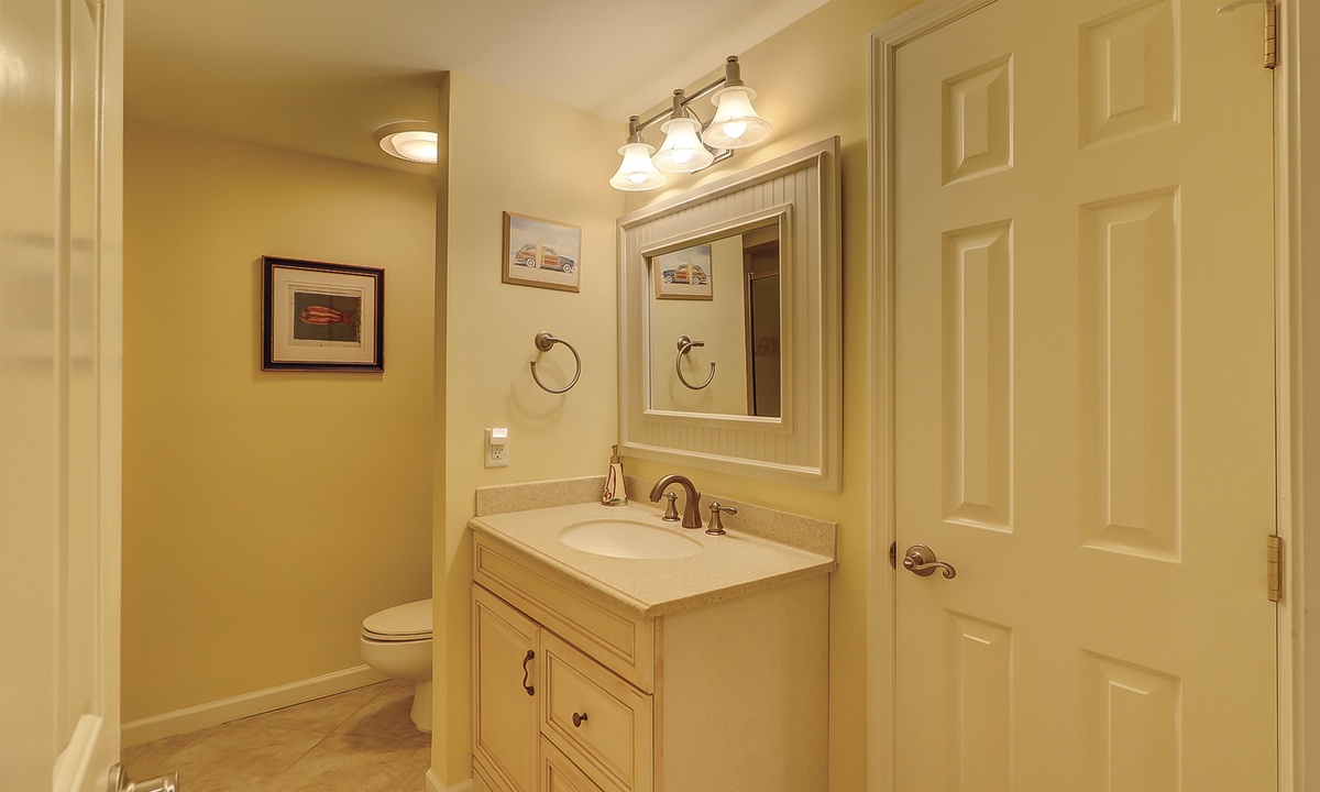 The queen guest bedroom also has its own bathroom with a tiled tub/shower combination. The full guest room has a private bathroom with a walk-in shower.