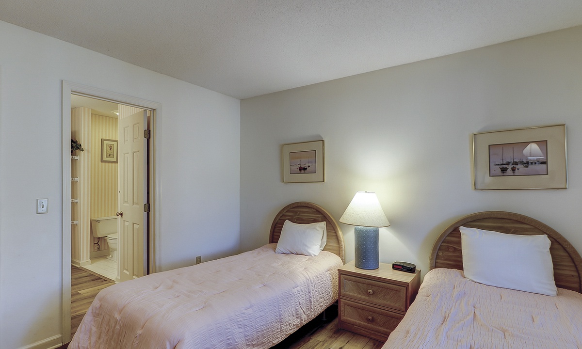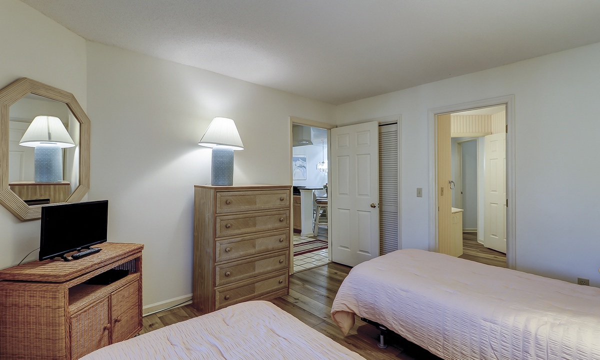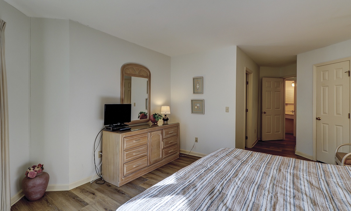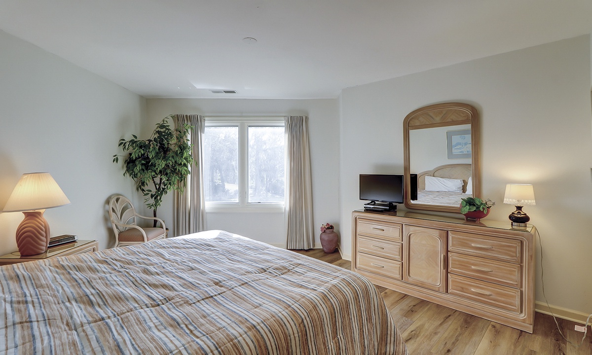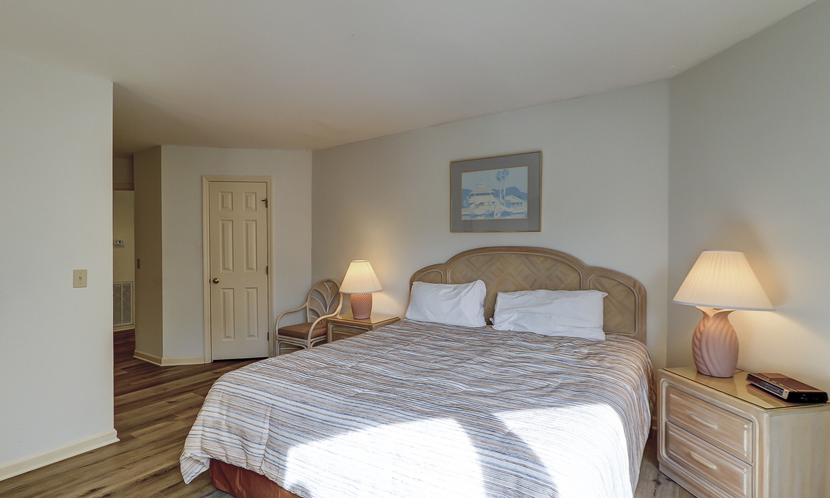 Colonnade Club 168 comfortably sleeps 6 guests in 2 bedrooms. Both bedrooms have brand new mattresses and boxsprings as of June 2025! The main bedroom has a king-size bed, a TV, a spacious walk-in closet and a private en-suite bathroom. The second bedroom has two twin beds. There is a washer/dryer for your convenience.