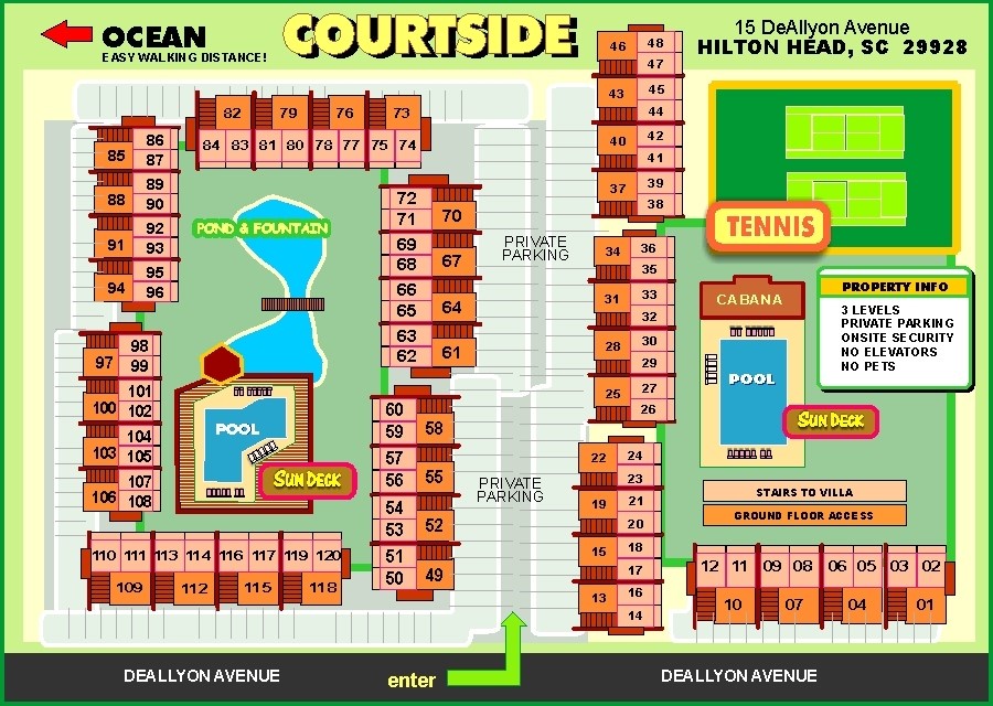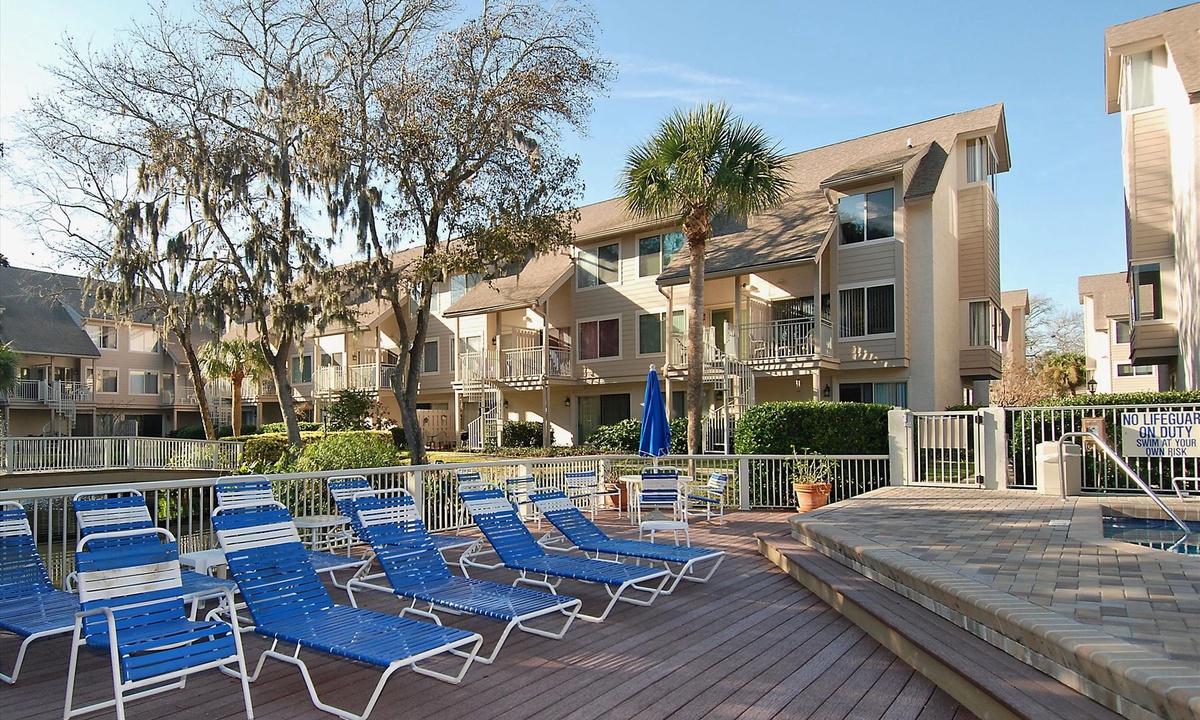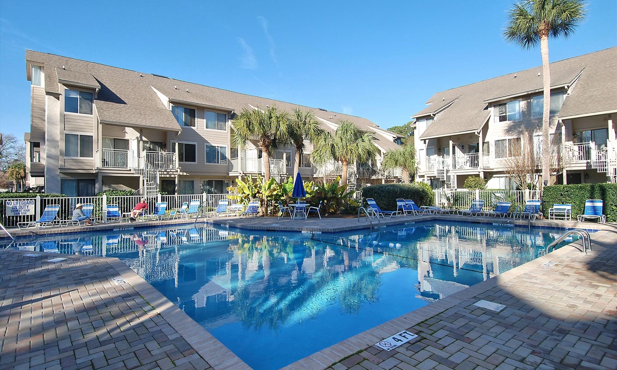 Courtside Villas are an easy 5-minute walk to the beach, 3 blocks to Coligny Plaza, and 2 blocks to the new Low Country Celebration Park. The Van Der Meer Tennis Center is right next door. The community has 2 beautiful pools, guests get tennis privileges up to one hour per day at the tennis center, and the HHI trolley stop is right out front. 2 car pass maximum.
