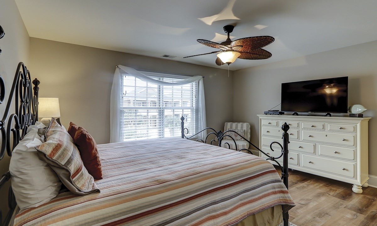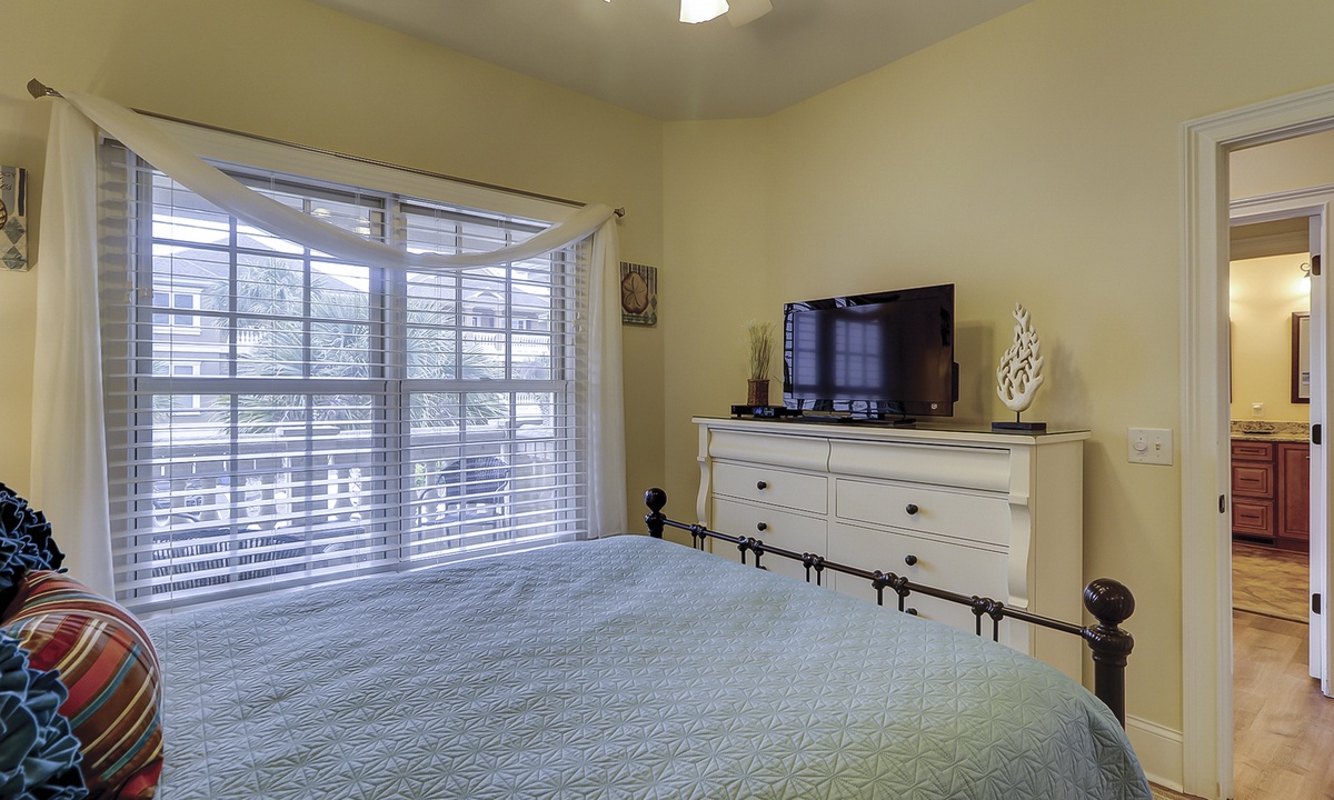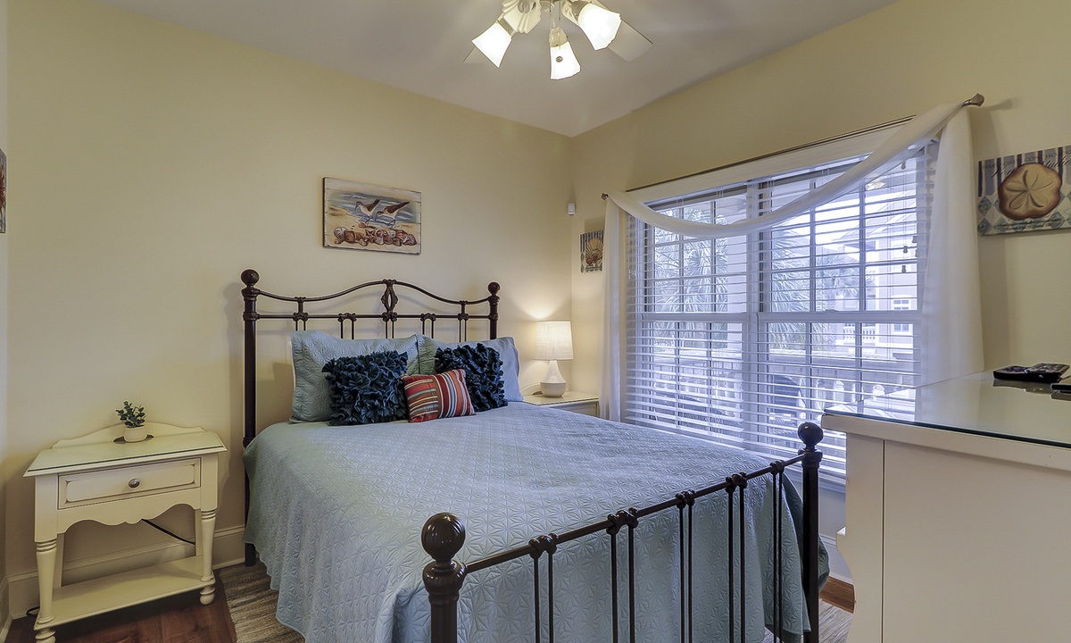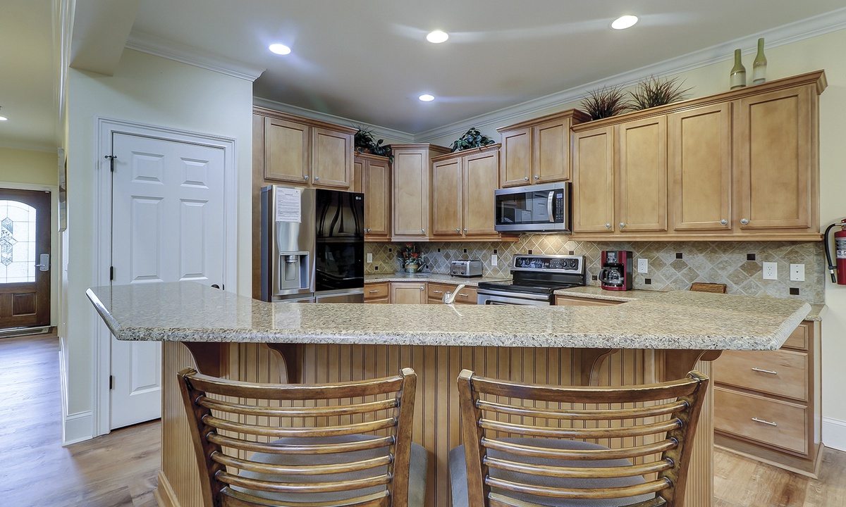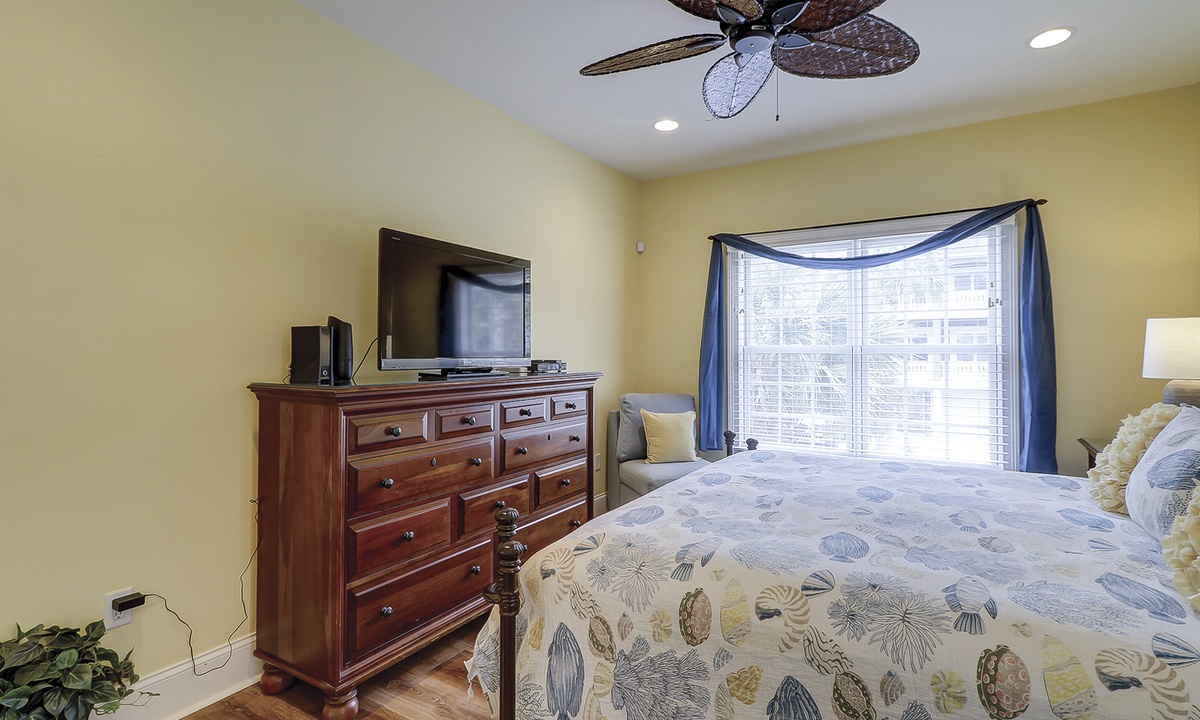 Entering through the front door you will find a hallway leading you to the calming and comfortable living space. To the right, you will find a large sectional sofa and two comfy armchairs. The living room is equipped with a flat-screen TV and DVD player. Ready to host the next family movie night after a day of exploring Hilton Head Island.
