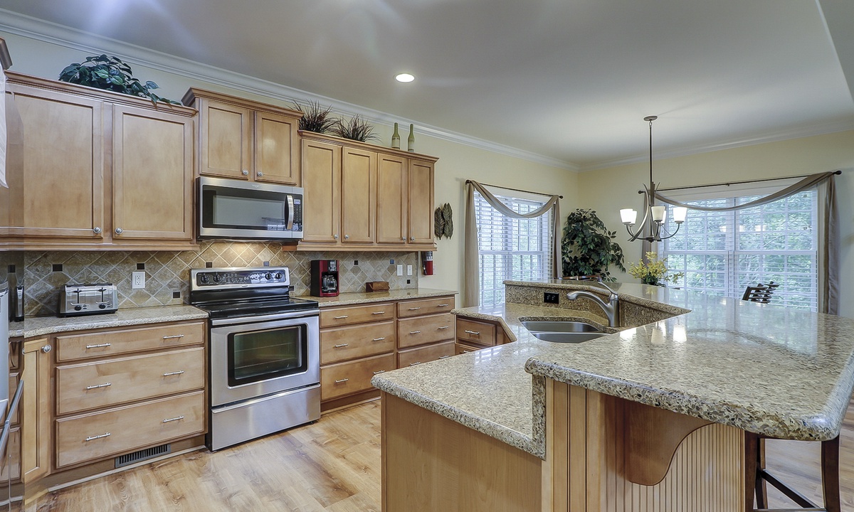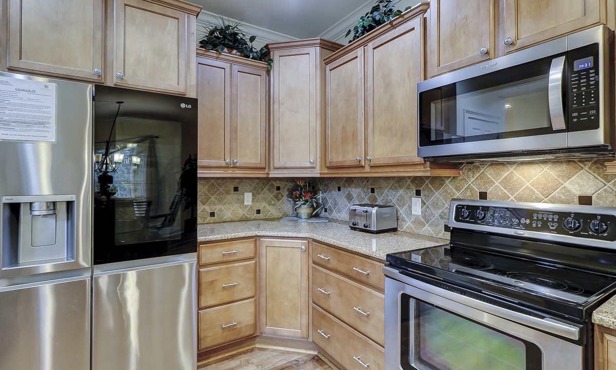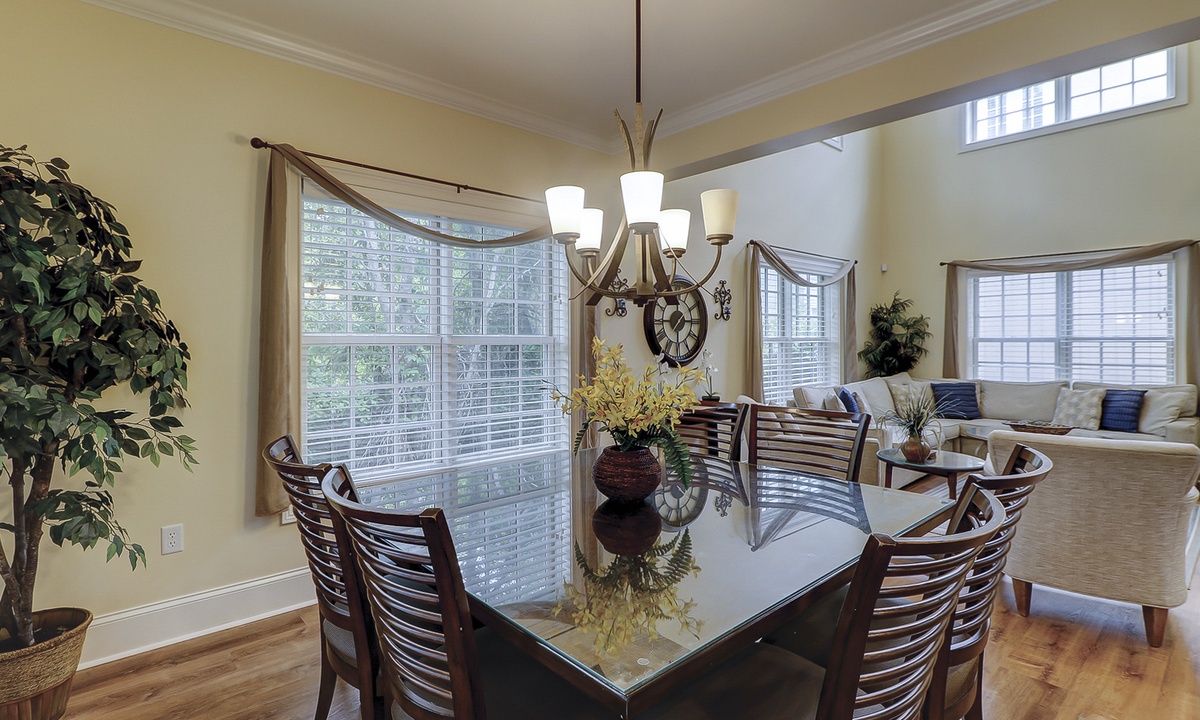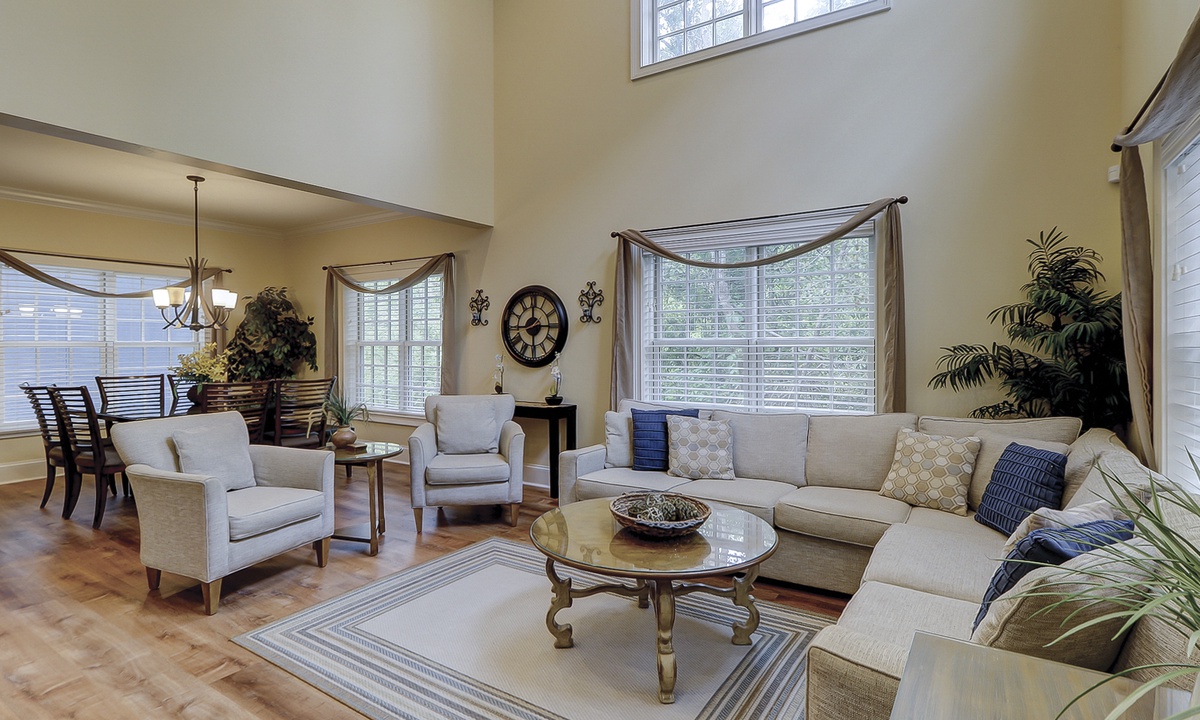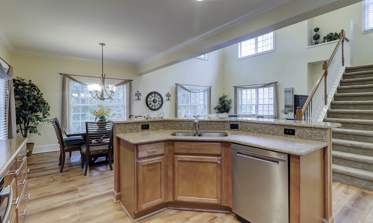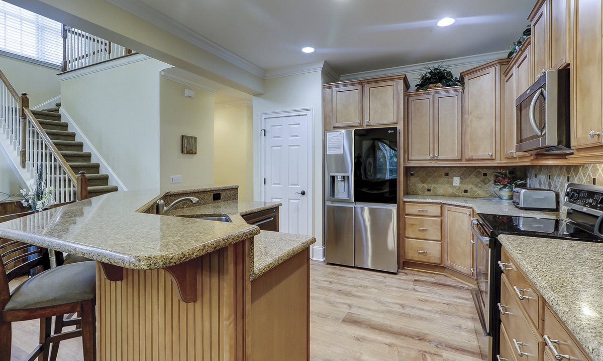 Entering through the front door you will find a hallway leading you to the calming and comfortable living space. To the right, you will find a large sectional sofa and two comfy armchairs. The living room is equipped with a flat-screen TV and DVD player. Ready to host the next family movie night after a day of exploring Hilton Head Island.