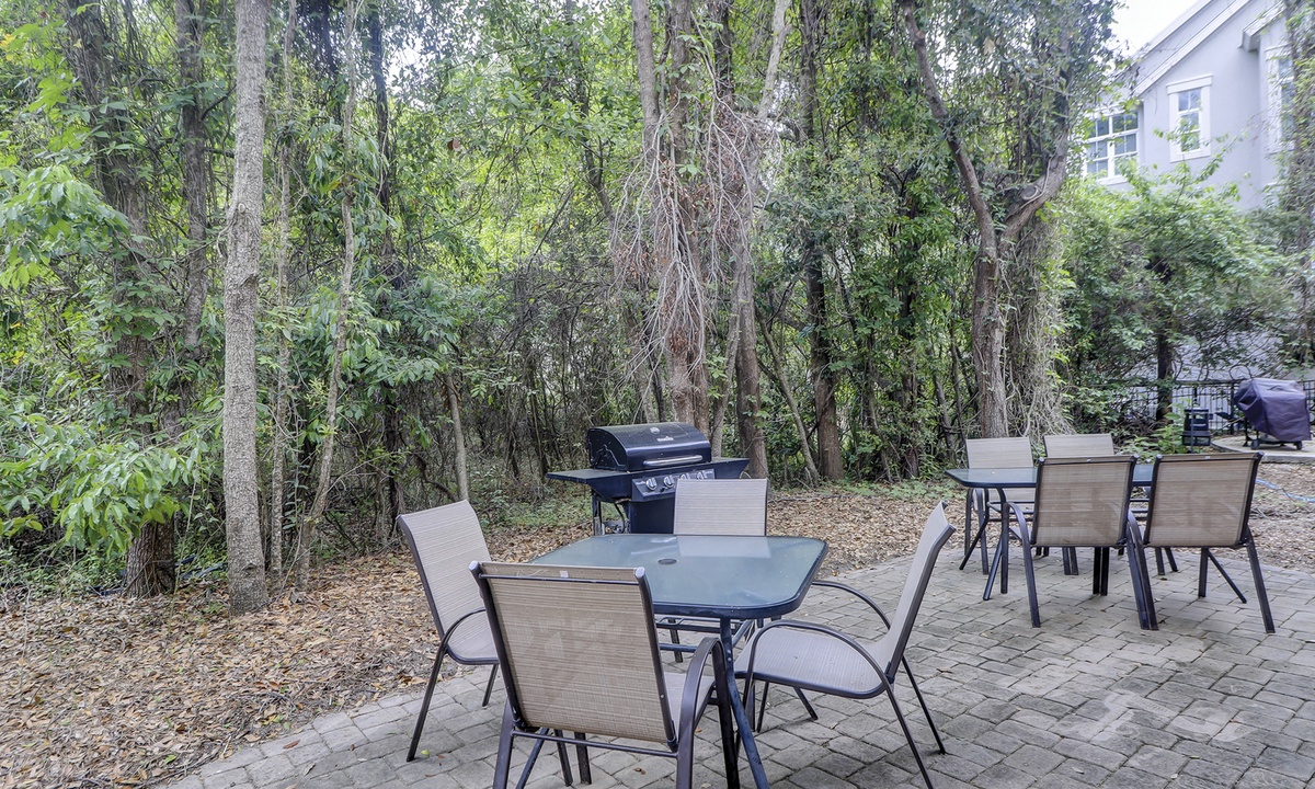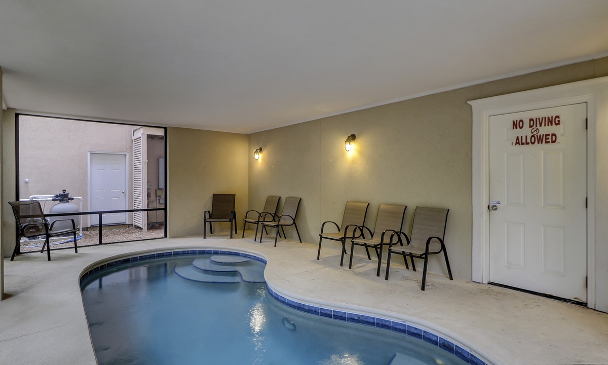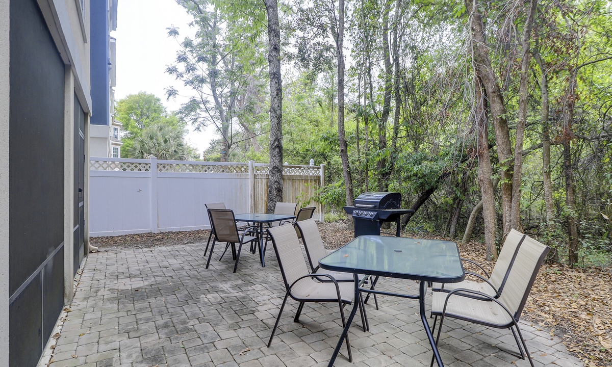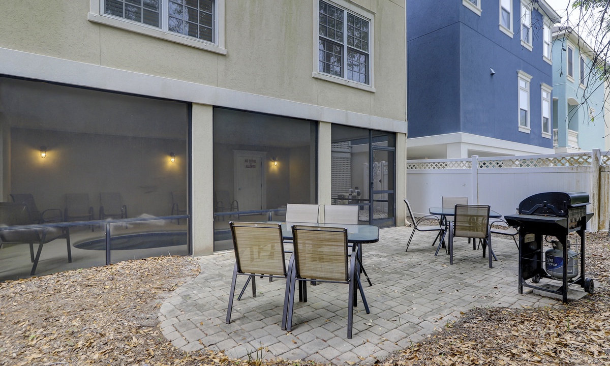 Crabline 32 offers stylish indoor and outdoor living on Hilton Head Island. The delightful, private backyard has a screened-in indoor pool, a BBQ grill and table with seating for 6 for island-style alfresco dining.