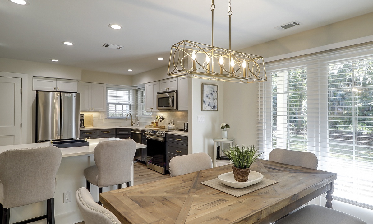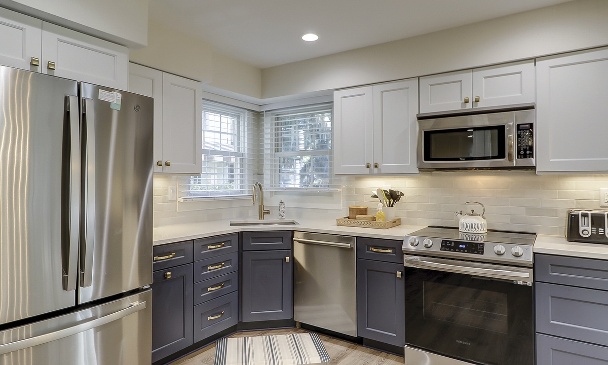 The large kitchen has been meticulously outfitted with all you'll need to cook for your guests, as well as quartz counters, stainless appliances and custom cabinets.