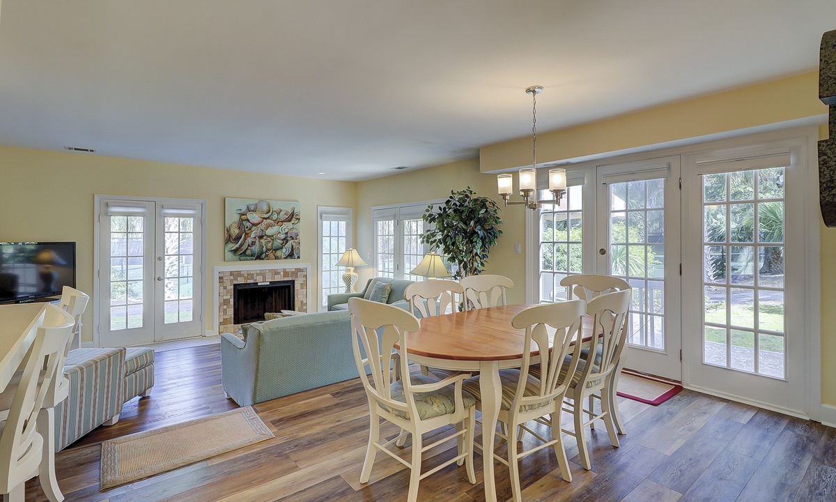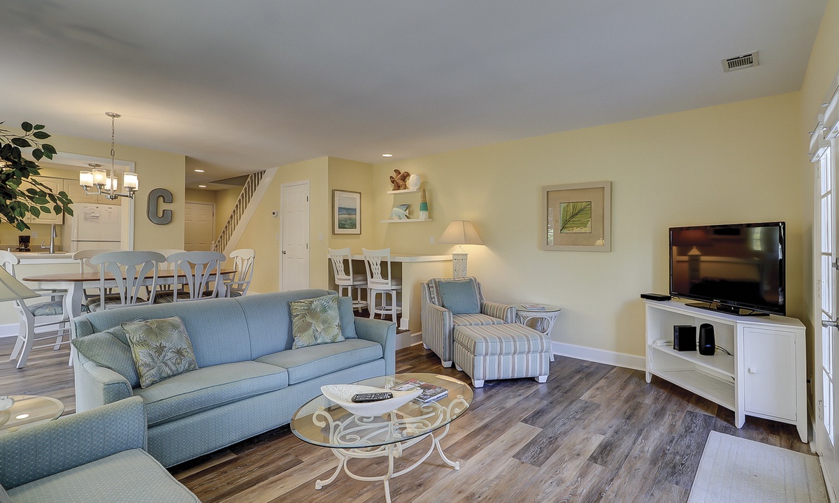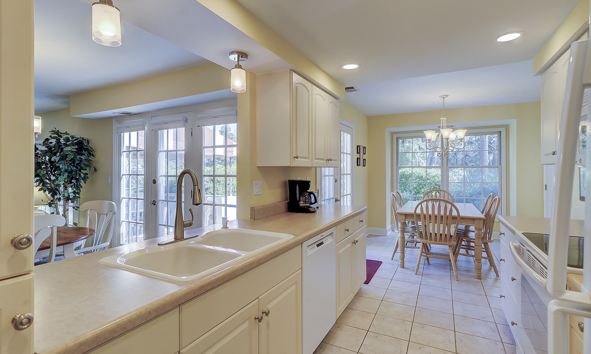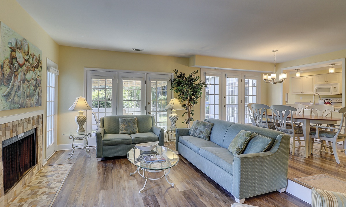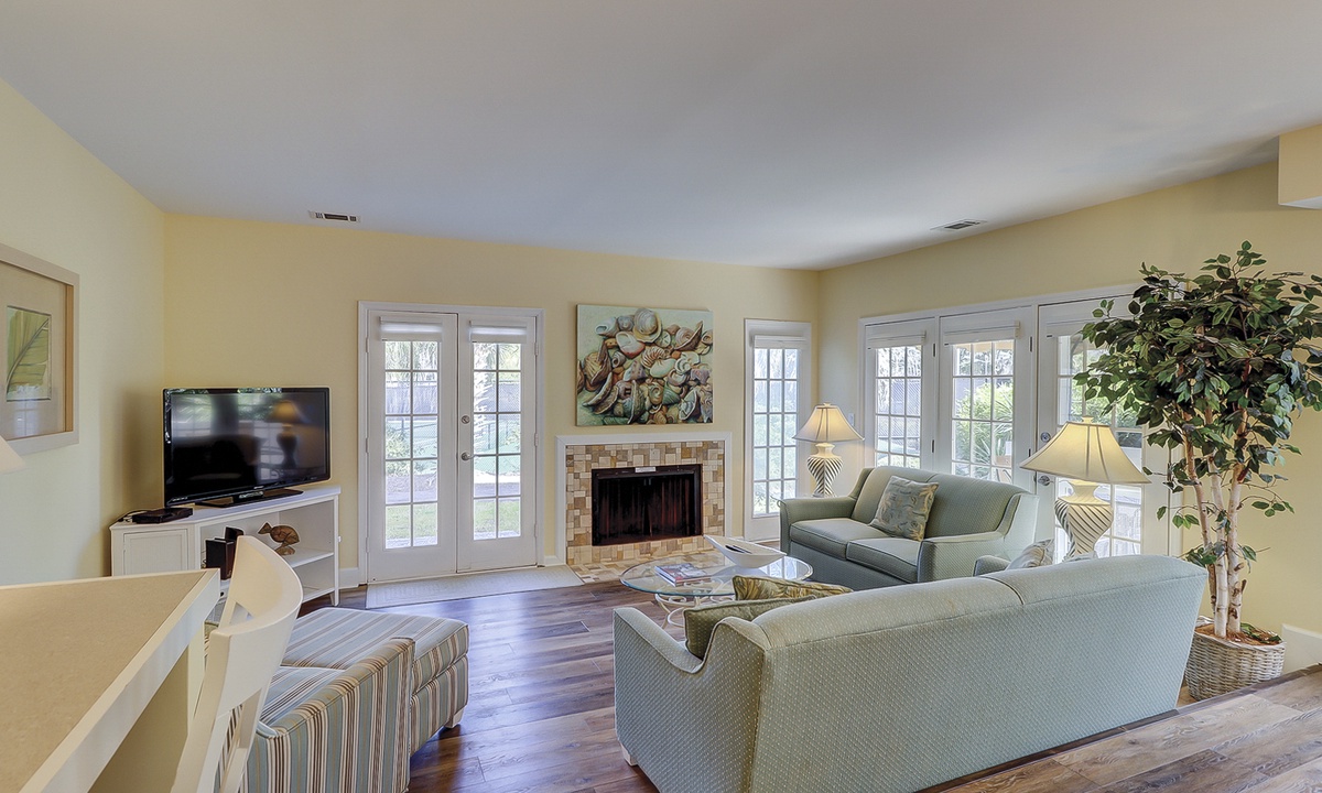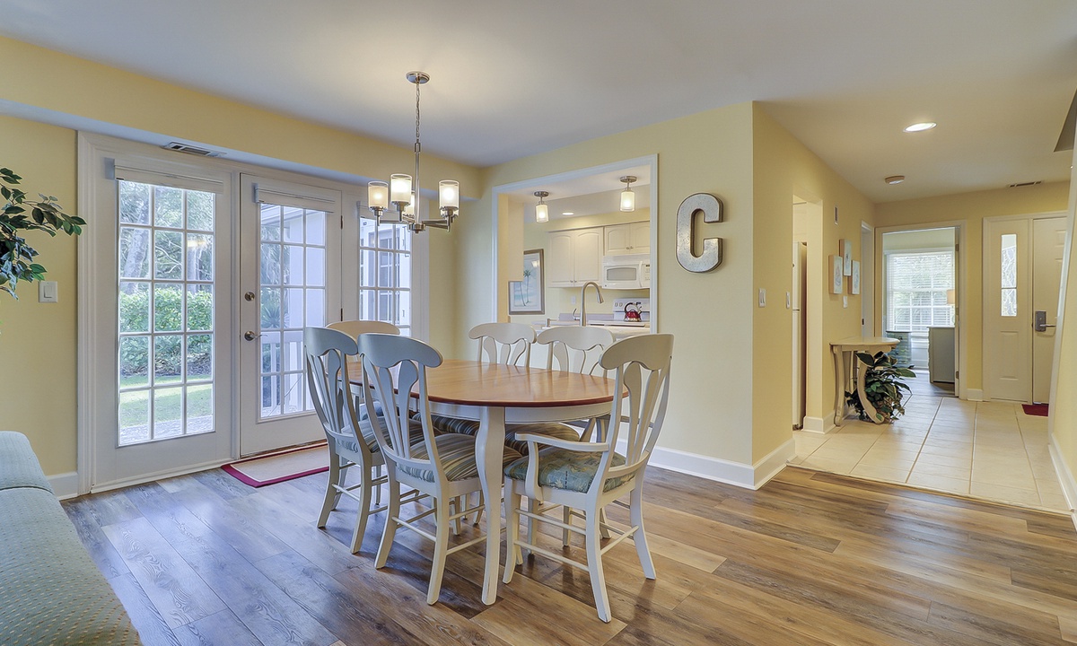 Tennis buffs will enjoy the view from this newly renovated 3 bedroom, 3 bathroom Shipyard villa at Evian, Hilton Head Island. This spacious Hilton Head vacation villa overlooks the tennis courts in a prime location with resort amenities and only a short walk to the tranquil Atlantic Ocean.