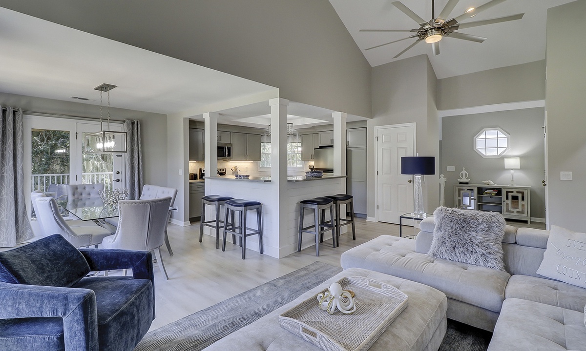 Evian 233 is a Hilton Head rental located in the Evian community of Shipyard on Hilton Head Island. This stunningly remodeled 2 bedroom, 2 bathroom 2nd floor Shipyard villa is brand-new from top to bottom with designer touches and luxury amenities.