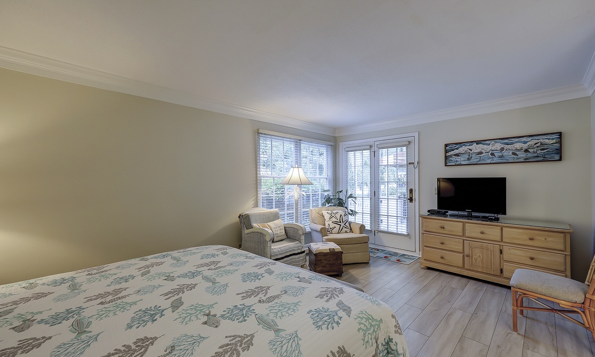 Looking for the perfect getaway on Hilton Head Island? This beautifully remodeled 2-bedroom, 2-bathroom ground-floor villa in Evian at Shipyard offers the perfect combination of comfort, convenience, and coastal charm. With an abundance of natural light and a fresh, beach-inspired décor, this villa is designed to help you relax and unwind in style.