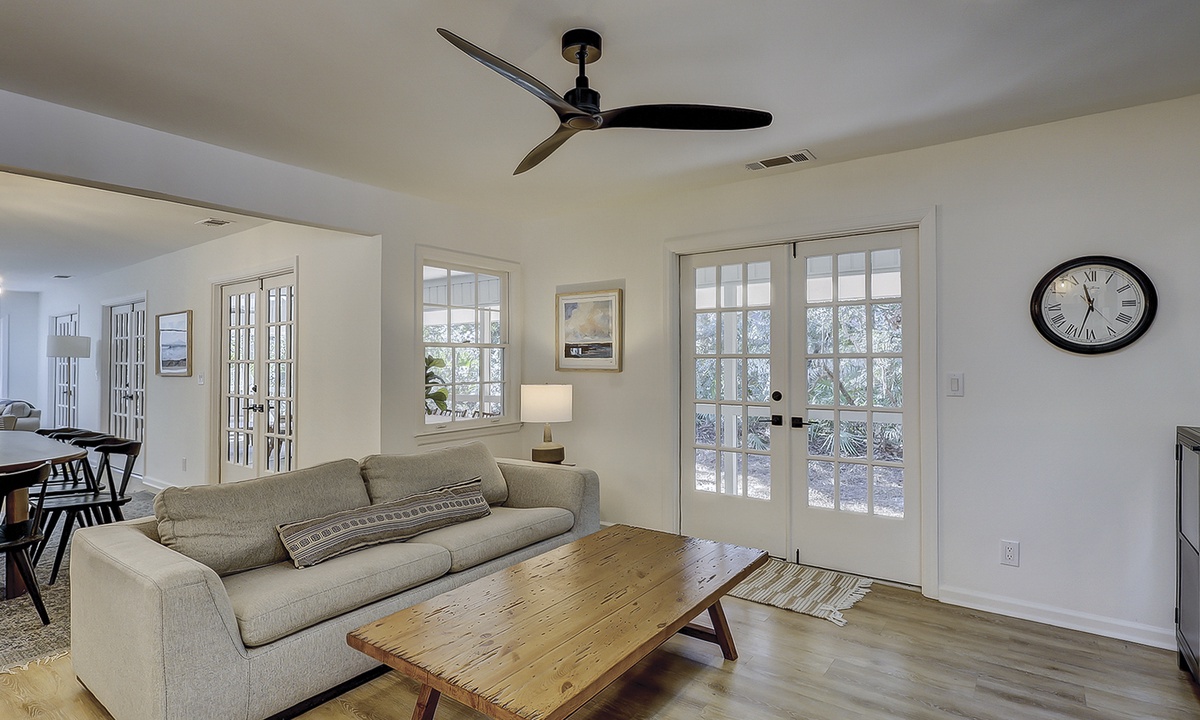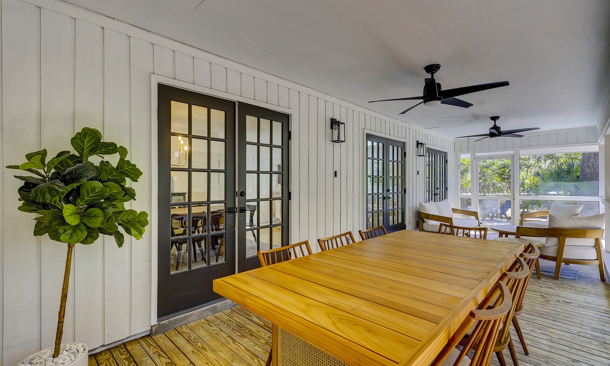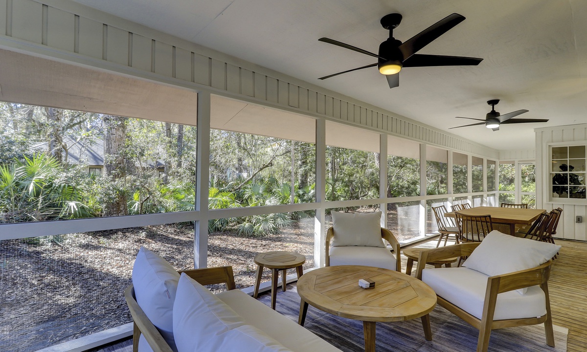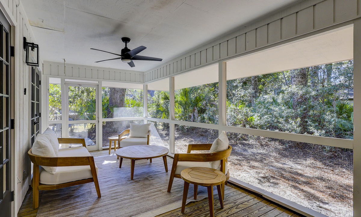 Get outside and enjoy the screened in porch which is a perfect space to relax after a long day at the beach or pool. The patio can be accessed by three different sets of French style doors off the main level. Take a load off and enjoy the sounds and views of the Lowcountry with ceiling fans to keep you cool. Finally, this is the perfect place to grill and dine al fresco at the gas grill and fire pit.