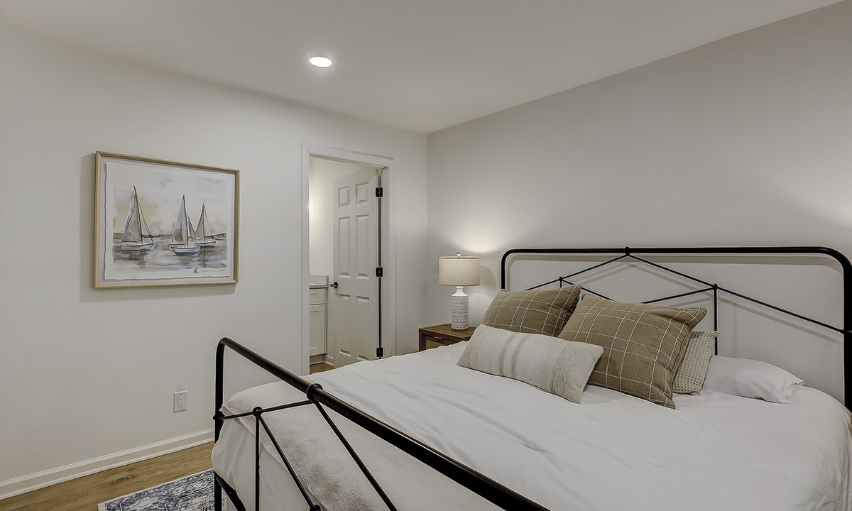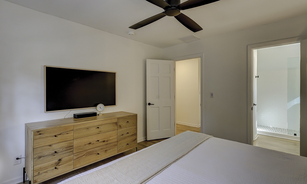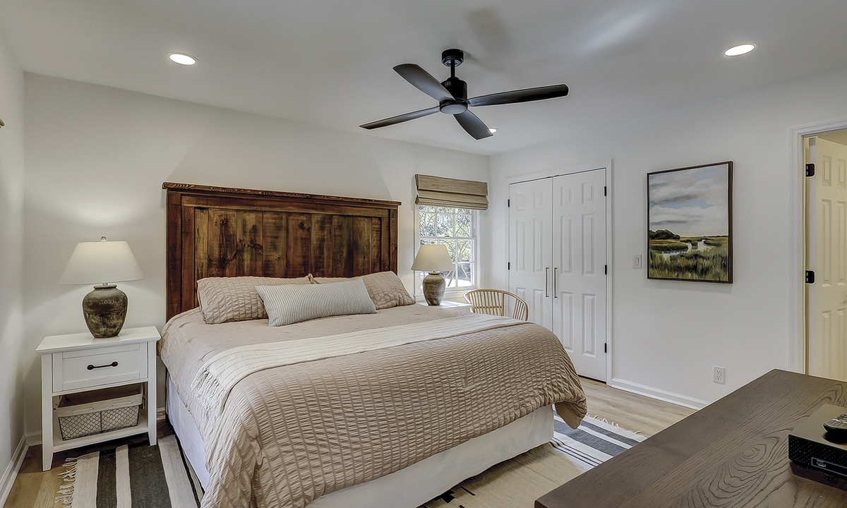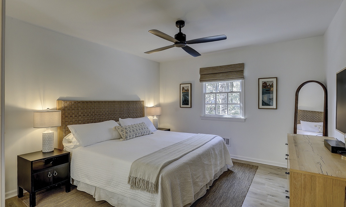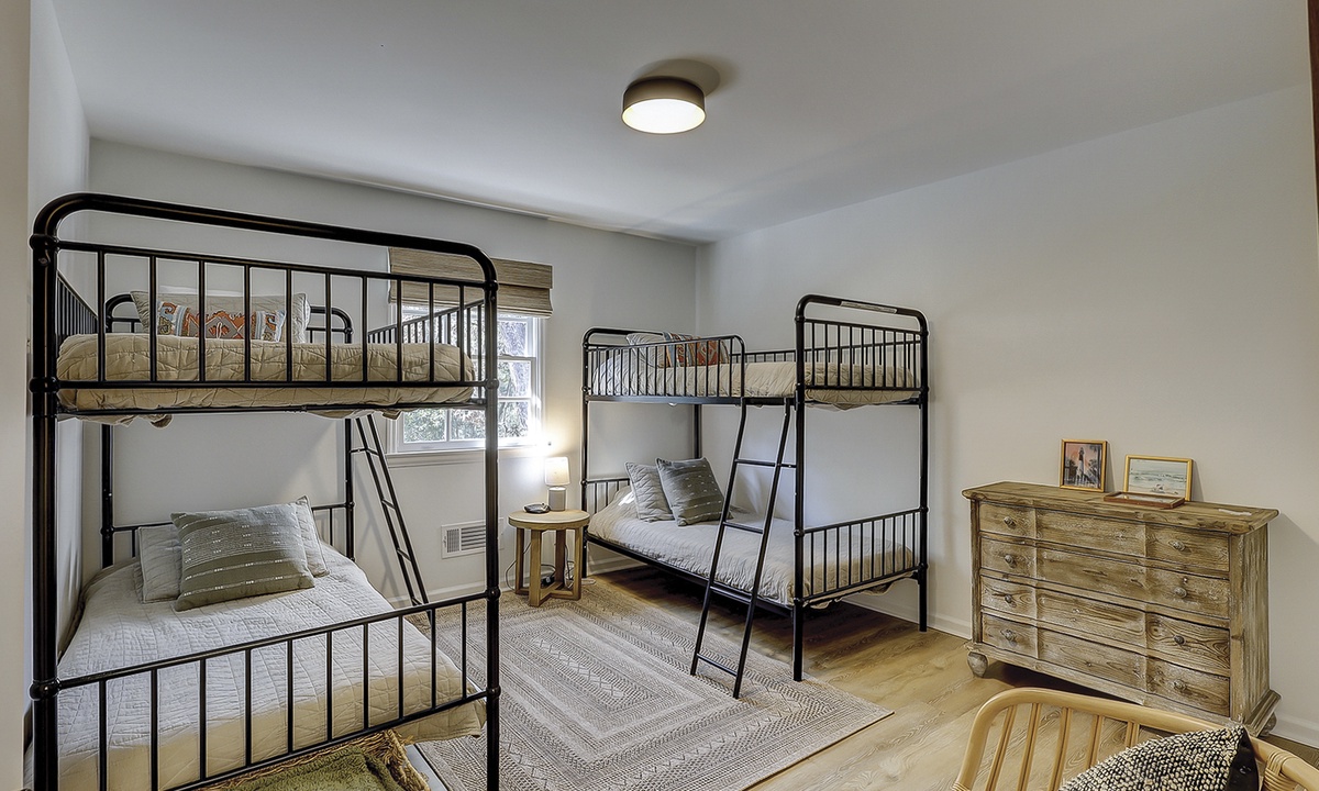 Ready to rest after a fun day on the beach? The main level features two King suites, both outfitted with new linens, Smart TVs, ceiling fans, and luxurious ensuite bathrooms. Head upstairs to the third King suite with an ensuite bathroom, ceiling fan, and Smart TV. Finally, the last bedroom is perfect for kids or adults with two sets of Twin XL over Twin XL bunks and shares a hallway bathroom.