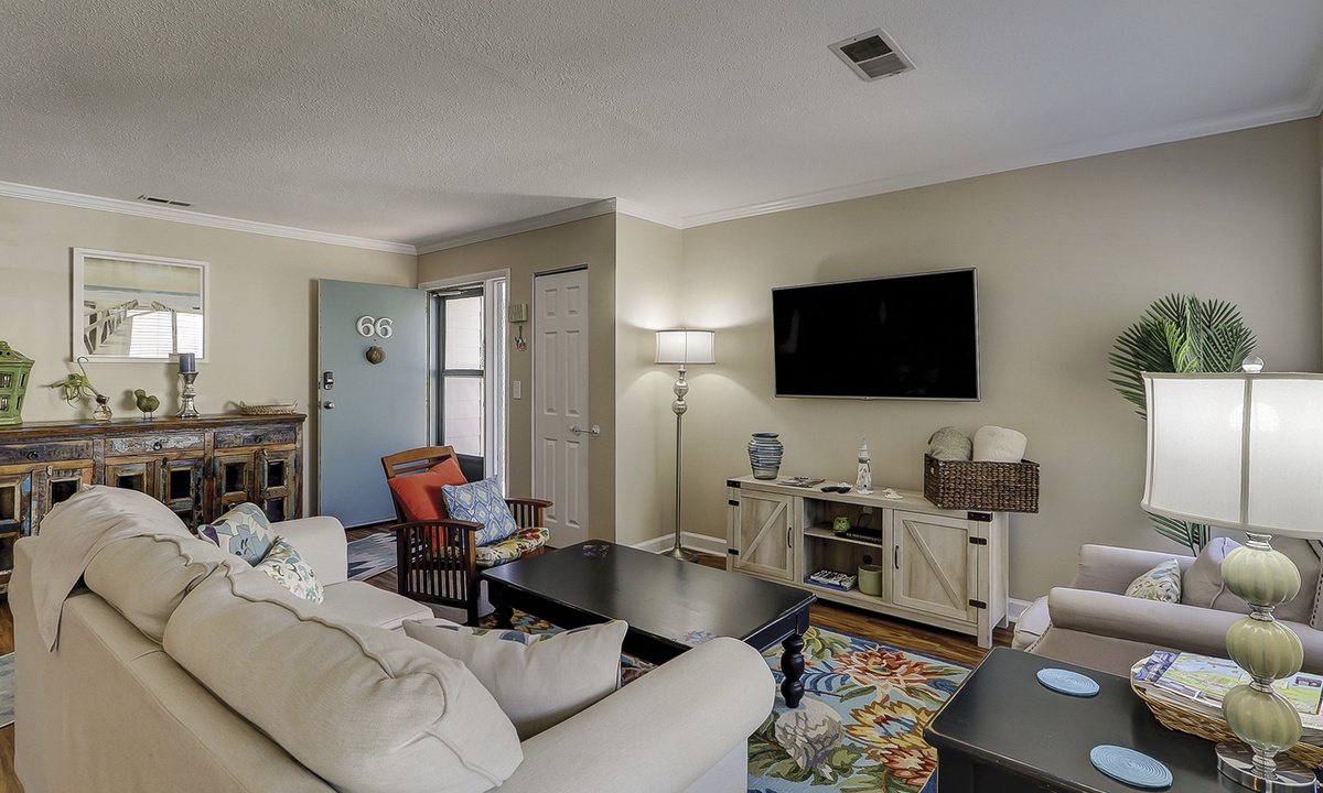 Forest Gardens 66 is a perfect two bedroom villa that's nestled in the South Forest Beach area of Hilton Head. Featuring two bedrooms with sleeping for four guests, along with one full size bathroom, this villa features a recent remodel, an open-concept floor plan, a private balcony with seating, and a desired location that's just steps from the oversized community pool!