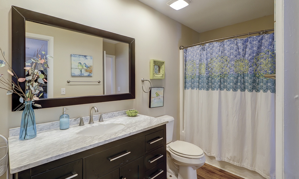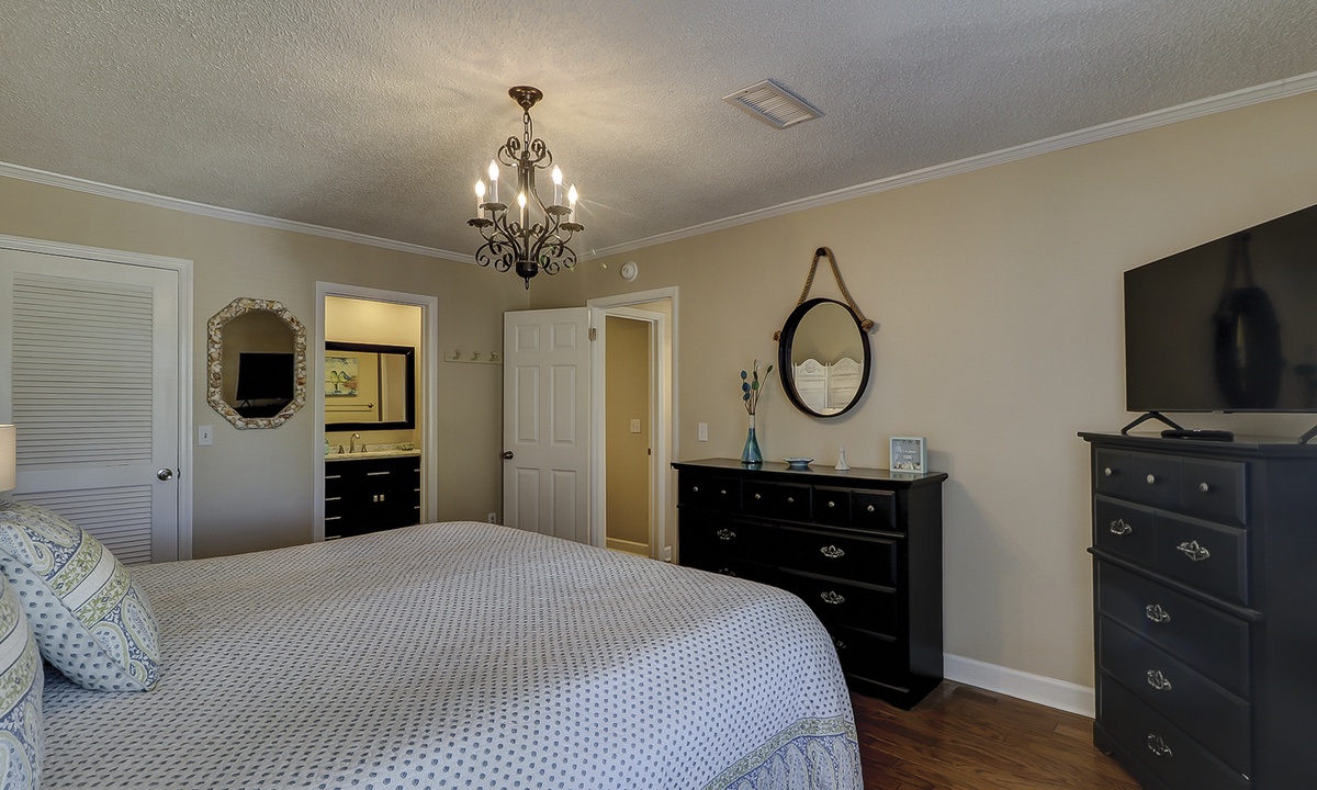 Ready to rest easy? Head to one of the two bedrooms in this one level villa including a King Primary and Queen bedroom that share a full size bathroom with a shower/tub combo. Both bedrooms feature Smart TVs with streaming & cable, closet space, and cozy bedding.