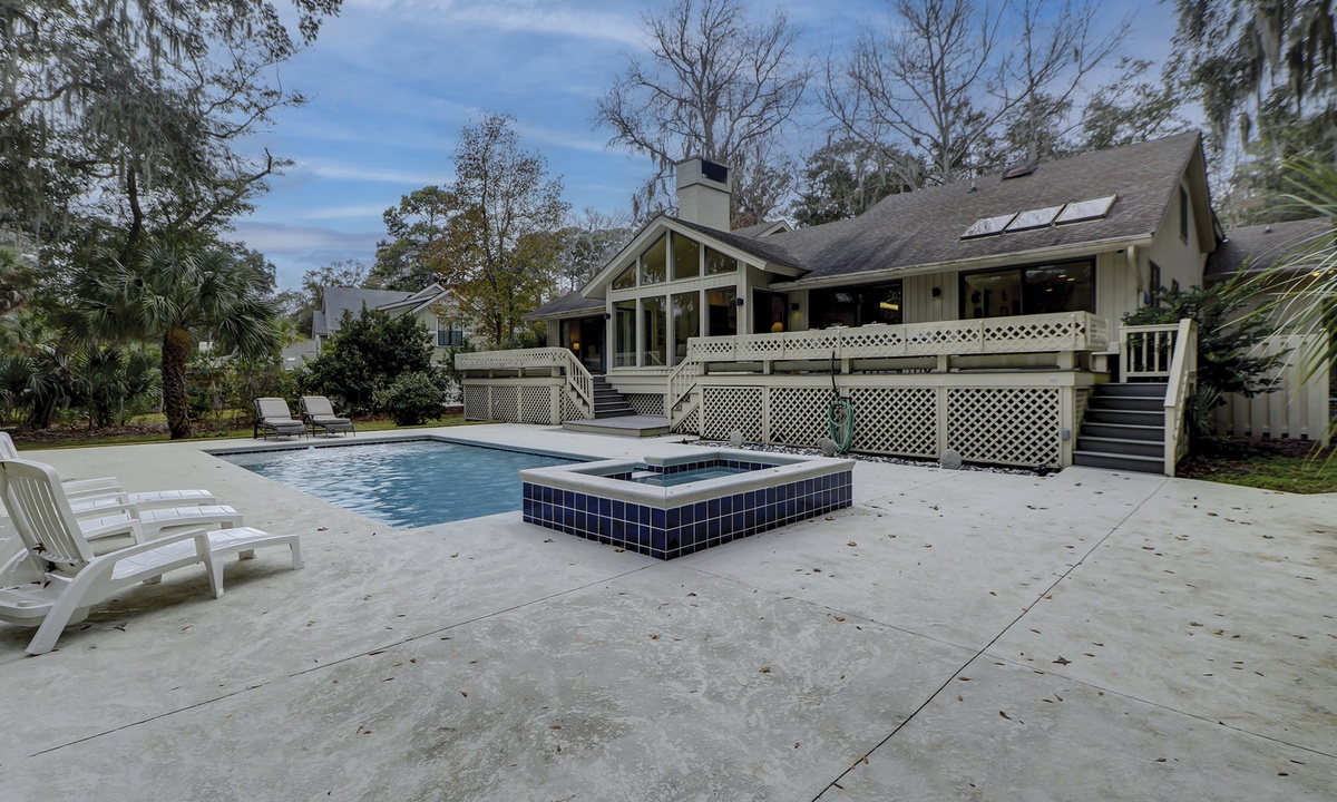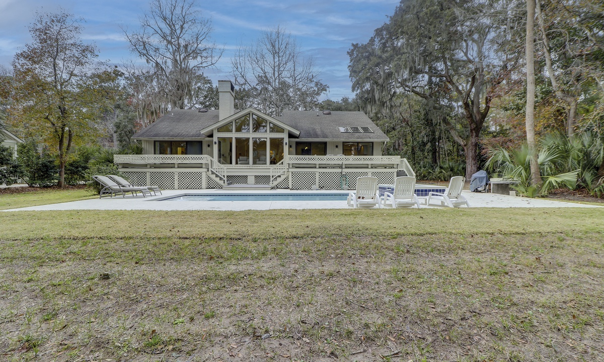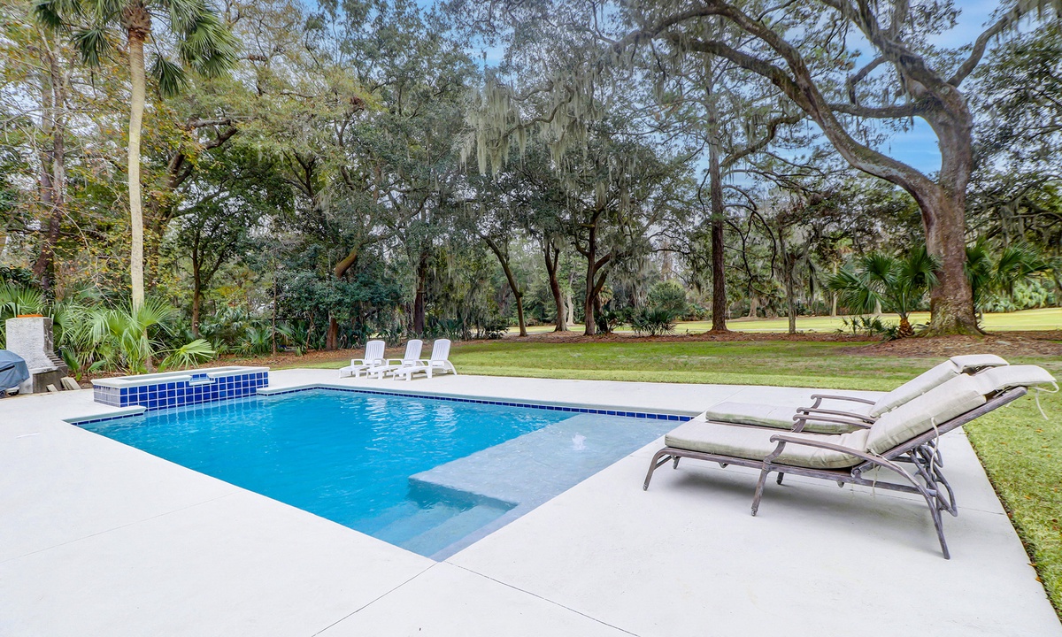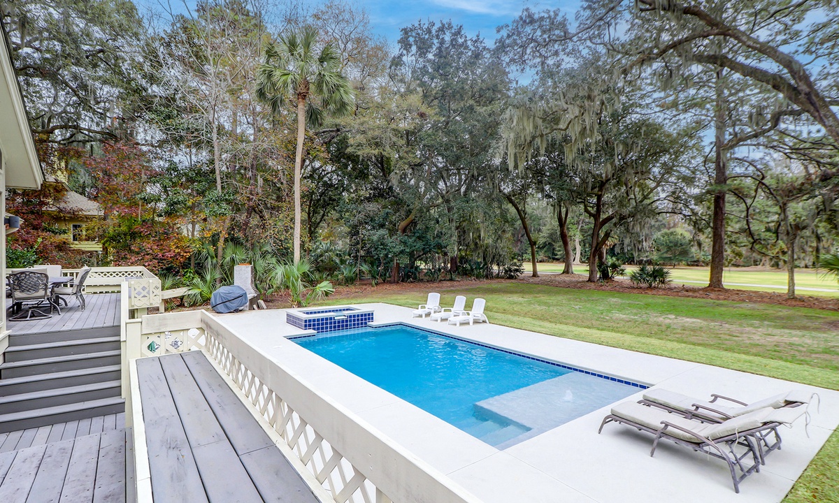 Step outside into the stunning backyard, where multiple seating areas, a propane grill, and a brand-new pool and deck await. Whether you’re relaxing in the shade or soaking up the sun, the outdoor space offers the perfect setting to unwind while enjoying panoramic views of the golf course and low-country landscape.
