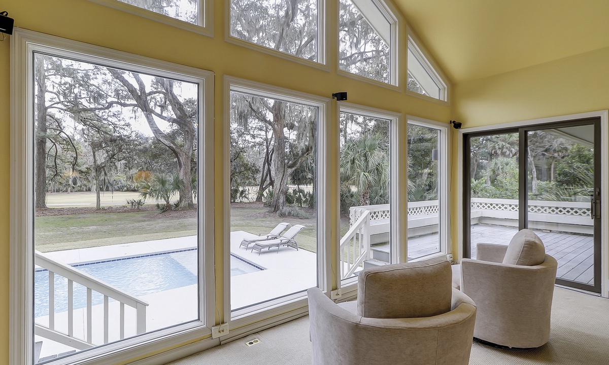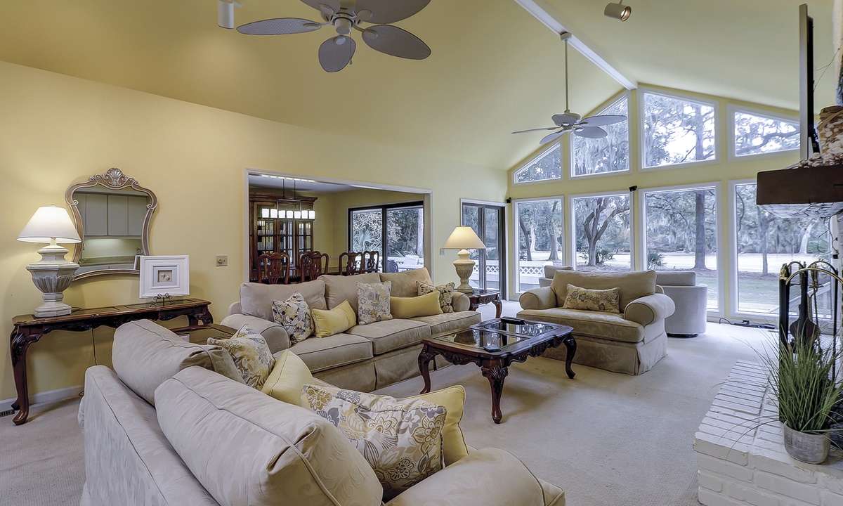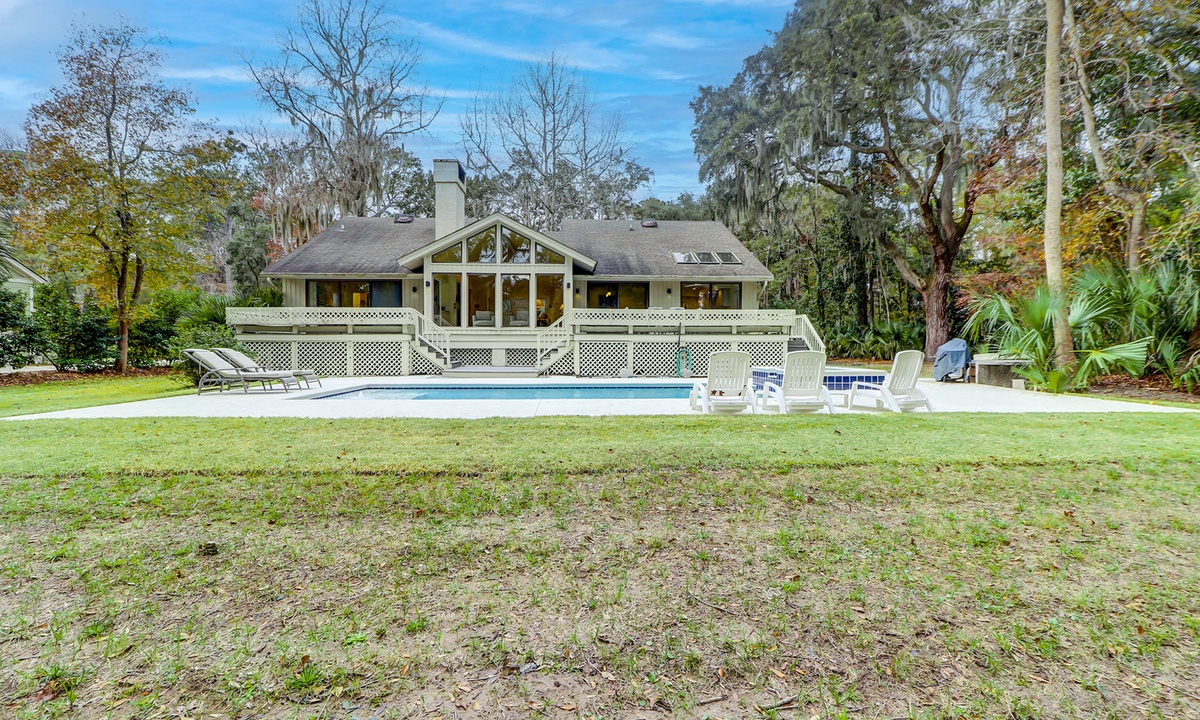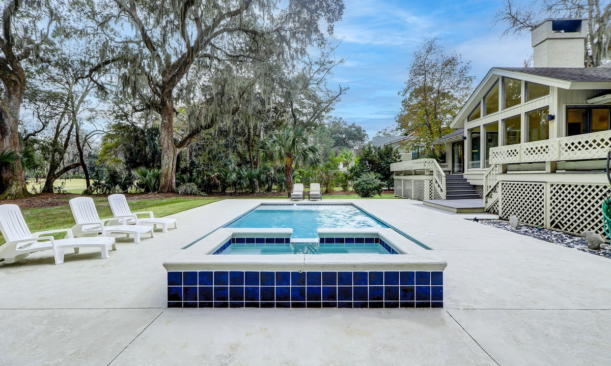 Step outside into the stunning backyard, where multiple seating areas, a propane grill, and a brand-new pool and deck await. Whether you’re relaxing in the shade or soaking up the sun, the outdoor space offers the perfect setting to unwind while enjoying panoramic views of the golf course and low-country landscape.