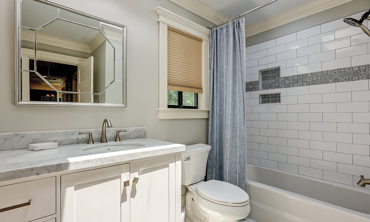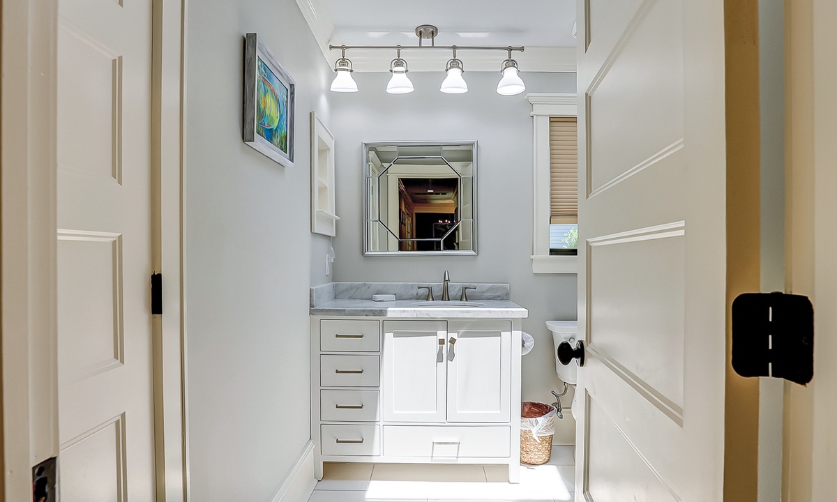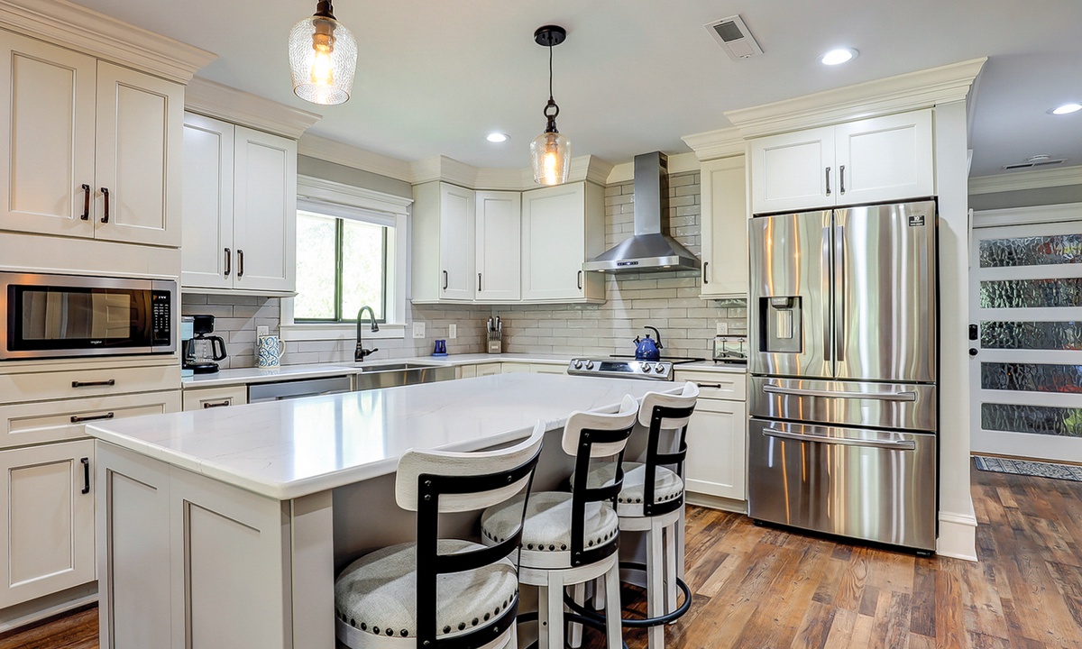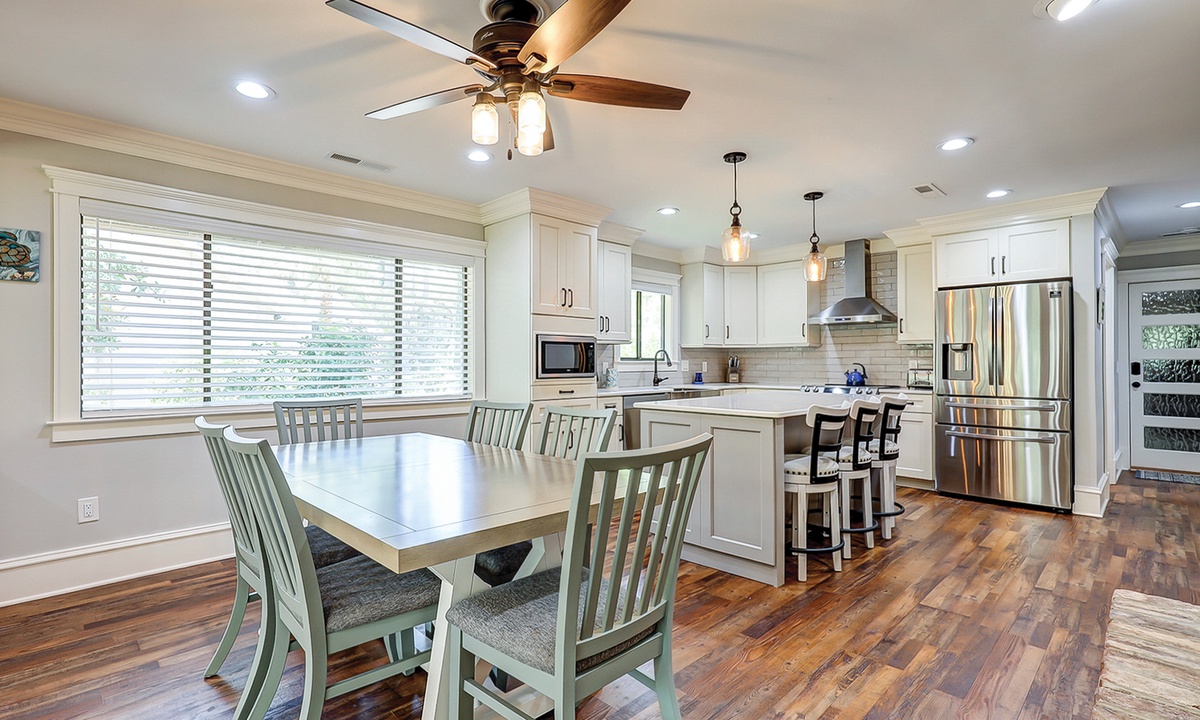 The kitchen offers stainless appliances, marble counters and is fully equipped with everything you'll need to prepare meals with ease. Guests have their choice of dining spaces, including a formal dining area off the living room which seats 6, a breakfast table that also seats 6 and 3 plush bar stools at the kitchen island.