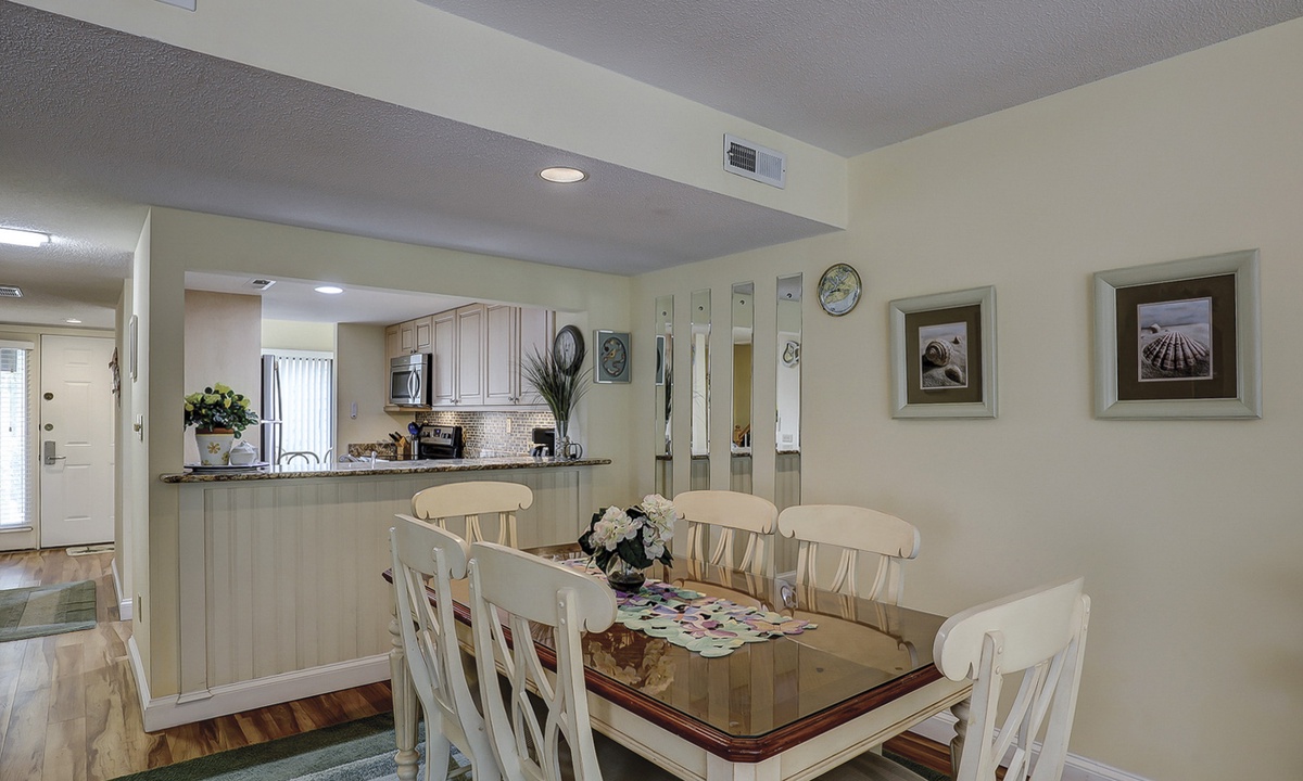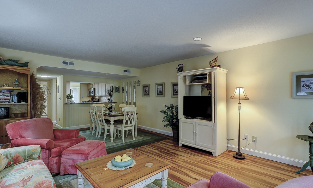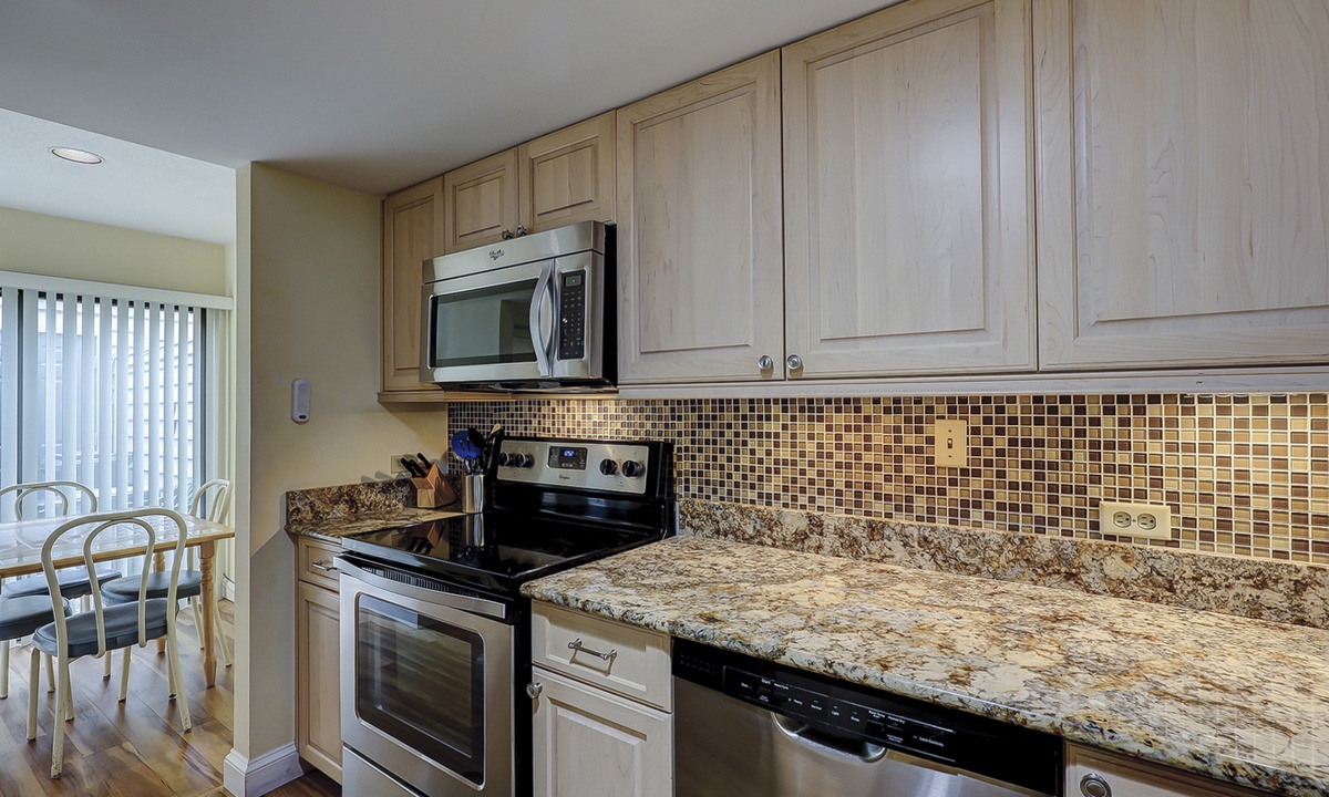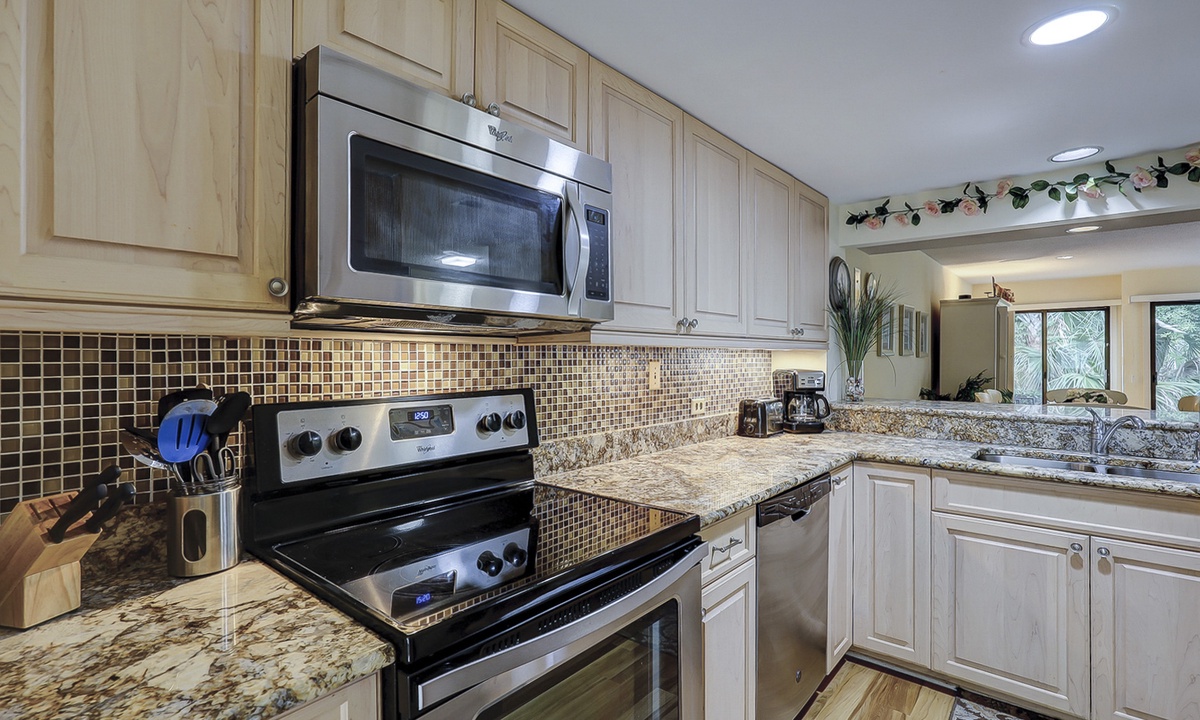 As you enter Greens 151 you will immediately notice the renovated kitchen with granite countertops and new cabinets. The kitchen is fully equipped with all of your cooking essentials. Past the kitchen is the dining room with seating for 6 and the living room which includes a flat screen HDTV with HD and DVR. Sliding glass doors will take you out to the shaded deck featuring a gas grill and a landscaped golf view.