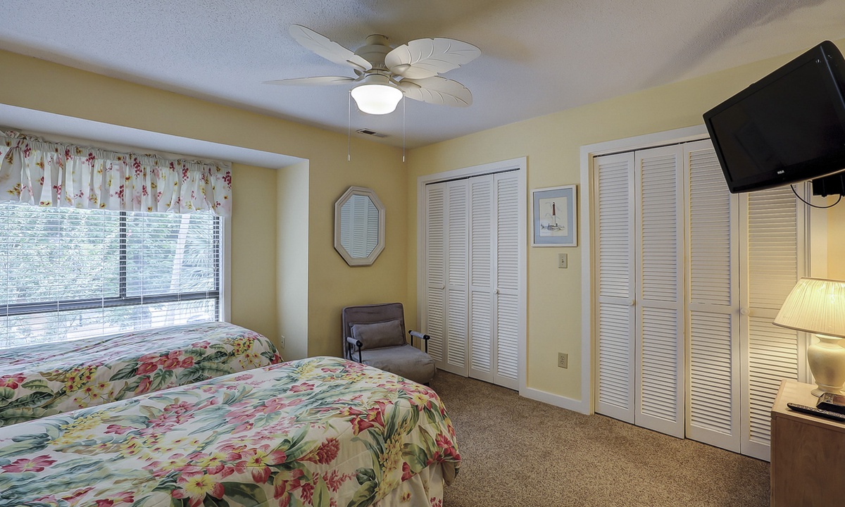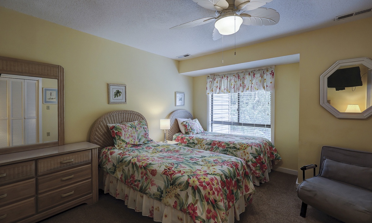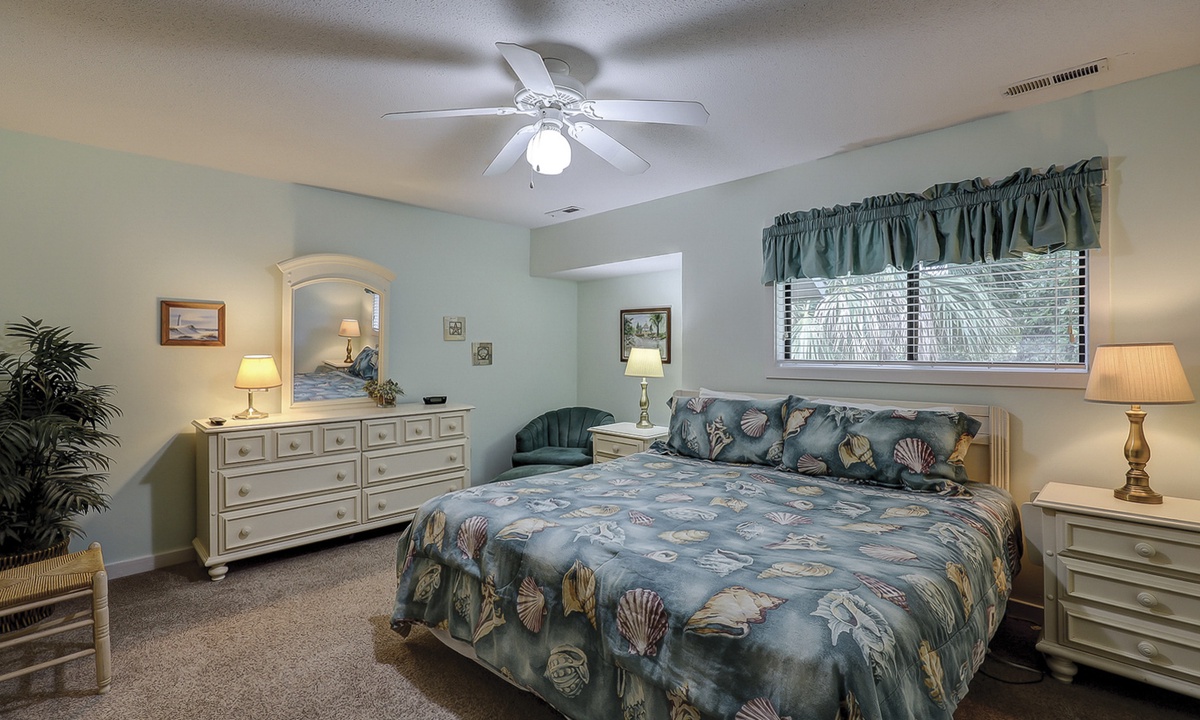 Your vacation will be a breeze in this 2 bedroom, 2.5 bath, renovated townhouse style villa in the Greens community on Hilton Head Island’s scenic and serene Shipyard.