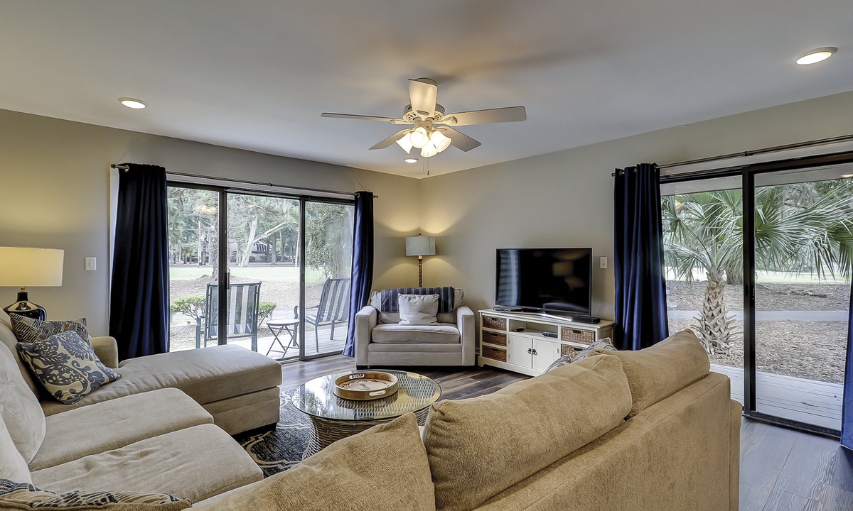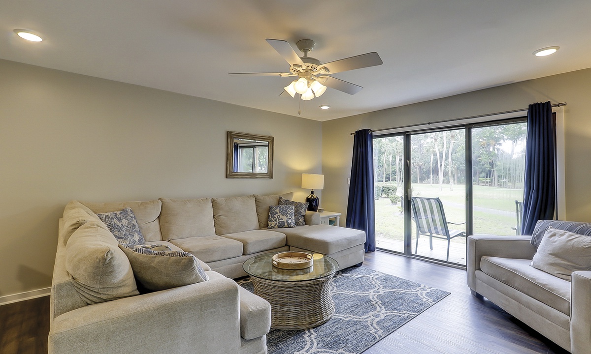 Renovated with panoramic golf course views, Hilton Head Greens 179 offers guests luxury accommodations and easy access to the pool and beach!