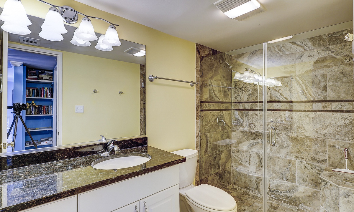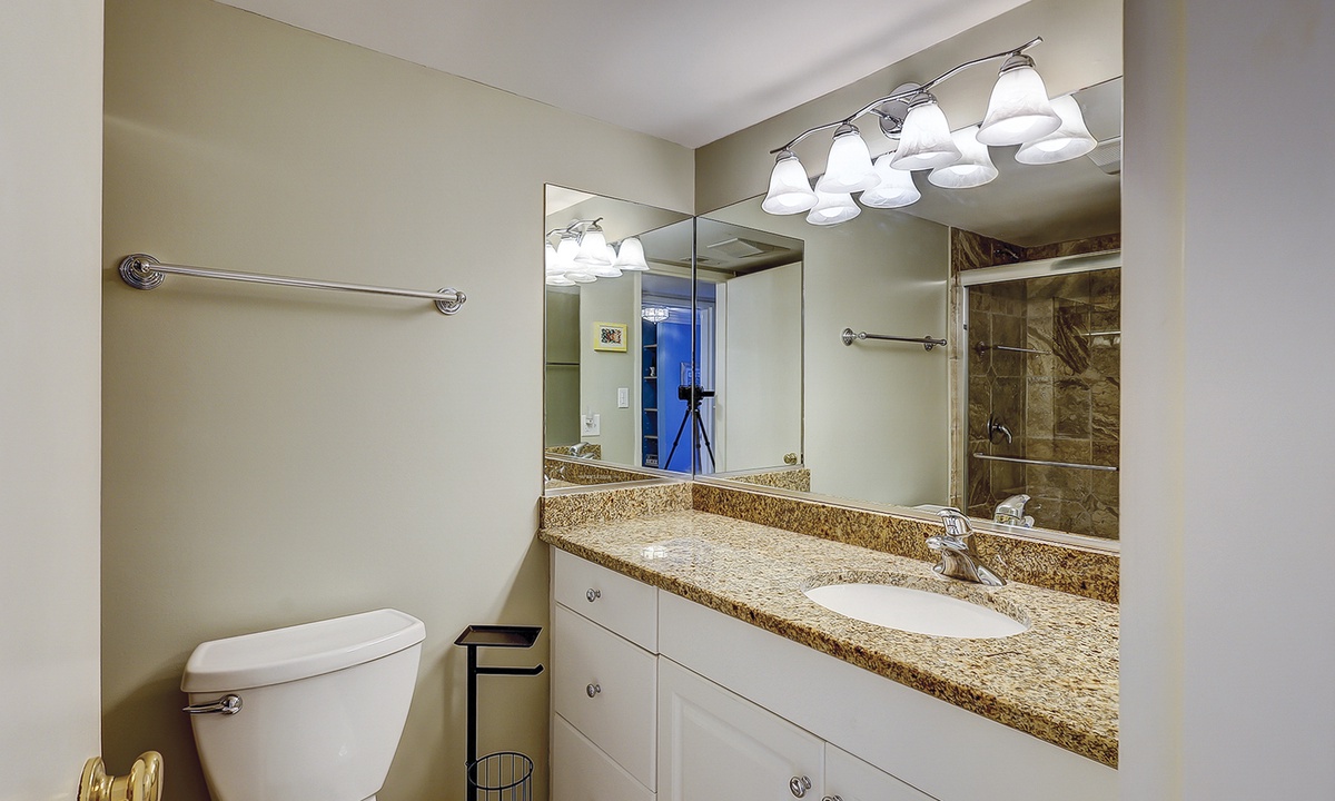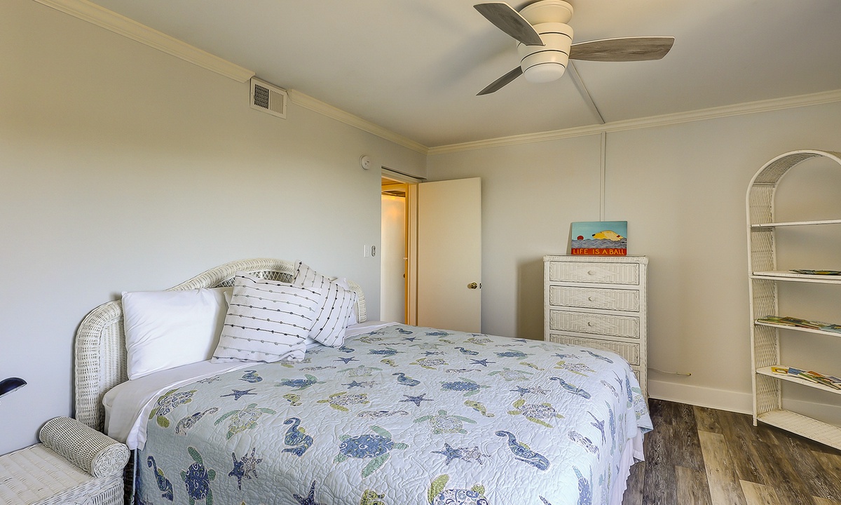 One guest room has a king bed and features a private balcony over looking the ocean, as well as a Smart TV and a private bathroom with a tiled walk-in shower. The third guest room has a queen bed, twin bunks, a flat screen TV, desk area, ocean views and has access to a hall bathroom with a large tiled walk-in shower.