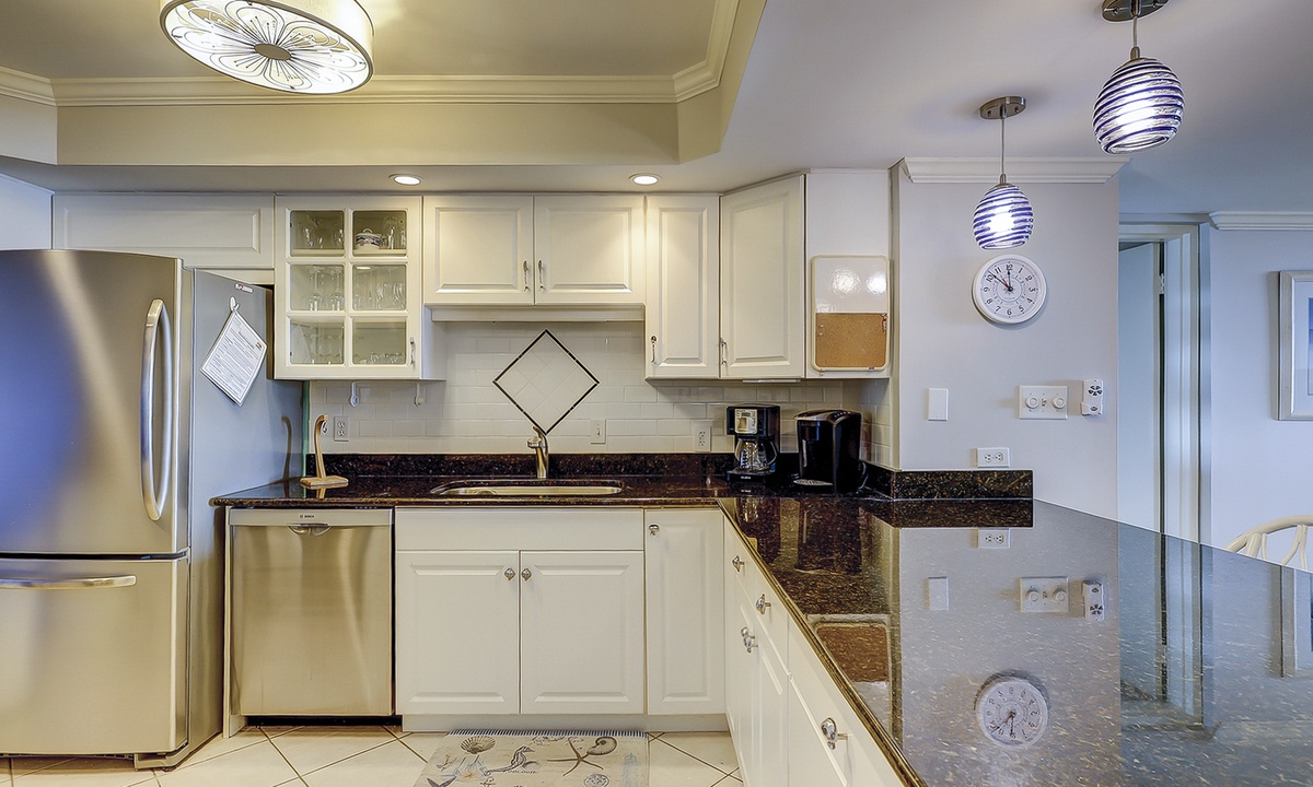 The kitchen features granite counters, stainless appliances and every cooking utensil and gadget you'll need to prepare meals for your family.