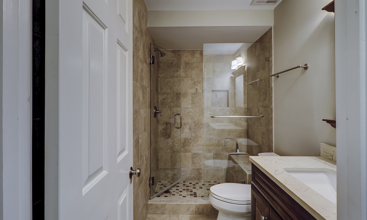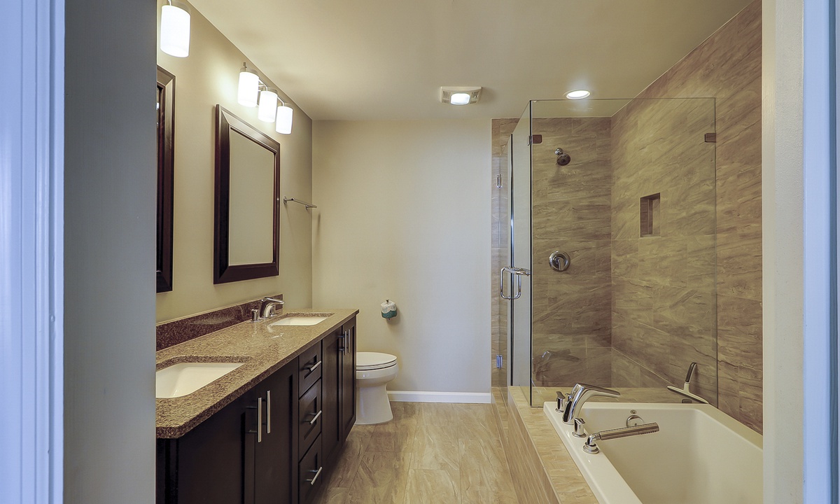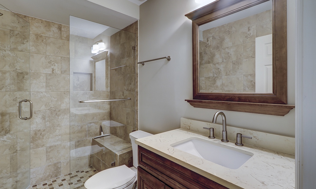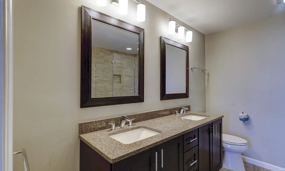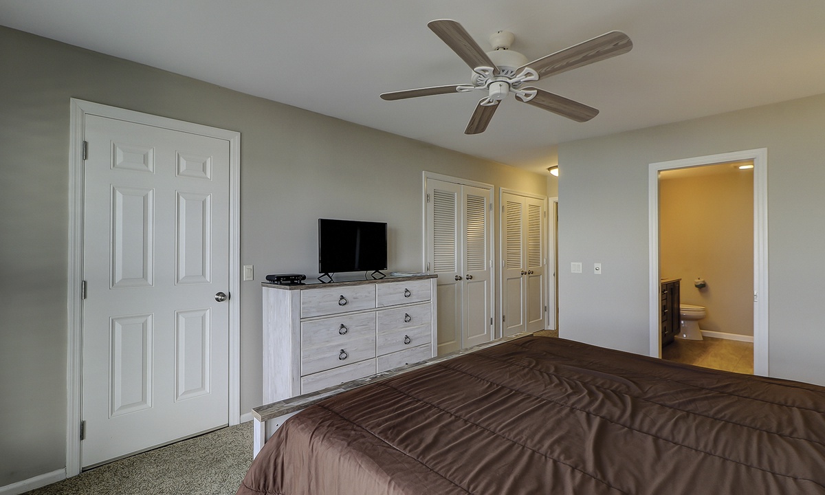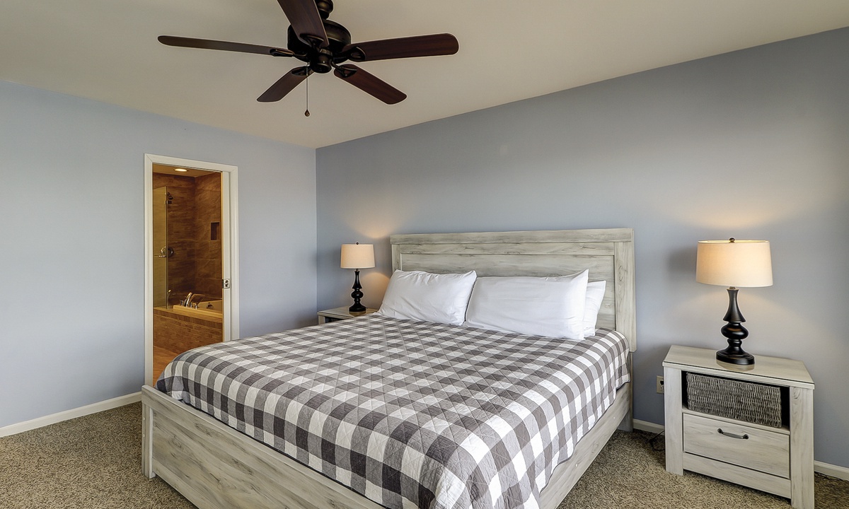 Two of the four bedrooms are located on the first floor. The primary suite is located on the first floor with a king bed, private en suite with double vanity, walk-in shower and a soaking tub. There is access to the screened porch from the primary bedroom. The second bedroom has two twin beds and access to a hall bathroom. On the second floor are the additional two bedrooms. The third bedroom has a king bed, water views, a private bath with double vanities, a walk-in shower and a soaking tub. The fourth bedroom has two twin beds and a private bath with a tub/shower combination. The laundry room with a washer and dryer is located on the second floor.
