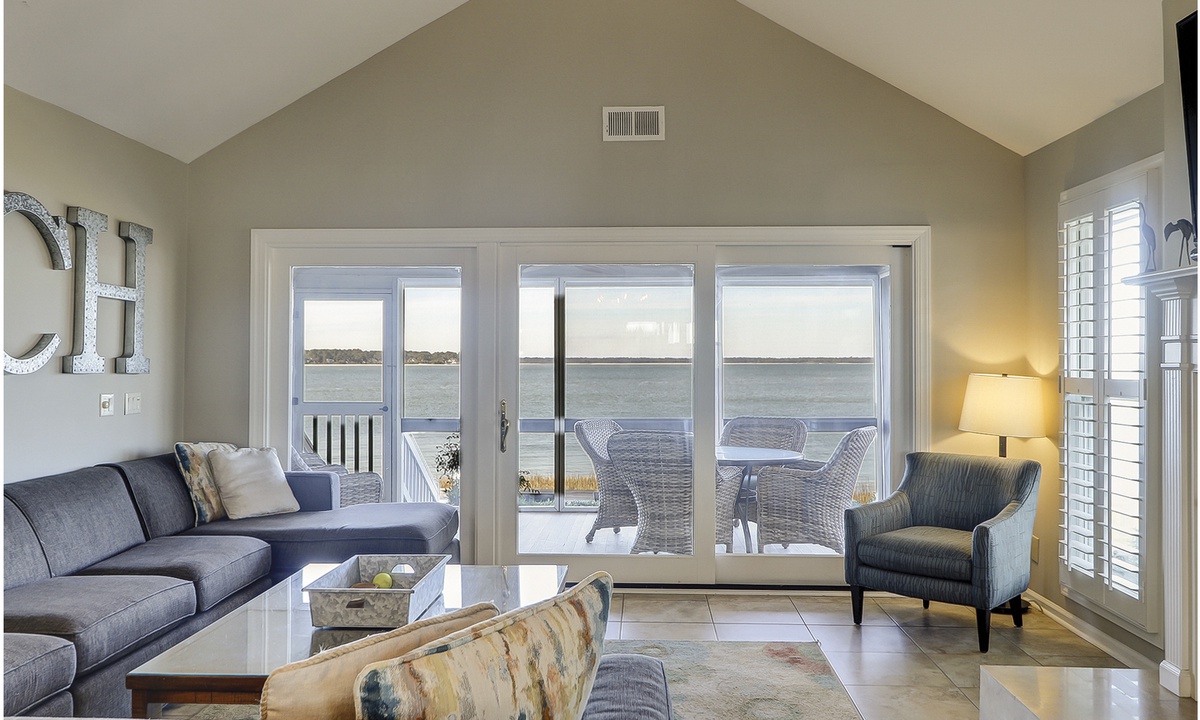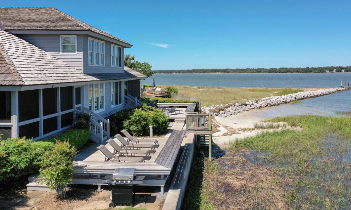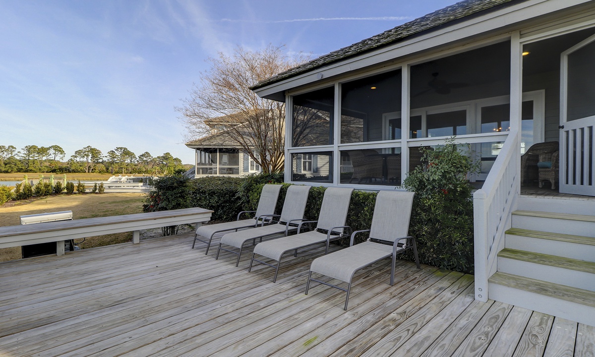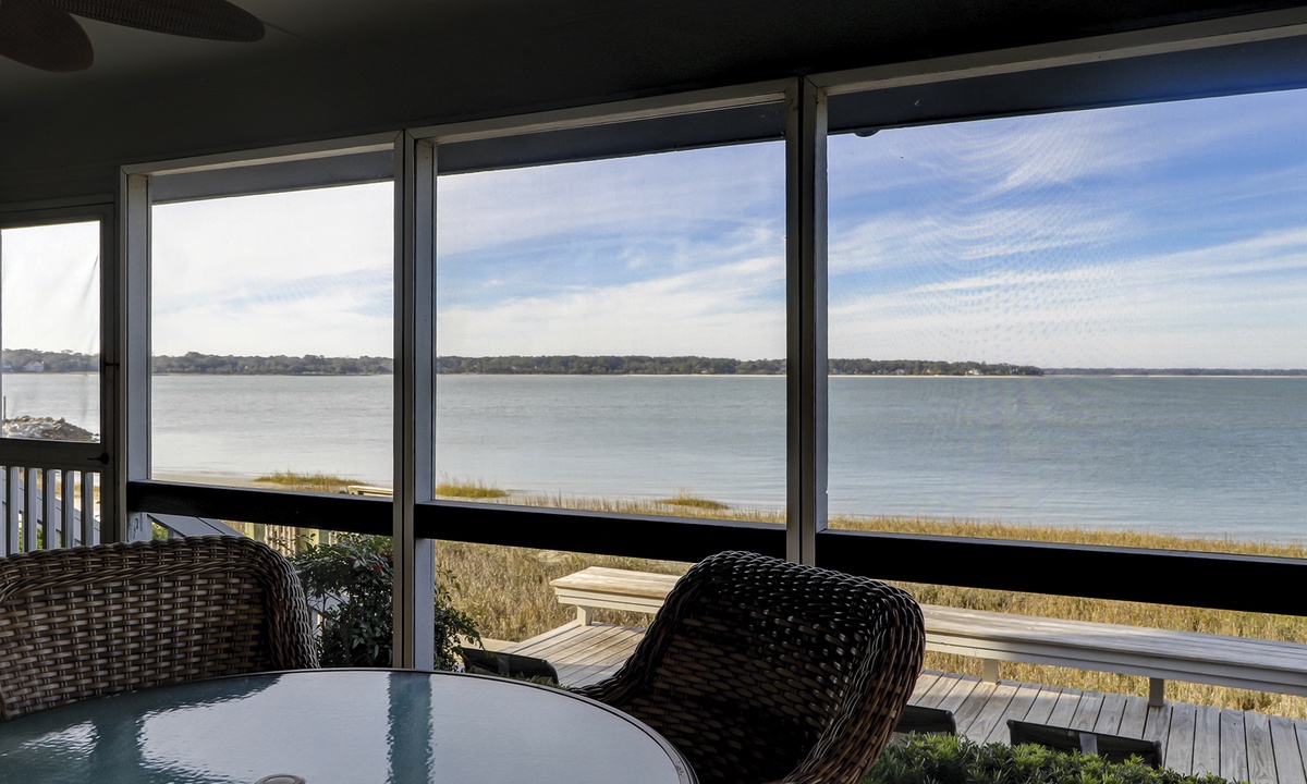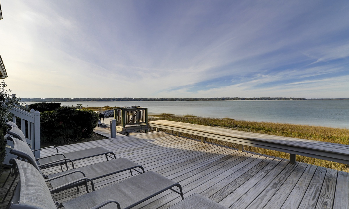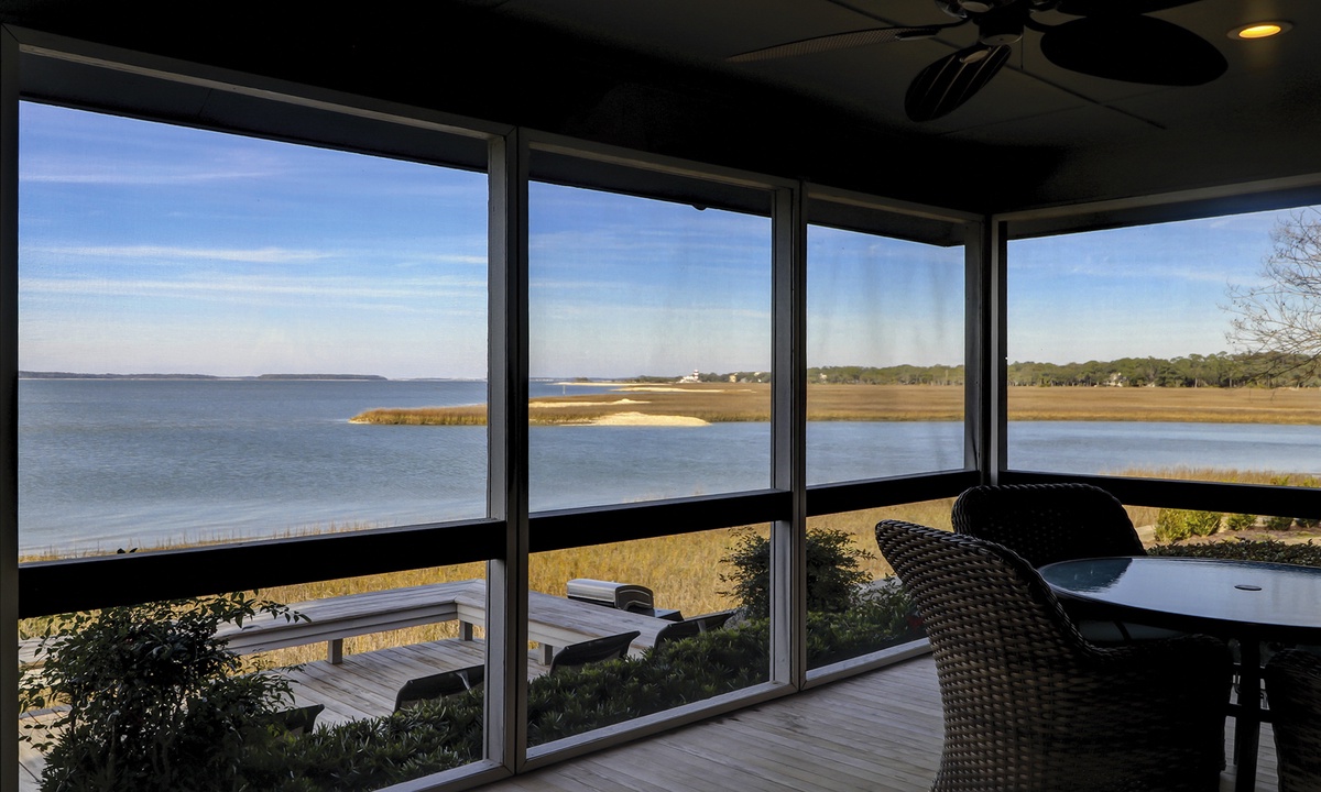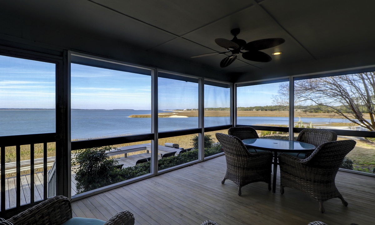 52 Lands End is a completely remodeled Hilton Head Sea Pines rental situated perfectly on the point where Braddock Cove meets the Calibogue Sound and Intracoastal Waterway. The screened-in porch and open deck are great vantage points for watching dolphins, pelicans, shrimp boats headed out for a fresh catch and so much more.