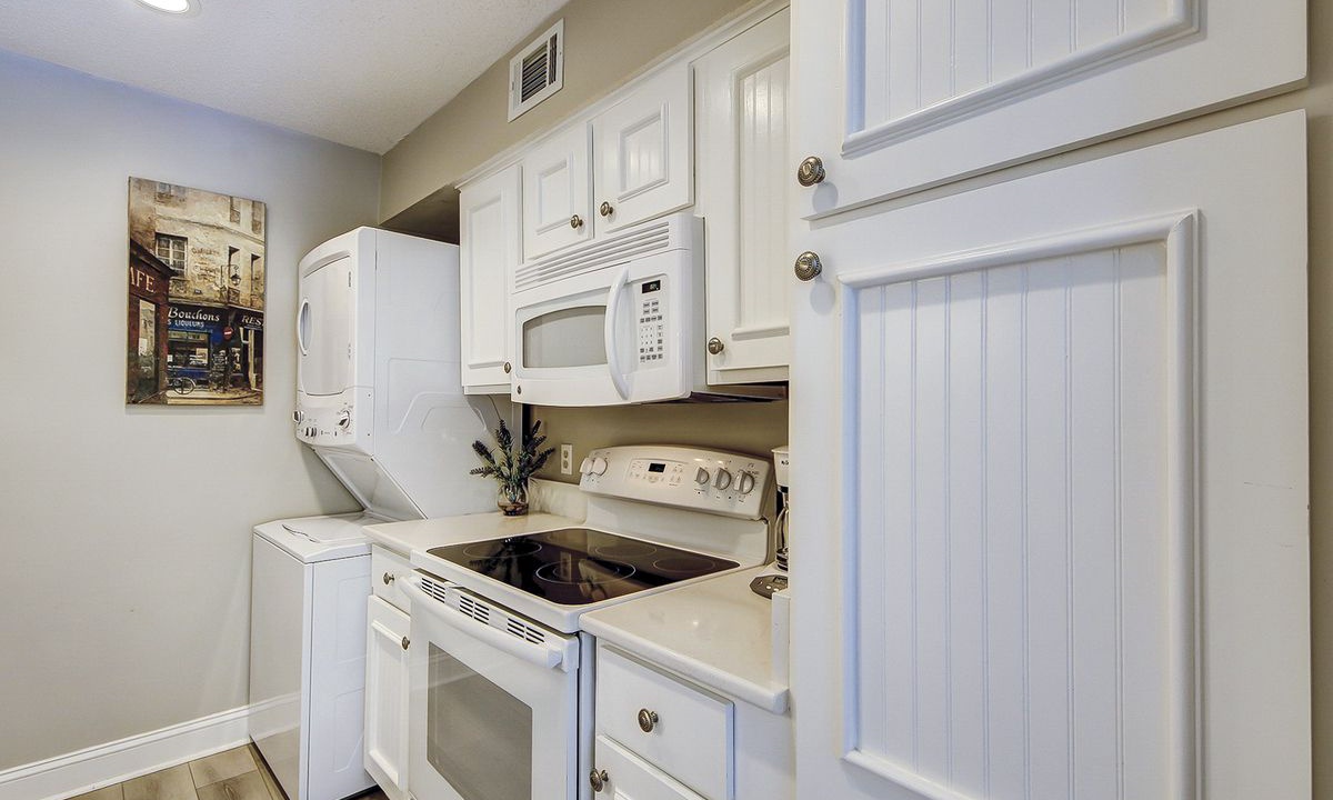 The kitchen flows off the airy dining room, featuring updated appliances and a full washer and dryer. Everything you need to whip up dinner is here!