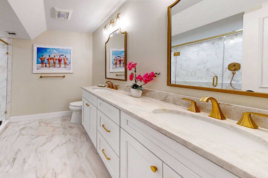 Ready to rest easy? Head to one of the two large bedrooms - a Primary King Suite with a flat screen TV and gorgeous ensuite bathroom as well as a Twin bedroom with 2 Twin beds, flat screen TV & access to an updated full bathroom (hallway access).