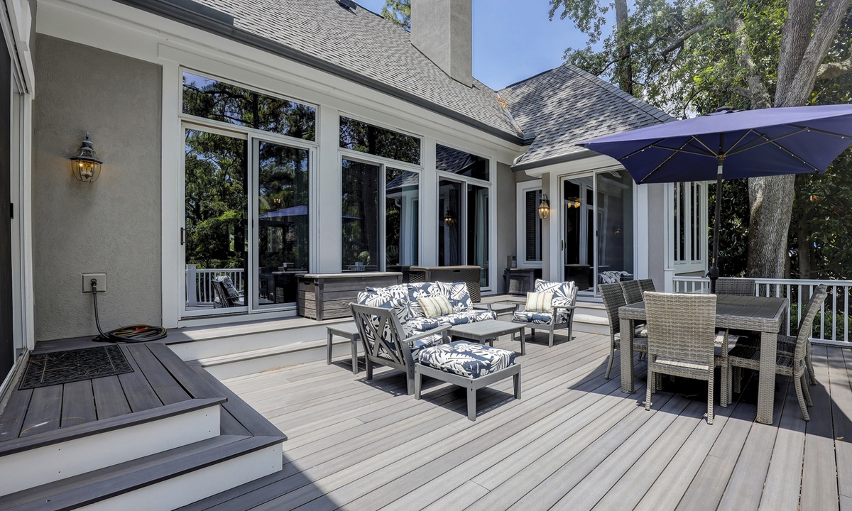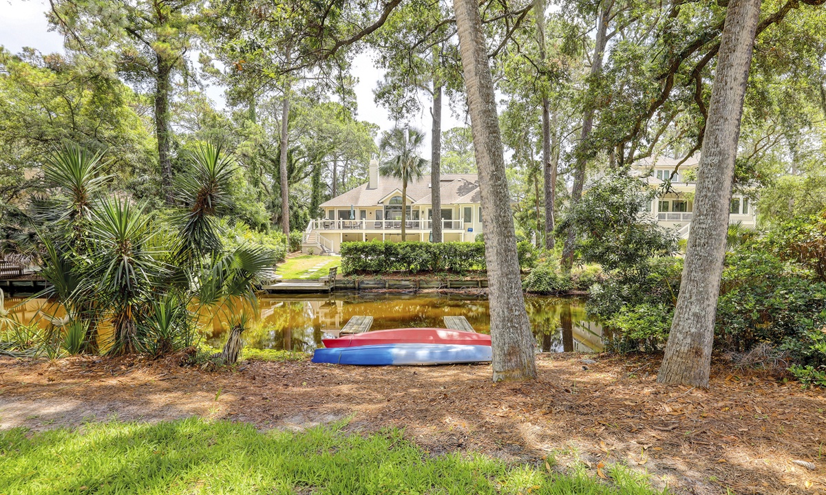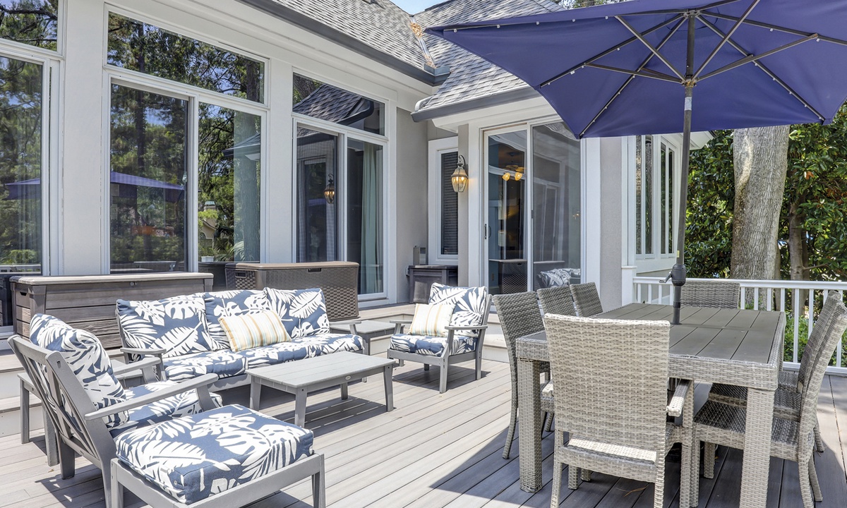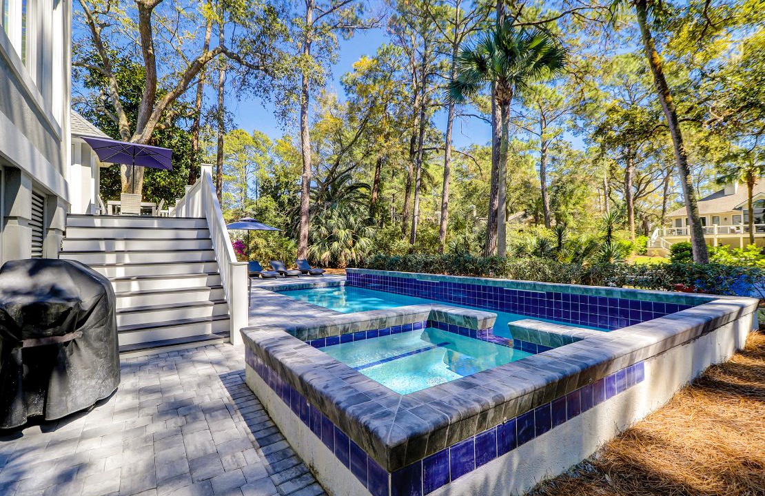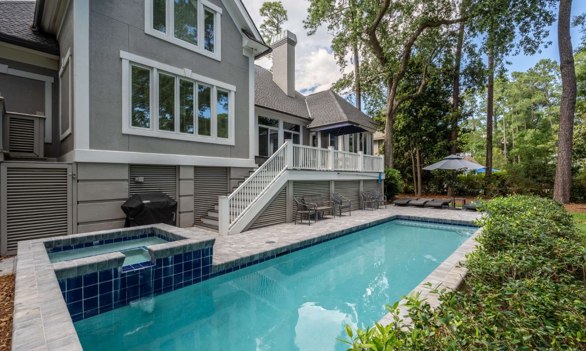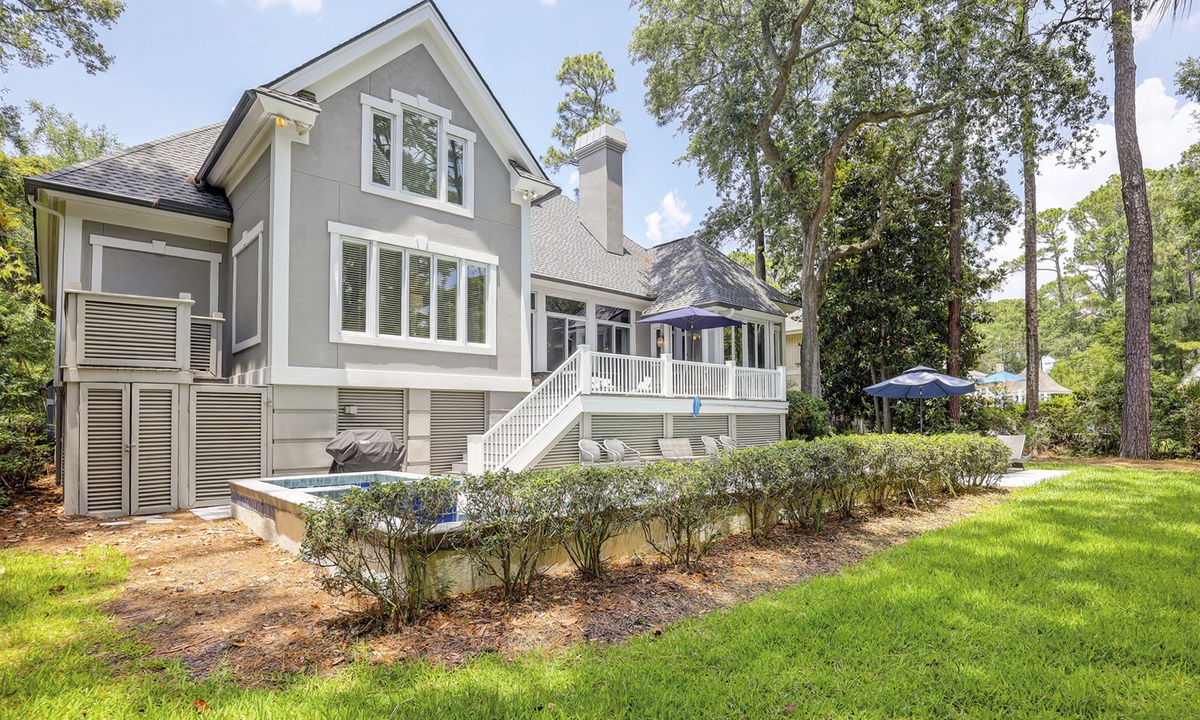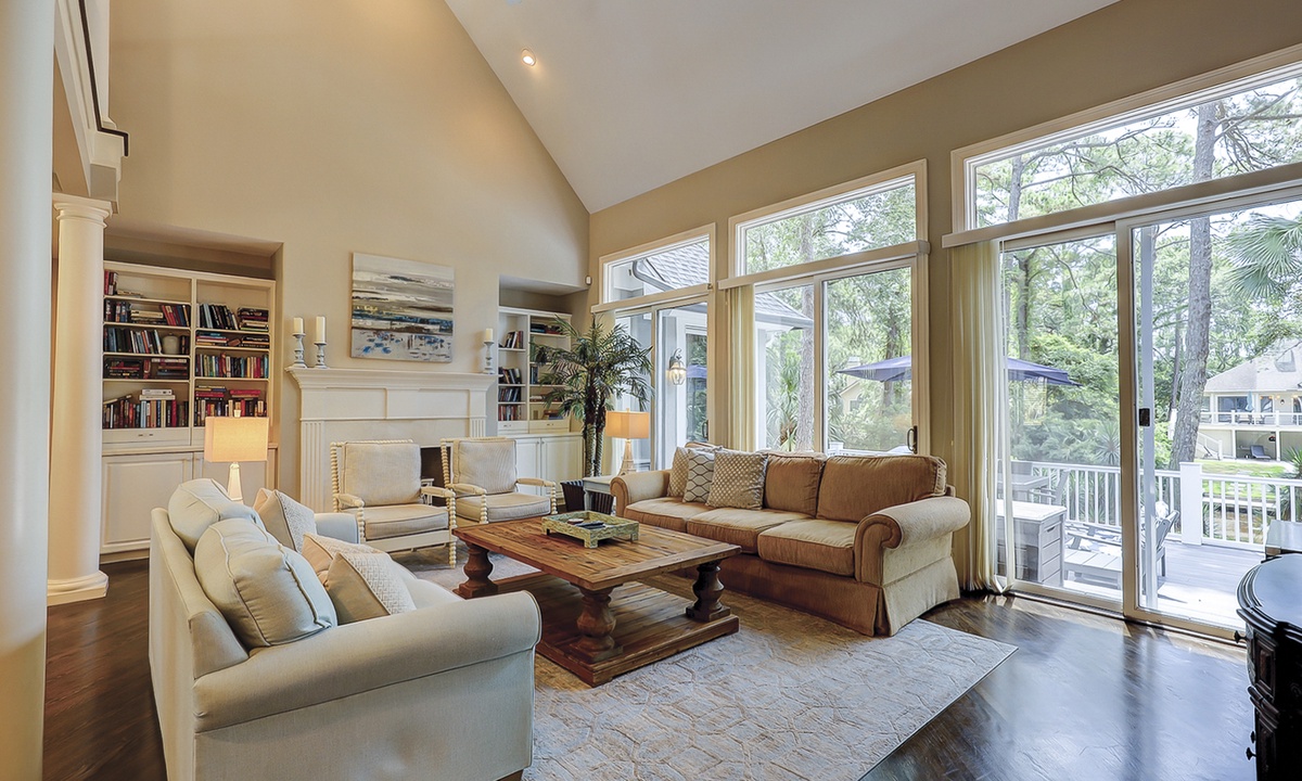 Steps lead down to the nicely landscaped backyard offering lagoon views, a grill for barbecues, a dock to fish on, a spa, as well as, a pool that can be heated for an additional charge. The picturesque backyard provides a great space for reading a book while soaking up the afternoon sun or entertaining friends and family. Mooring Buoy vacation rentals boast luxury outdoor amenities for a memorable stay on Hilton Head.