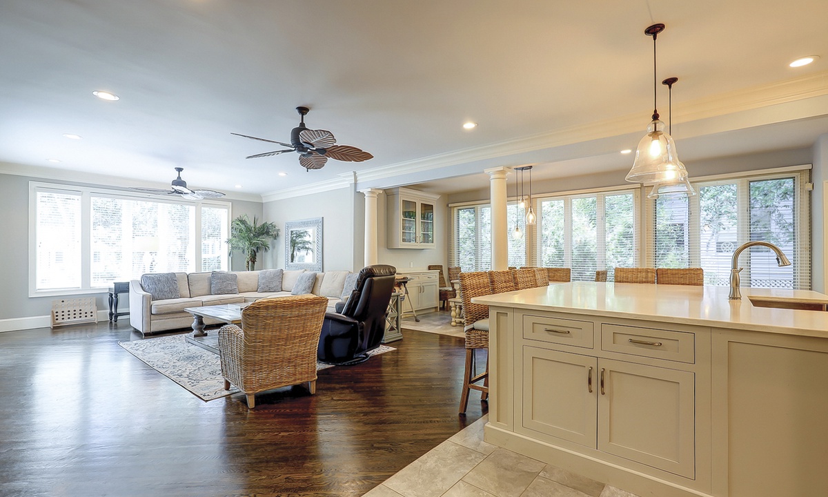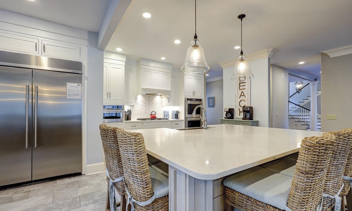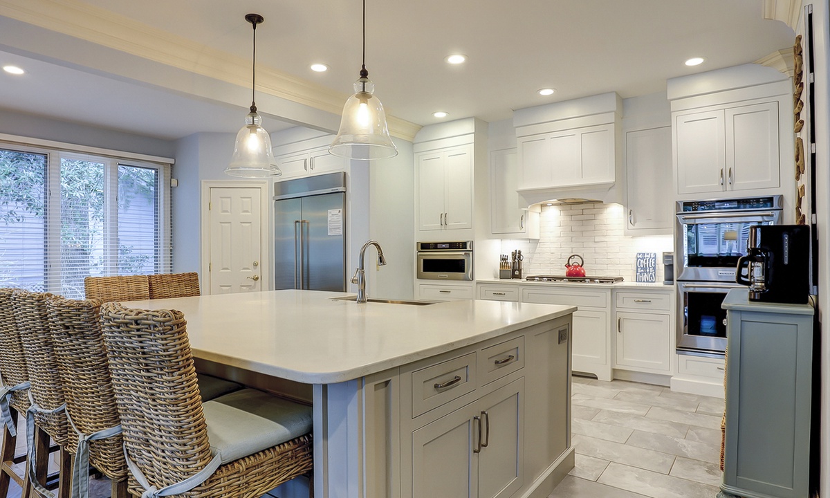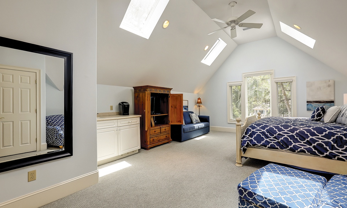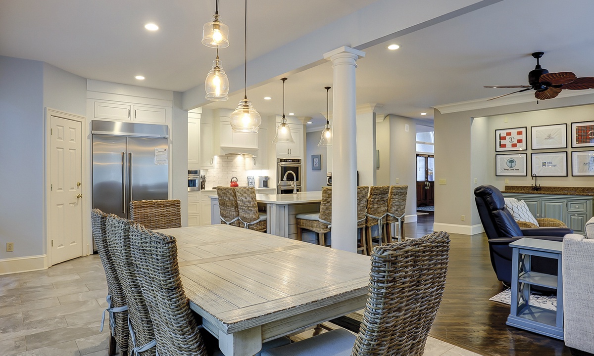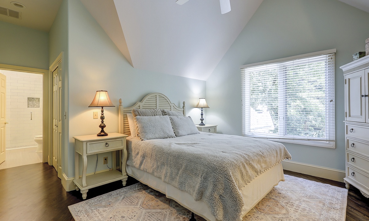 Steps lead down to the nicely landscaped backyard offering lagoon views, a grill for barbecues, a dock to fish on, a spa, as well as, a pool that can be heated for an additional charge. The picturesque backyard provides a great space for reading a book while soaking up the afternoon sun or entertaining friends and family. Mooring Buoy vacation rentals boast luxury outdoor amenities for a memorable stay on Hilton Head.