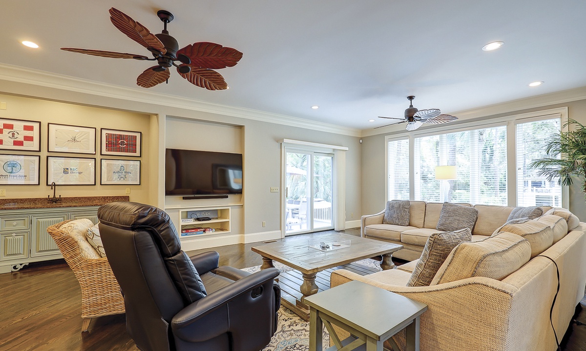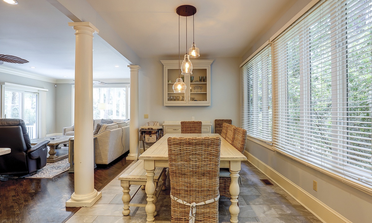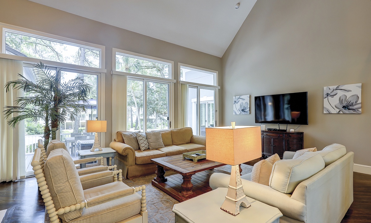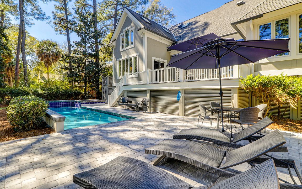 This fabulous 7 bedrooms, 6.5 bath Mooring Buoy vacation rental home in Palmetto Dunes sits on an 11-mile long lagoon and offers tranquil views, spacious interiors, two suites, a picturesque backyard, premium movie channels (included in the cable package) for movie nights and is just a few minutes walk to the Atlantic Ocean. 179 Mooring Buoy offers it all.