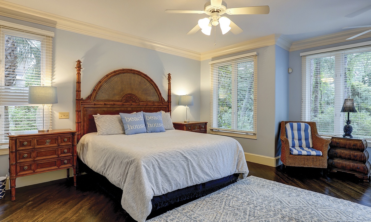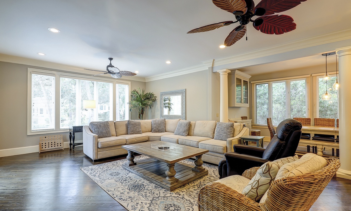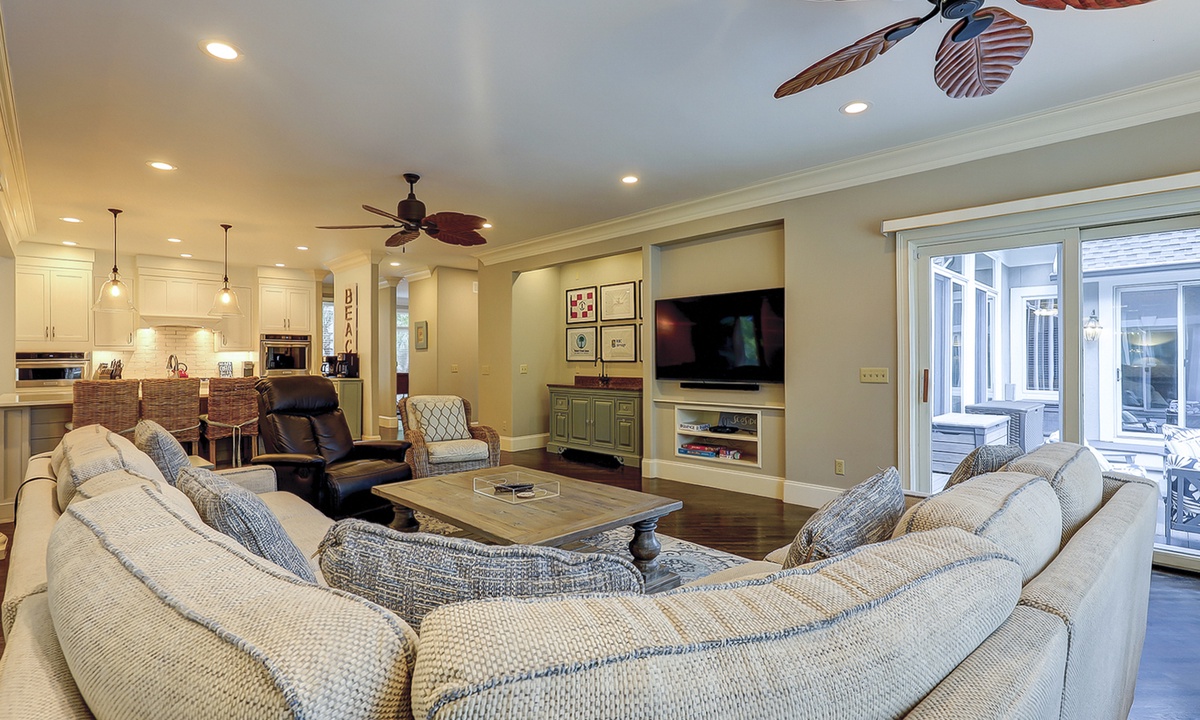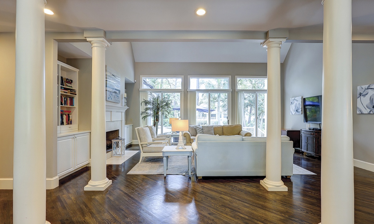 This fabulous 7 bedrooms, 6.5 bath Mooring Buoy vacation rental home in Palmetto Dunes sits on an 11-mile long lagoon and offers tranquil views, spacious interiors, two suites, a picturesque backyard, premium movie channels (included in the cable package) for movie nights and is just a few minutes walk to the Atlantic Ocean. 179 Mooring Buoy offers it all.