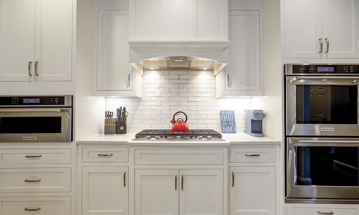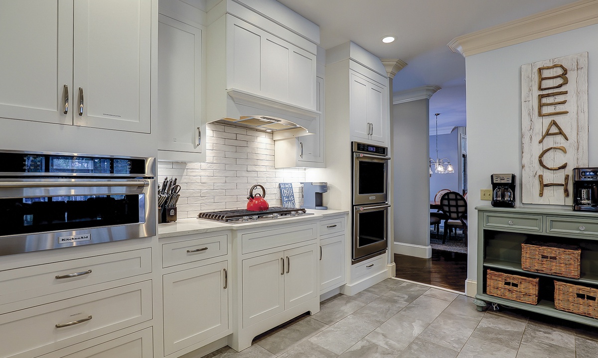 The open foyer leads the way to a cozy, living area offering a three-piece seating group, two lit Eiffel Tower lamps, and plenty of books to keep the reader in the group entertained; it is the perfect room for entertaining friends and family or for having some quiet time. The décor and ambiance in the kitchen will encourage you to tap into your inner chef skills and create gourmet delicacies for the entire family to try. A cozy breakfast nook is located in the kitchen with seating for 8, so while breakfast is being prepared, have the kids plan the day’s itinerary or deal a hand of cards to keep them entertained. There is also a formal dining room with a cherry oak finished table and eight sleek, plush matching chairs.