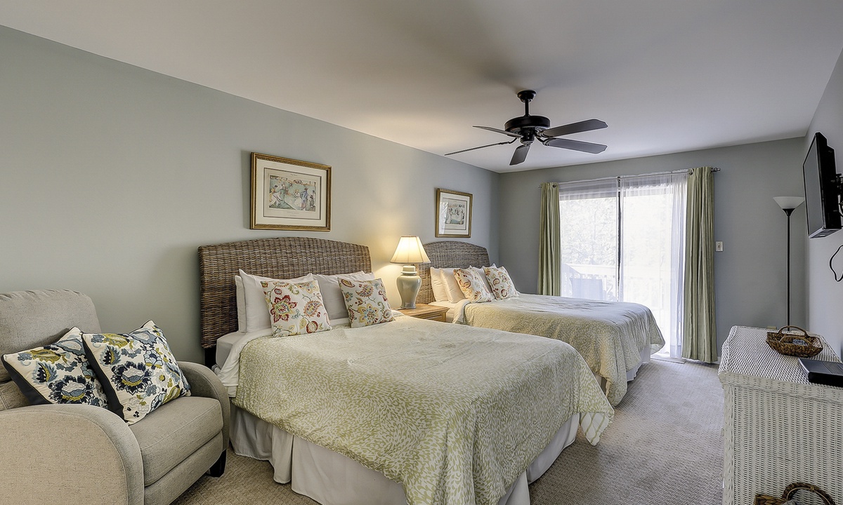 The guest suite features two queen beds, a Smart TV and a renovated private bathroom with a tub/shower combination.