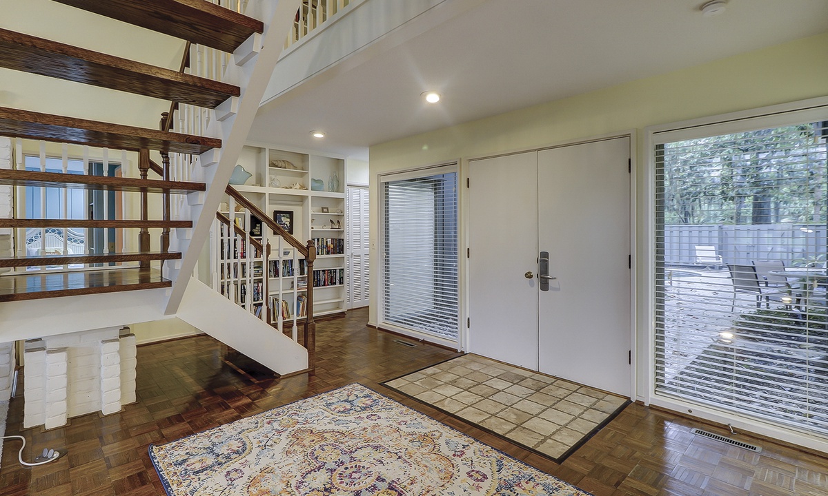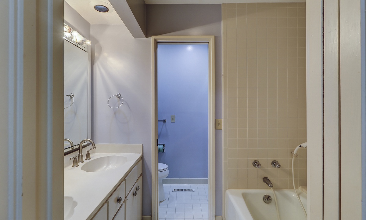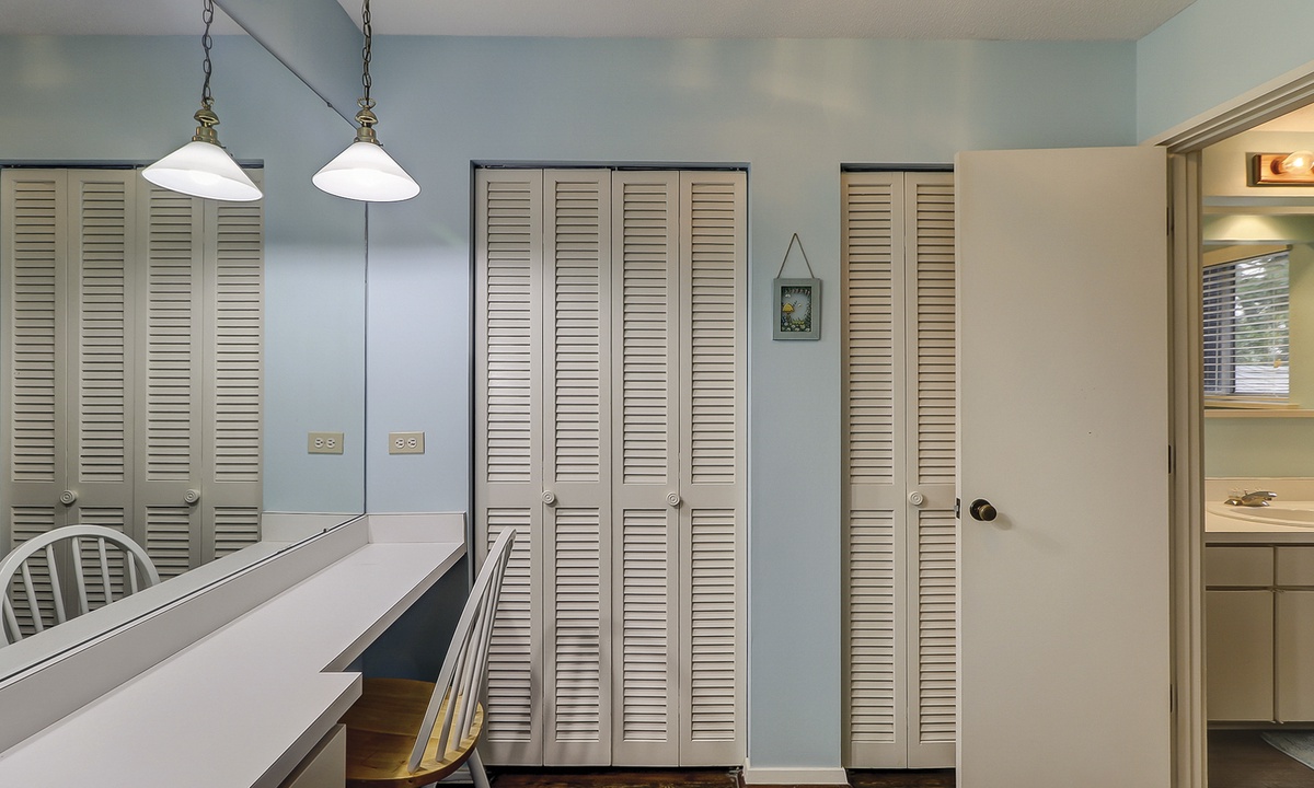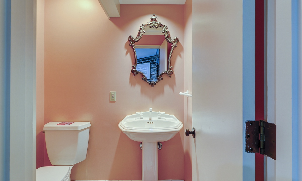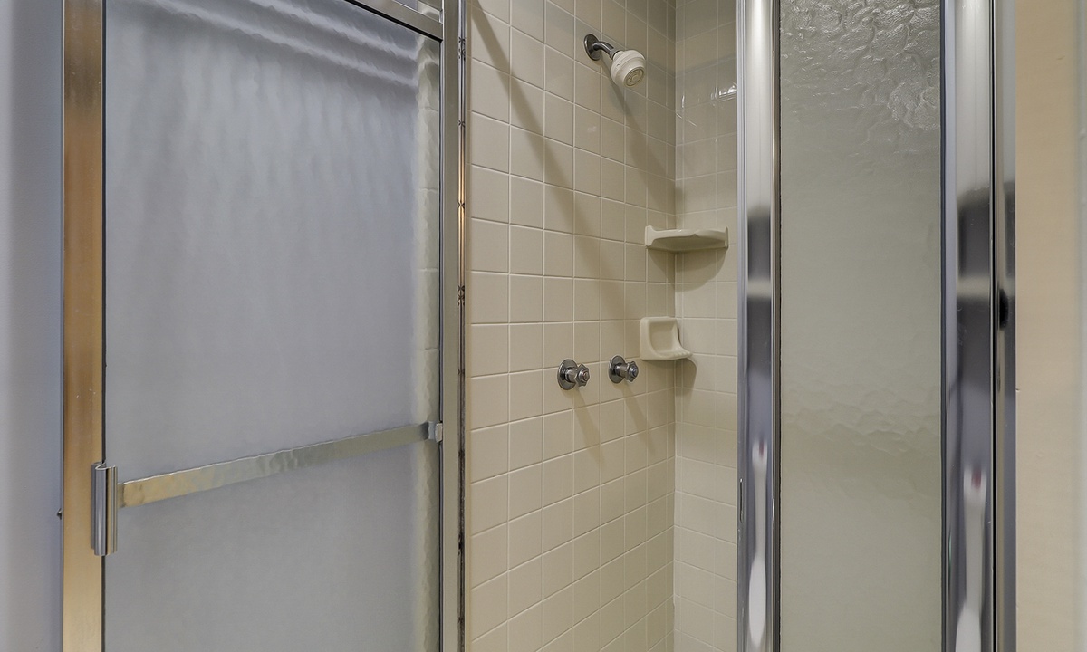 There are 2 bedrooms and 2.5 bathrooms located on the main floor. The first bedroom features a king bed and a private bathroom with a soaking tub & step-in shower. The second bedroom has 2 twin beds and an attached powder room.