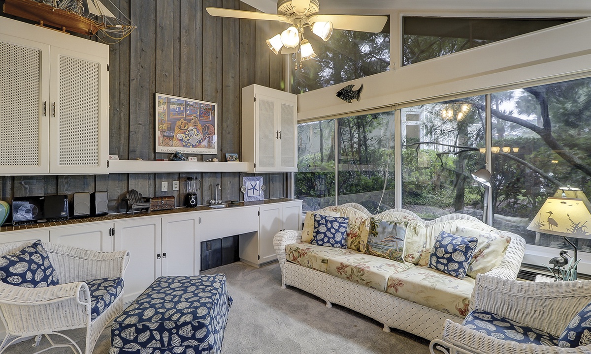 The home features a deck on the rear of the house, peacefully overlooking the golf course. The pool is located out front and has ample seating for the whole group. Walk to the beach in under 5-minutes using one of the paved beach paths across Sea Pines Drive. For added convenience, the large circular driveway can accommodate 5 or more cars. 70 North Sea Pines is centrally located to Coligny Plaza in Forest Beach, the Sea Pines Beach Club, and Harbour Town, plus a short bike ride down to South Beach Marina Village, home of The Salty Dog Cafe.