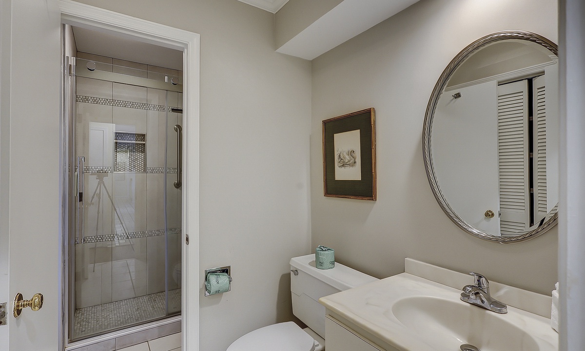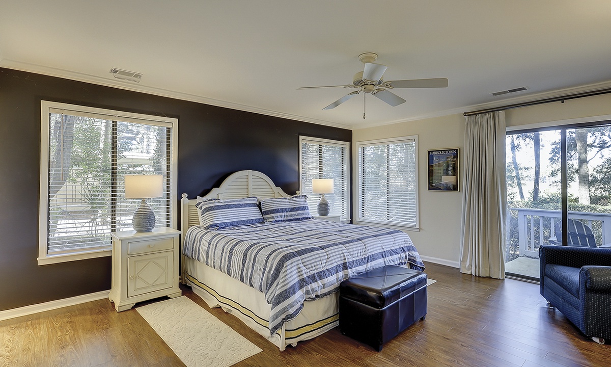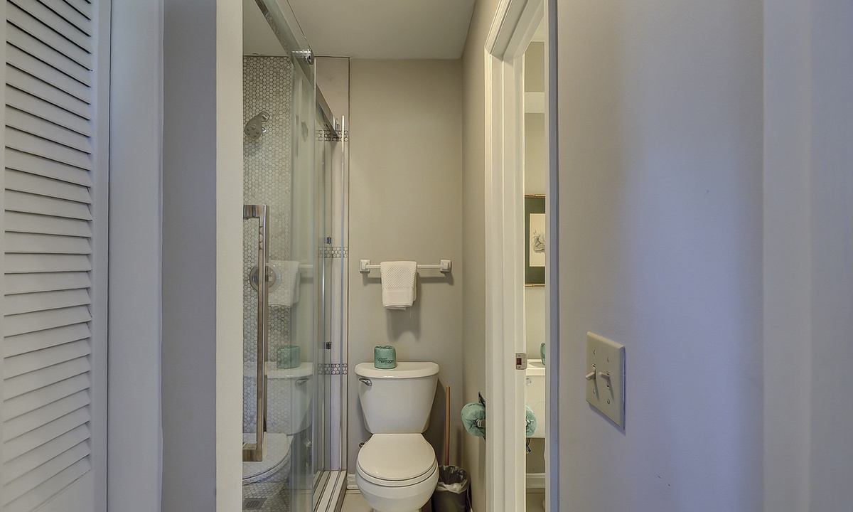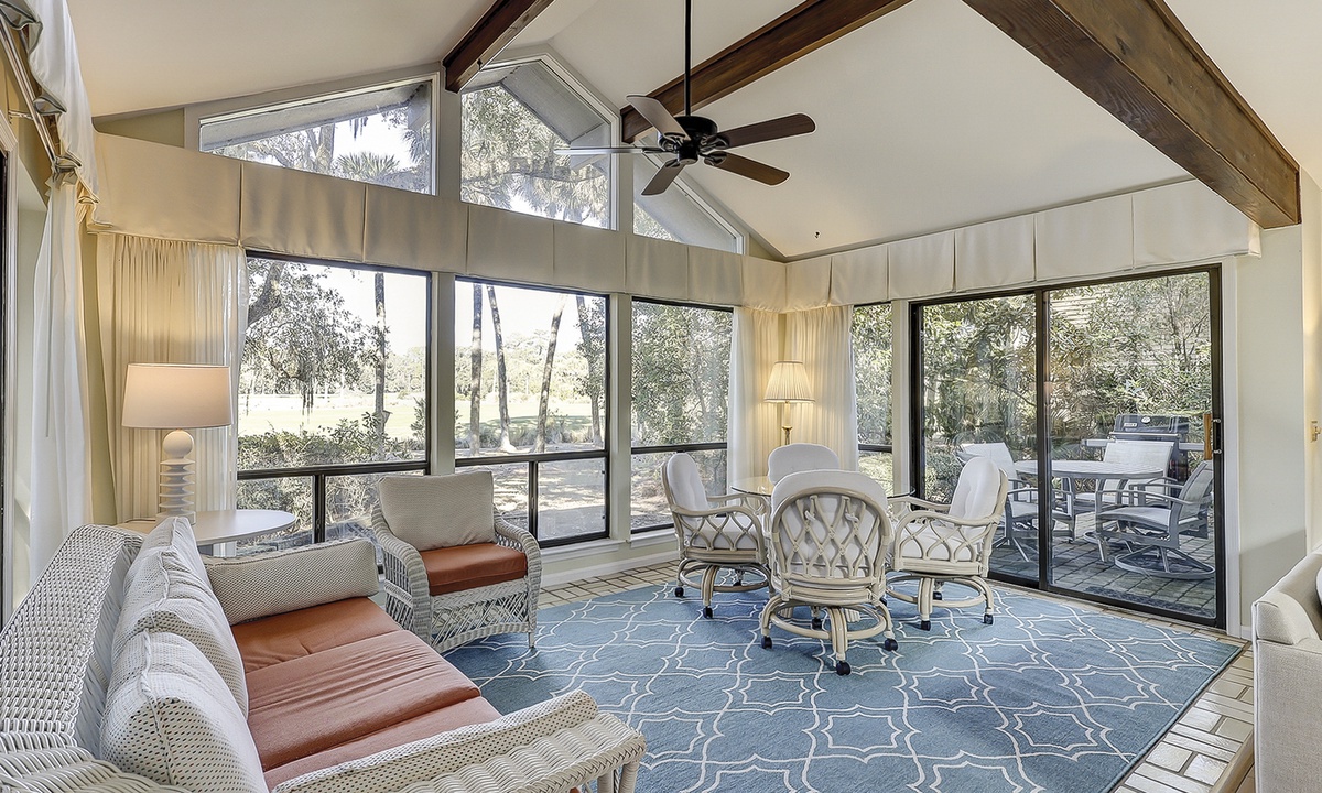 The two guest bedrooms are located to the right of the living area. Both bedrooms have twin beds. The 2nd guest bedroom also has a flat screen TV and access to the porch, shared by the Carolina room. You'll find a gas grill on this porch, as well as seating for 4.