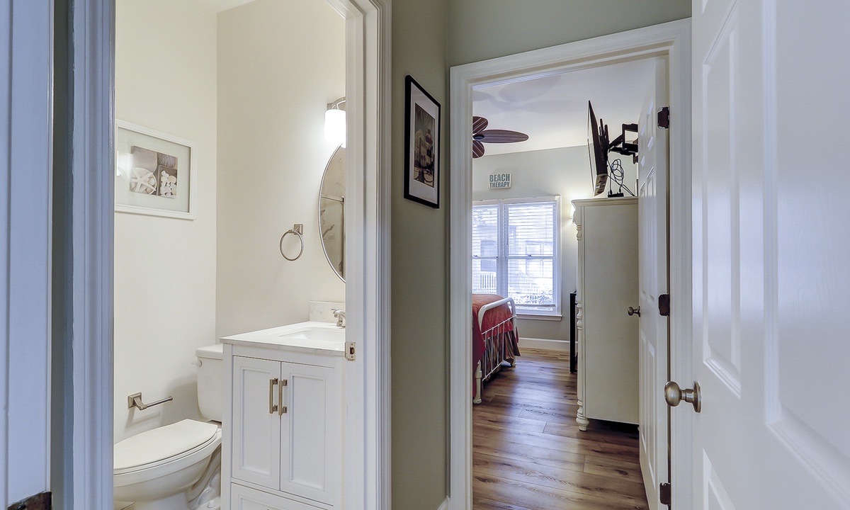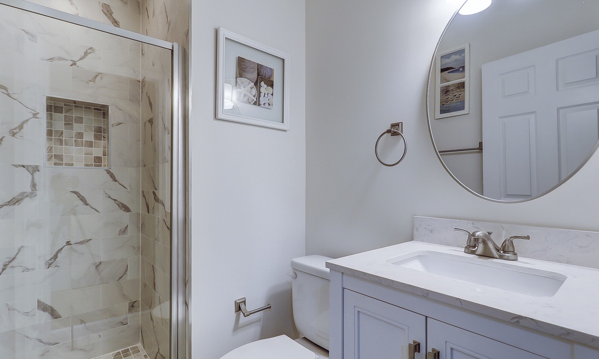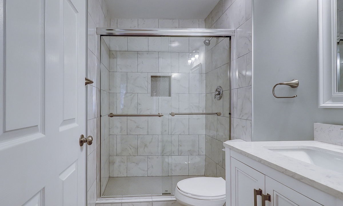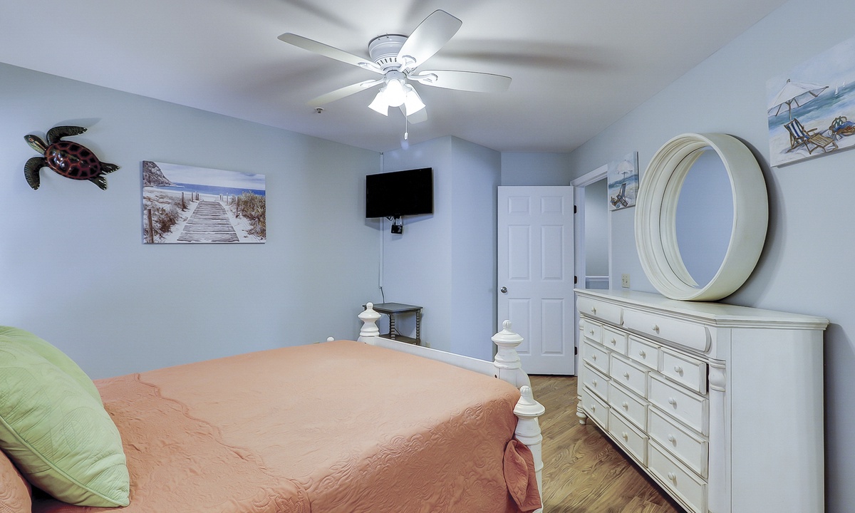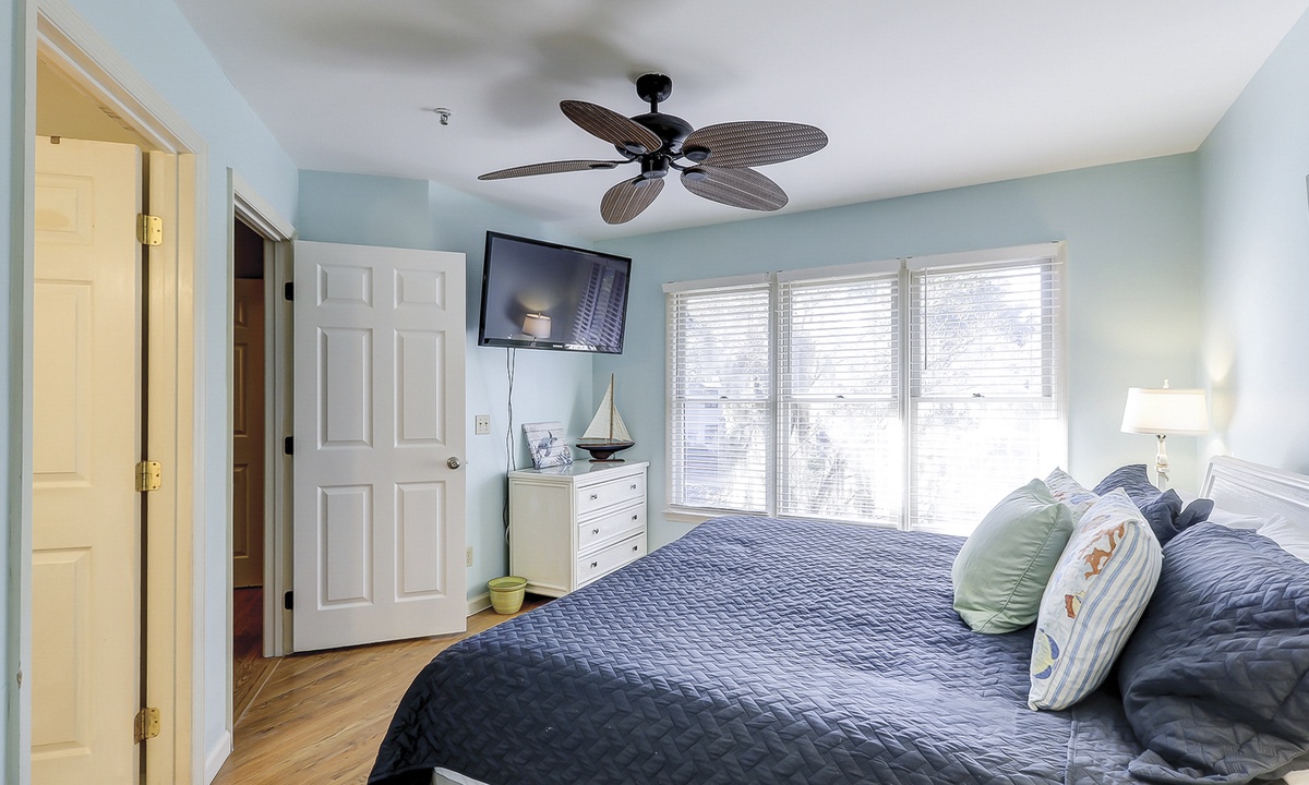 The first of 3 bedrooms is located on the main level. This room features a queen bed, flat screen TV, work station and access to a hall bath with a ornately tiled walk-in shower. The remaining 2 bedrooms are located on the 2nd level. The first bedroom at the top of the stairs features a king bed, flat screen TV and a private bathroom with a tub/shower combination. The third bedroom features a queen bed, flat screen TV and a private bathroom with a large, tiled walk-in shower.
