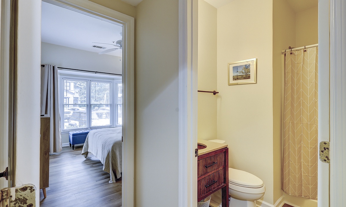The main level also has a bedroom with a queen bed, Smart TV and access to a hall bathroom with a tub/shower combination.