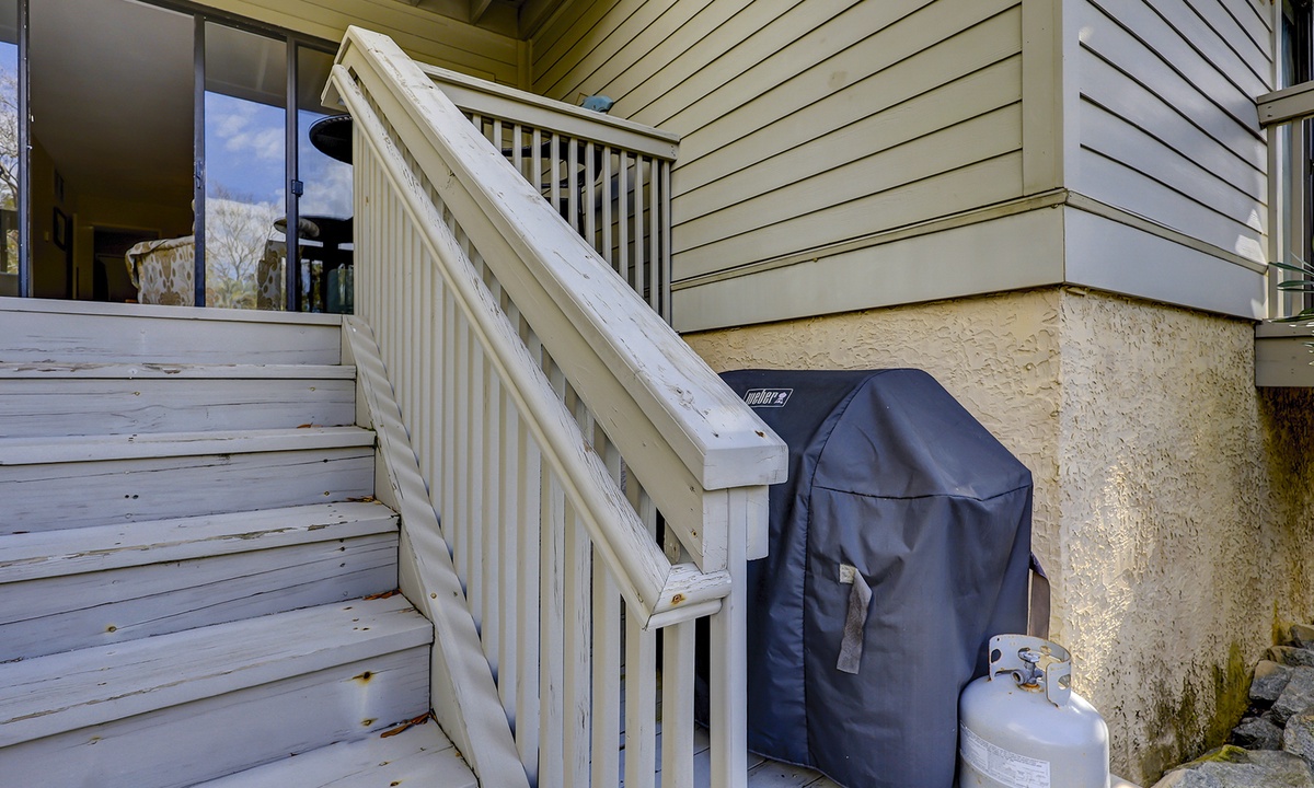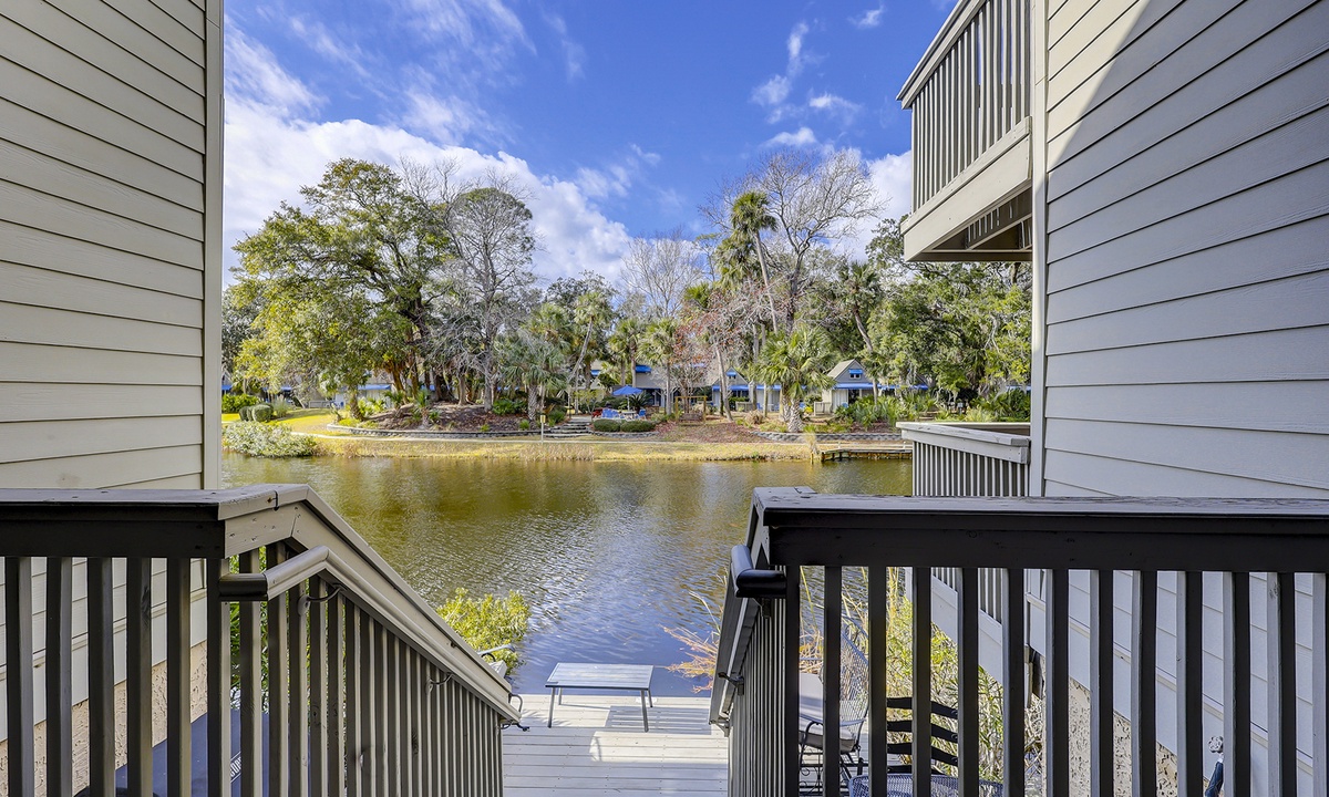 The stair free 1st level features a comfortable living area, dining area and kitchen with stainless steel appliances and everything you'll need to cook a meal for your family. A private balcony and dock with grilling area can be accessed through sliding glass doors in the living area.
