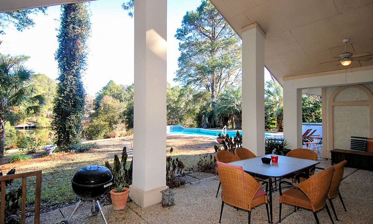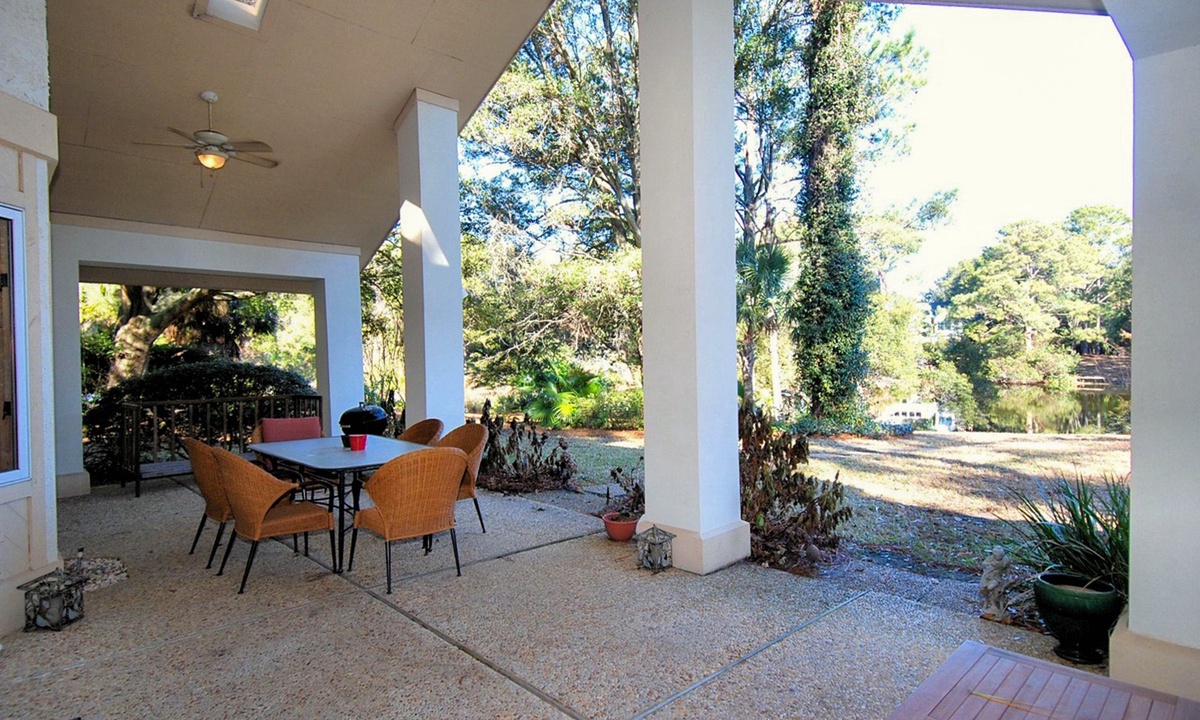 This Palmetto Dunes vacation home boasts an outdoor entertainment area with a pool (heated from September to April for an additional fee), outdoor shower, dressing room and undercover dining area for BBQ dinners. In addition, this Hilton Head home offers 1 hour of free tennis per day at the Palmetto Dunes Tennis Center upon request.