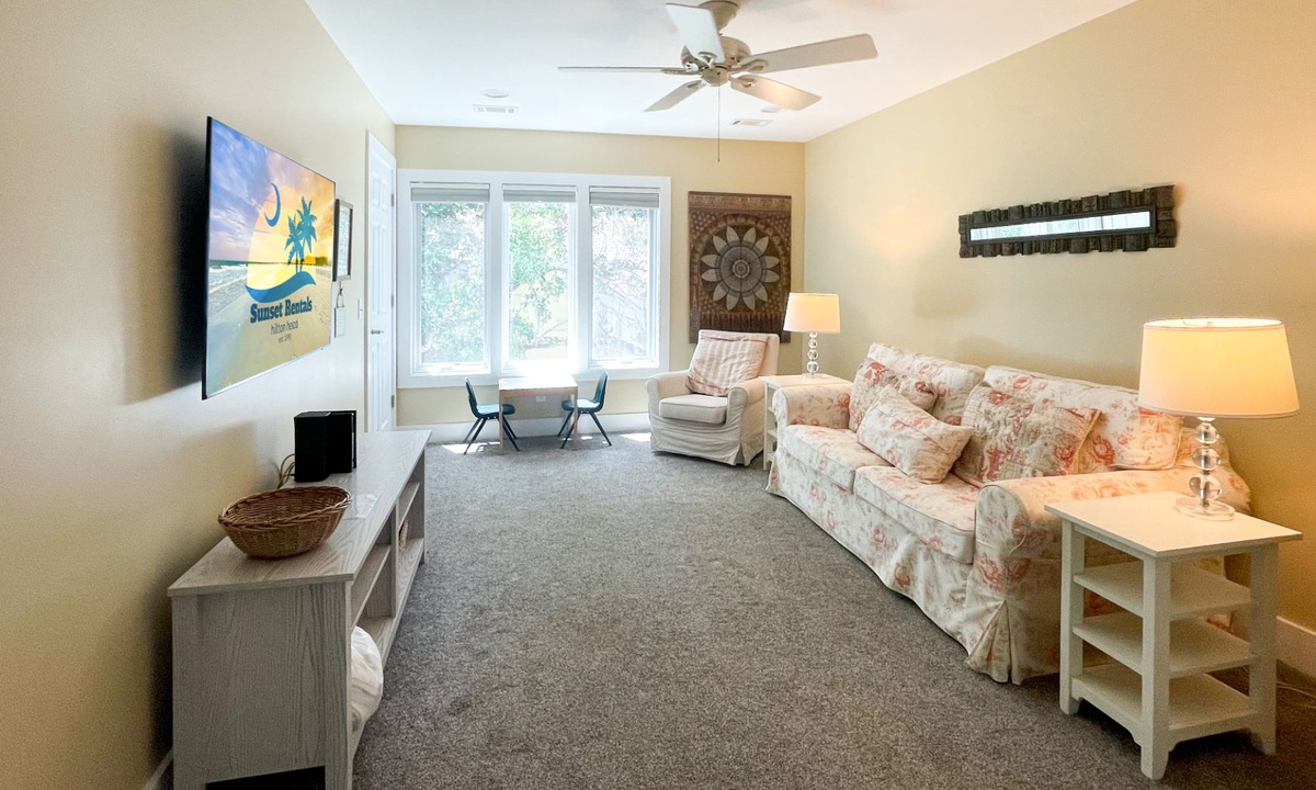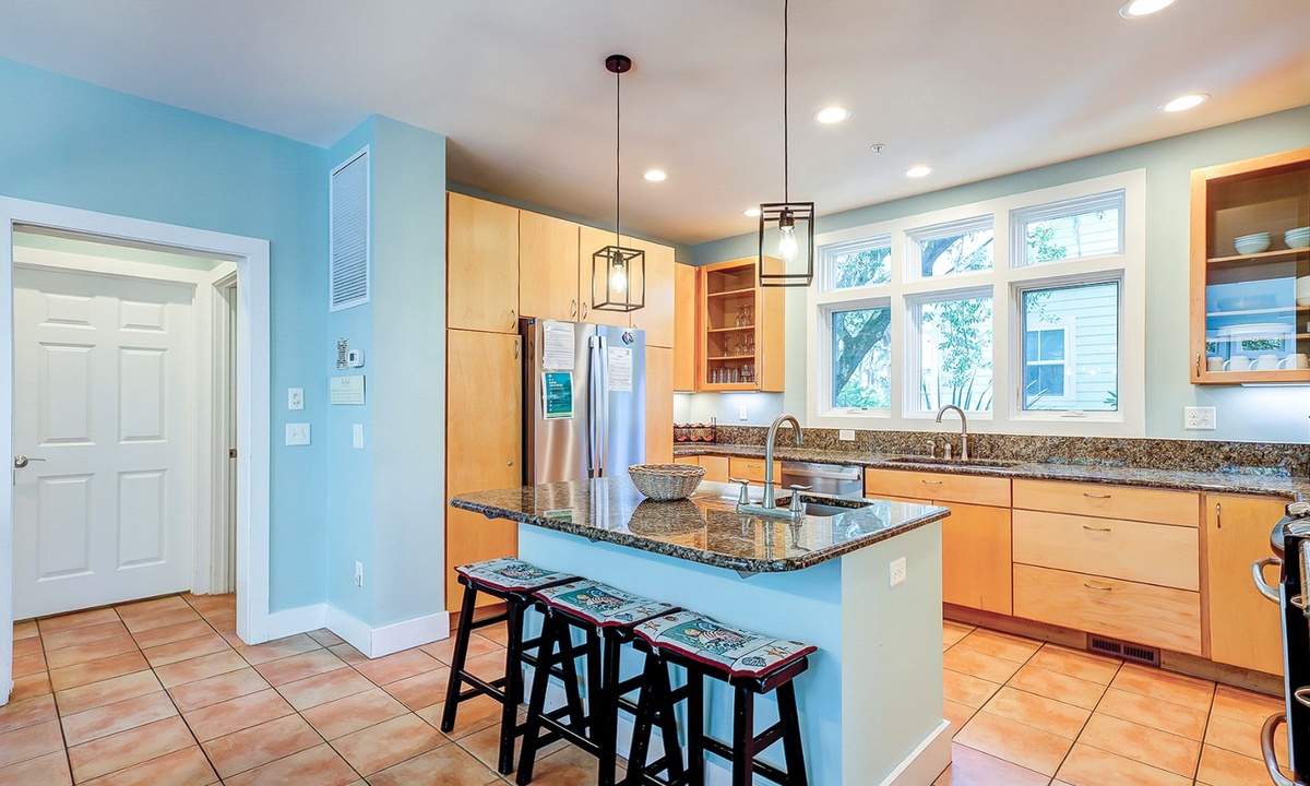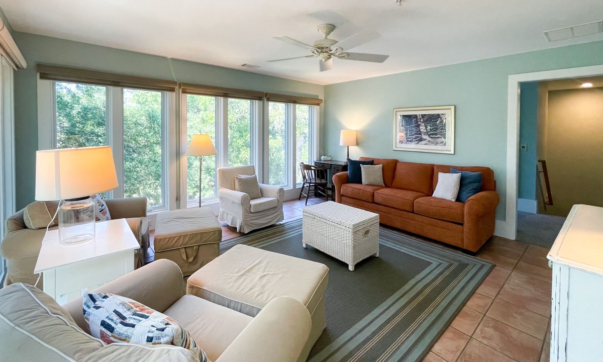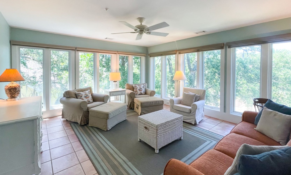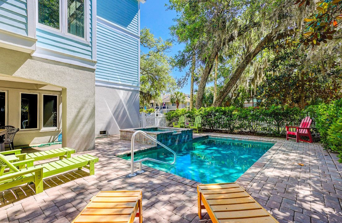 3 Osprey is comfortably situated in North Forest Beach, 4th row from the ocean and walking distance to Coligny Plaza, The 4 bedroom, 4 bathroom Forest Beach home rental on Hilton Head Island has two living areas, a private pool + hot tub and is designed to be friendly for guests of all ages, allowing guests greater ease navigating through the home.