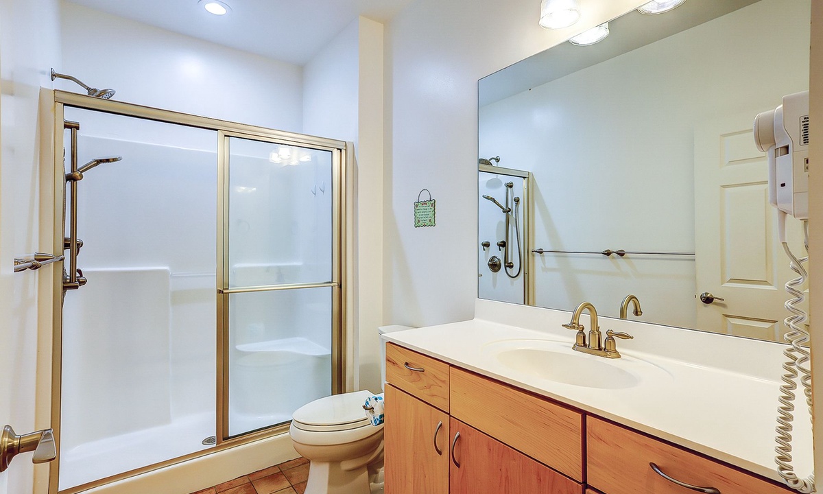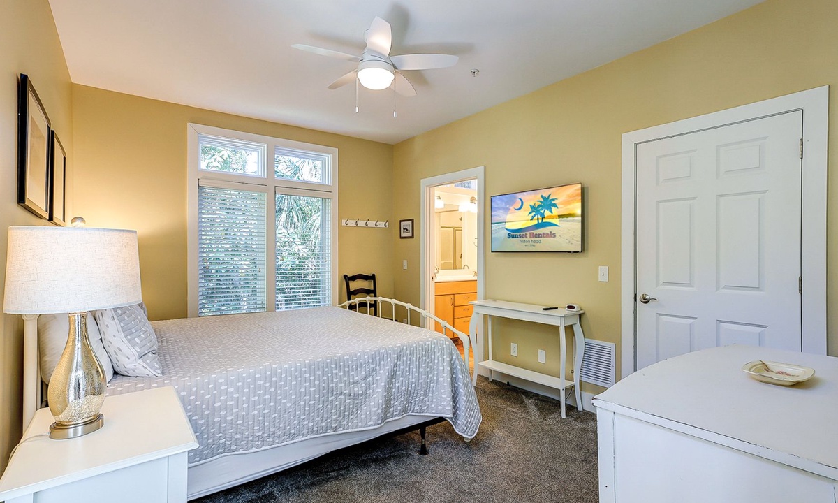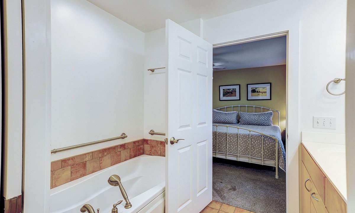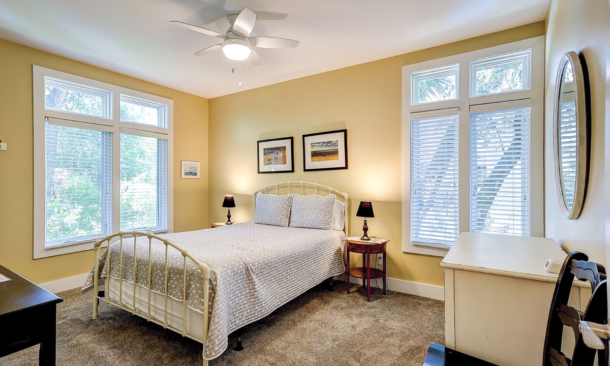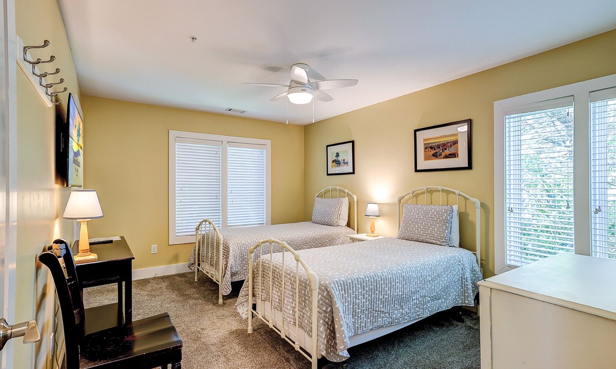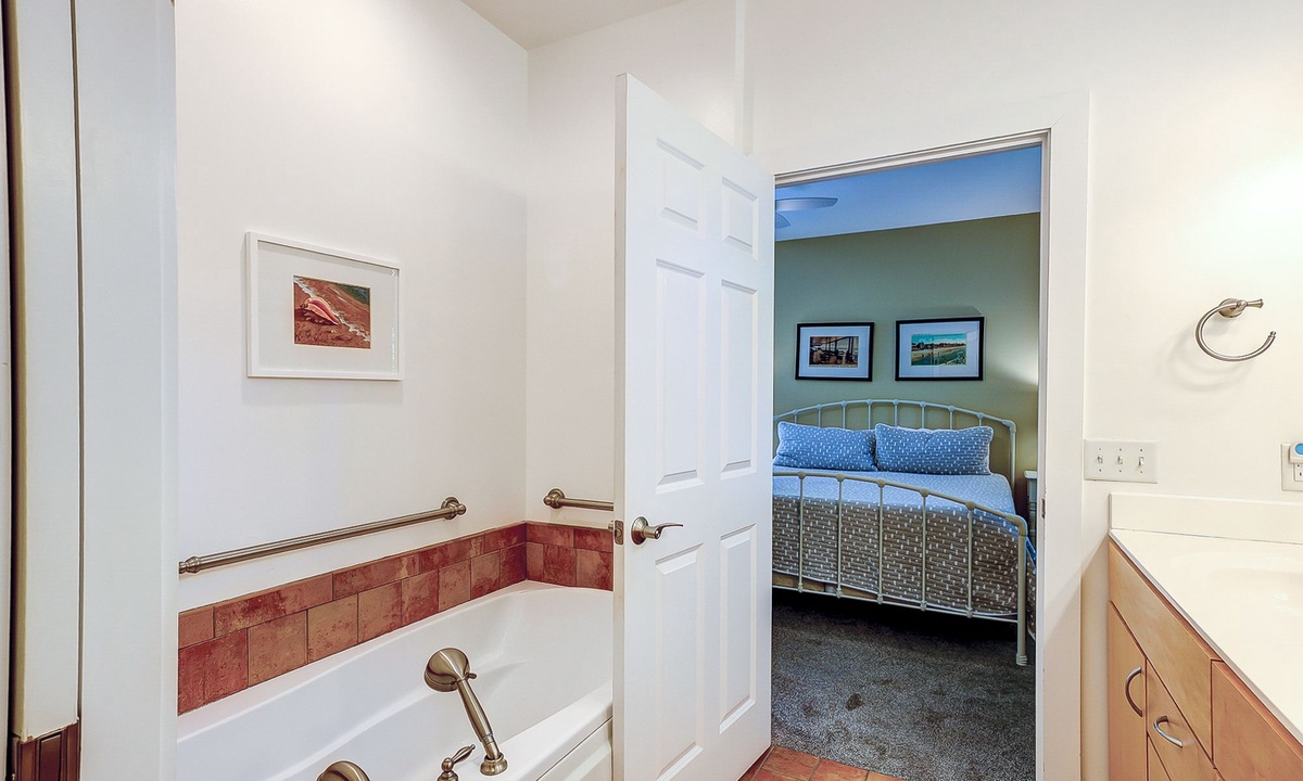 Osprey 3 comfortably sleeps 12 guests in four inviting bedrooms. Two bedrooms are located on the first floor and two bedrooms are located on the second floor. The main floor primary bedroom has a king bed and a private ensuite bathroom featuring double sinks, a garden tub and walk-in shower. The second bedroom has a queen bed and access to the hall bathroom with a walk-in shower.