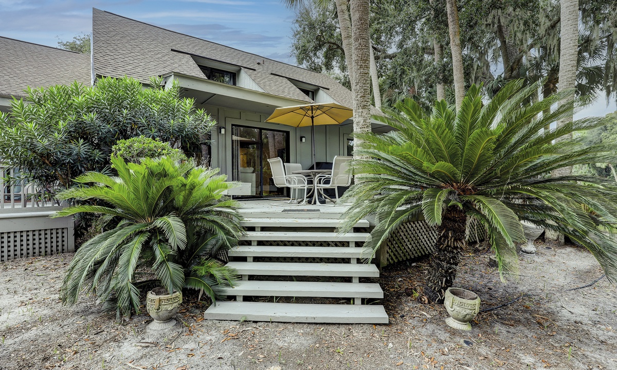The Queens Grant, Palmetto Dunes complex is near the entrance of the resort and the oceanfront Robert Trent Jones golf course, only a 10-minute walk from the beach. The complex features a community pool open April through September with beautifully landscaped gardens and bike paths and easy access to the amenities of Shelter Cove. All beach distances are measured from the center of the complex.
