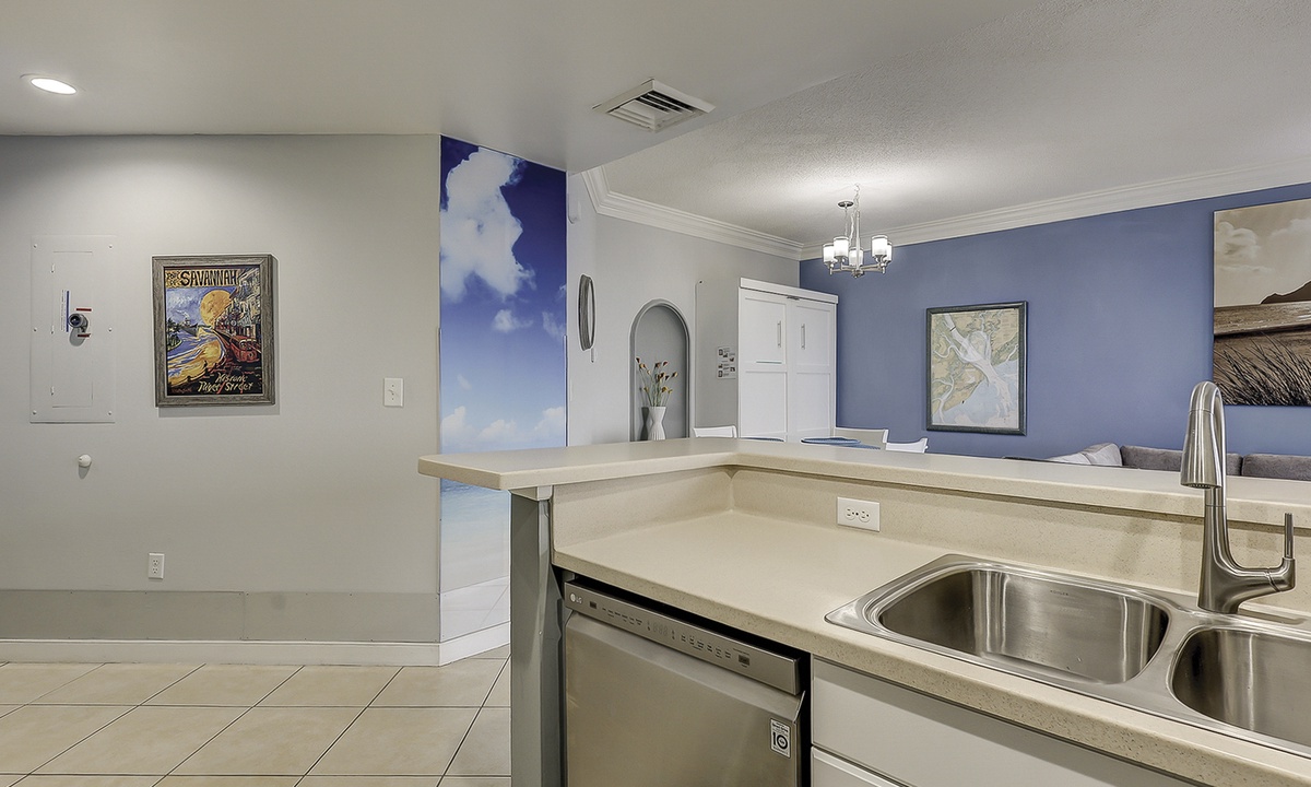 The kitchen is outfitted with stainless appliances, a Keurig coffee maker, regular coffee maker and all you'll need to cook meals during your stay.
